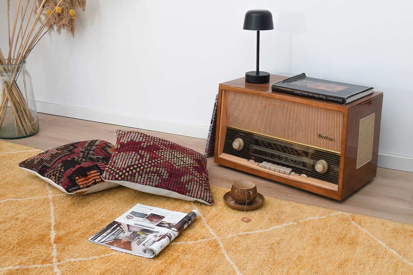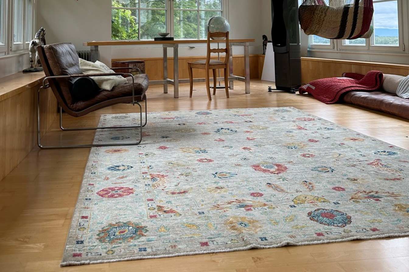 Unter einem großen Sofa oder einer Wohnlandschaft schafft ein Teppich dieser Größe Struktur. Dadurch wirkt der Raum harmonisch und einladend. Zudem sorgt ein handgeknüpfter Teppich für eine luxuriöse Optik, die maschinell hergestellte Modelle nicht erreichen können.