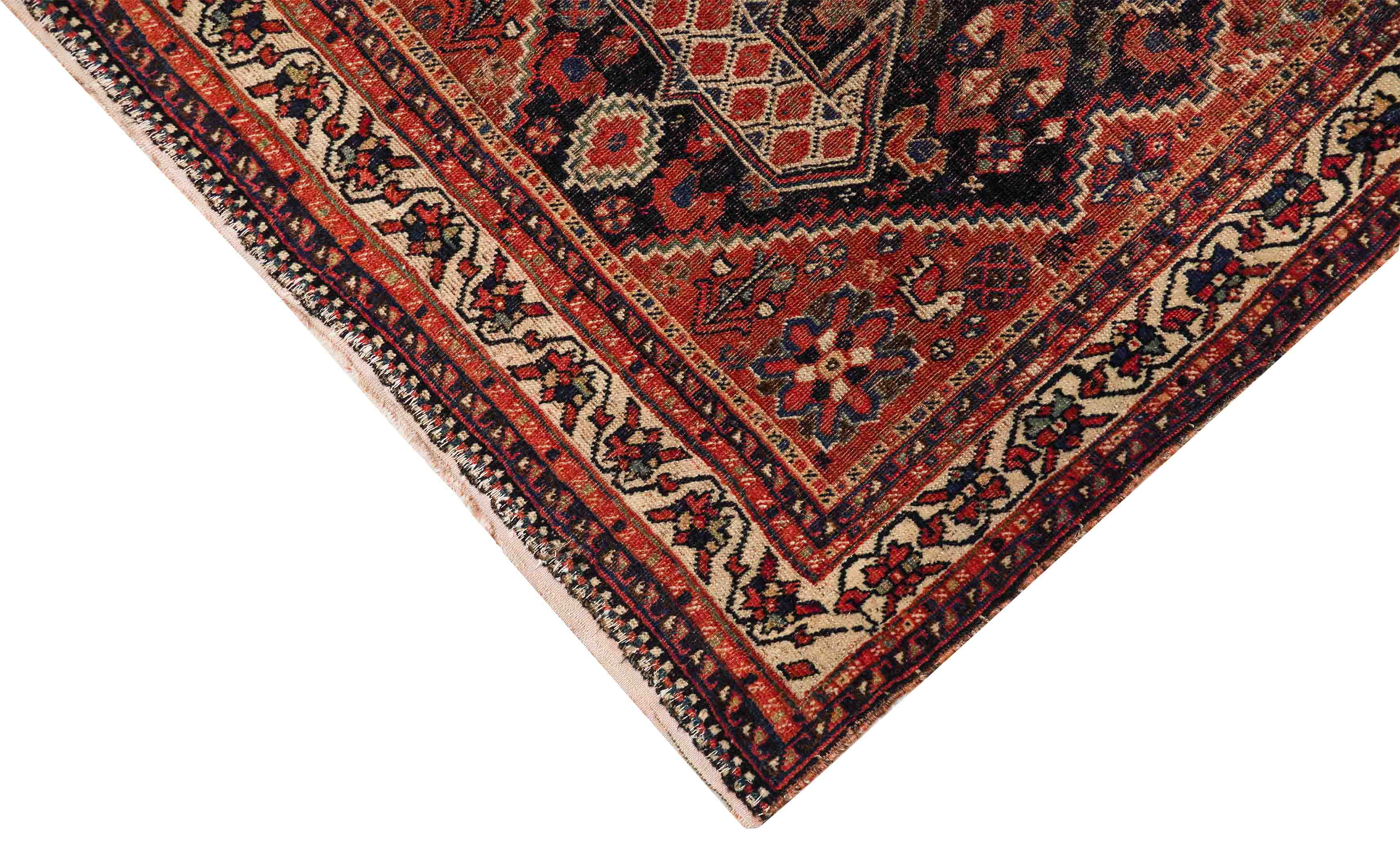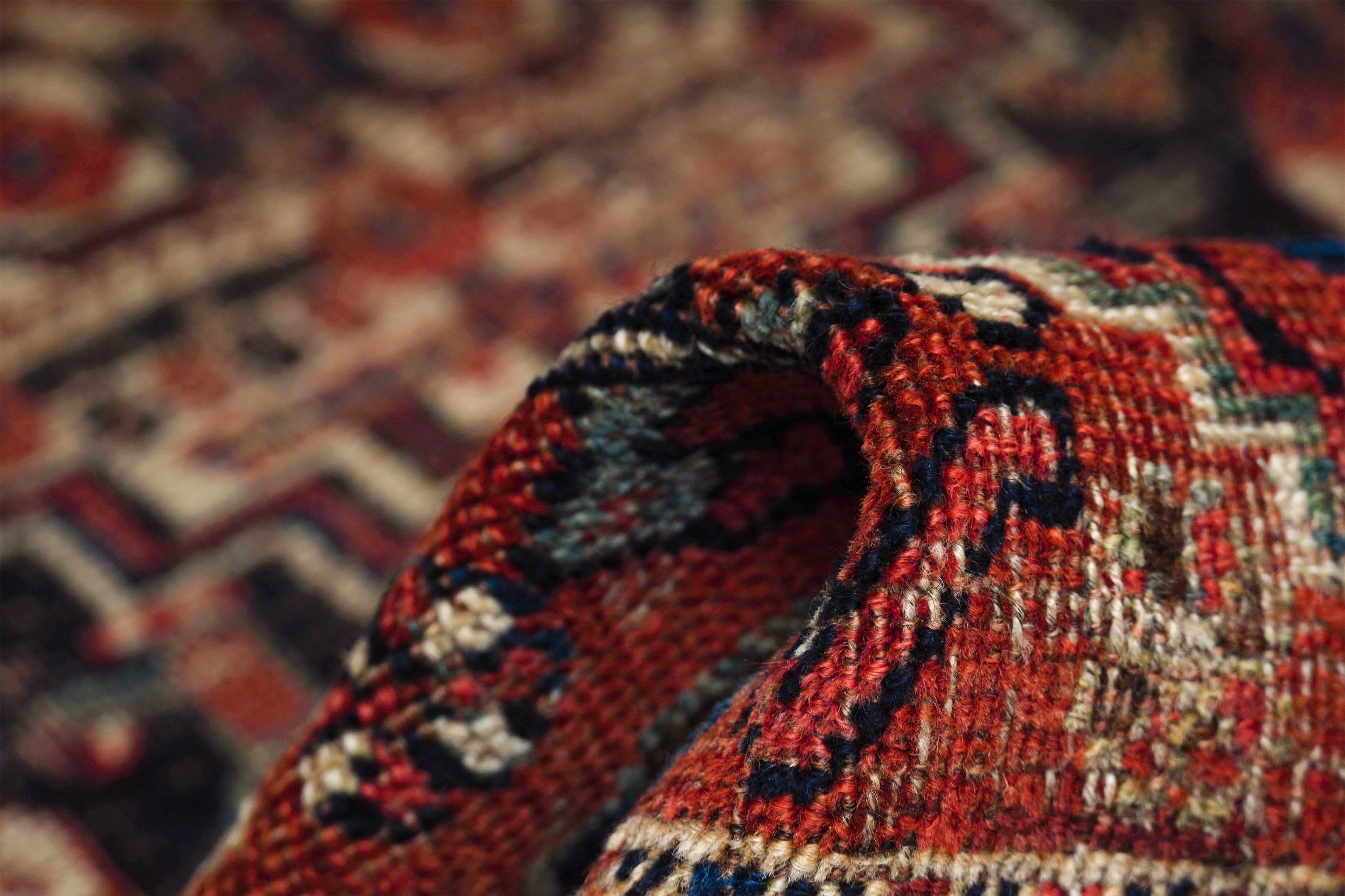 Ihr seid nicht die ersten, die Gefallen an diesem Afshari finden. Er hatte bereits Besitzer vor Euch, die ihn geschätzt und benutzt haben. Er wurde ca. 1930 handgeknüpft. Er wurde gründlich gereinigt und ist in einem guten aber nur teilweise restaurierten Zustand. Die Fransen können eine Reparatur vertragen. Wir haben diesen Afshari nicht vollständig restauriert, weil wir finden, dass er so wie er ist einen besonderen Charme hat. Wenn ihr das wollt, restaurieren wir den Teppich natürlich gerne weiter für Euch. Wir können so gut wie jeden Teppich wieder in einen nahezu perfekten Zustand bringen.