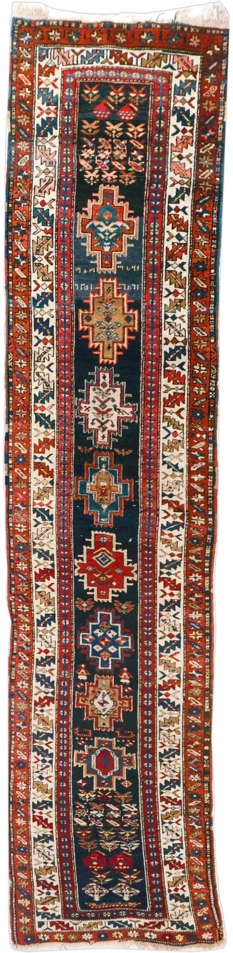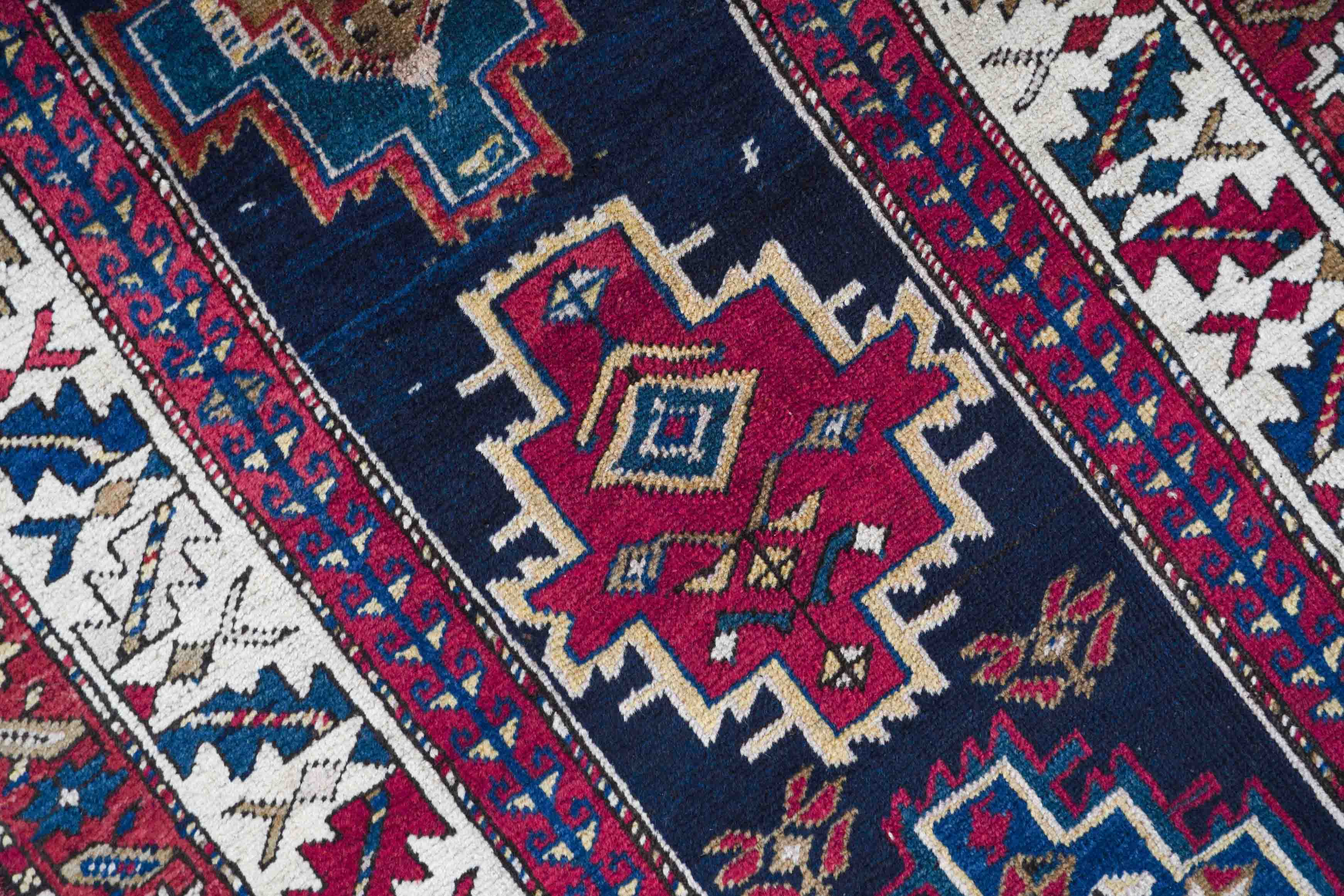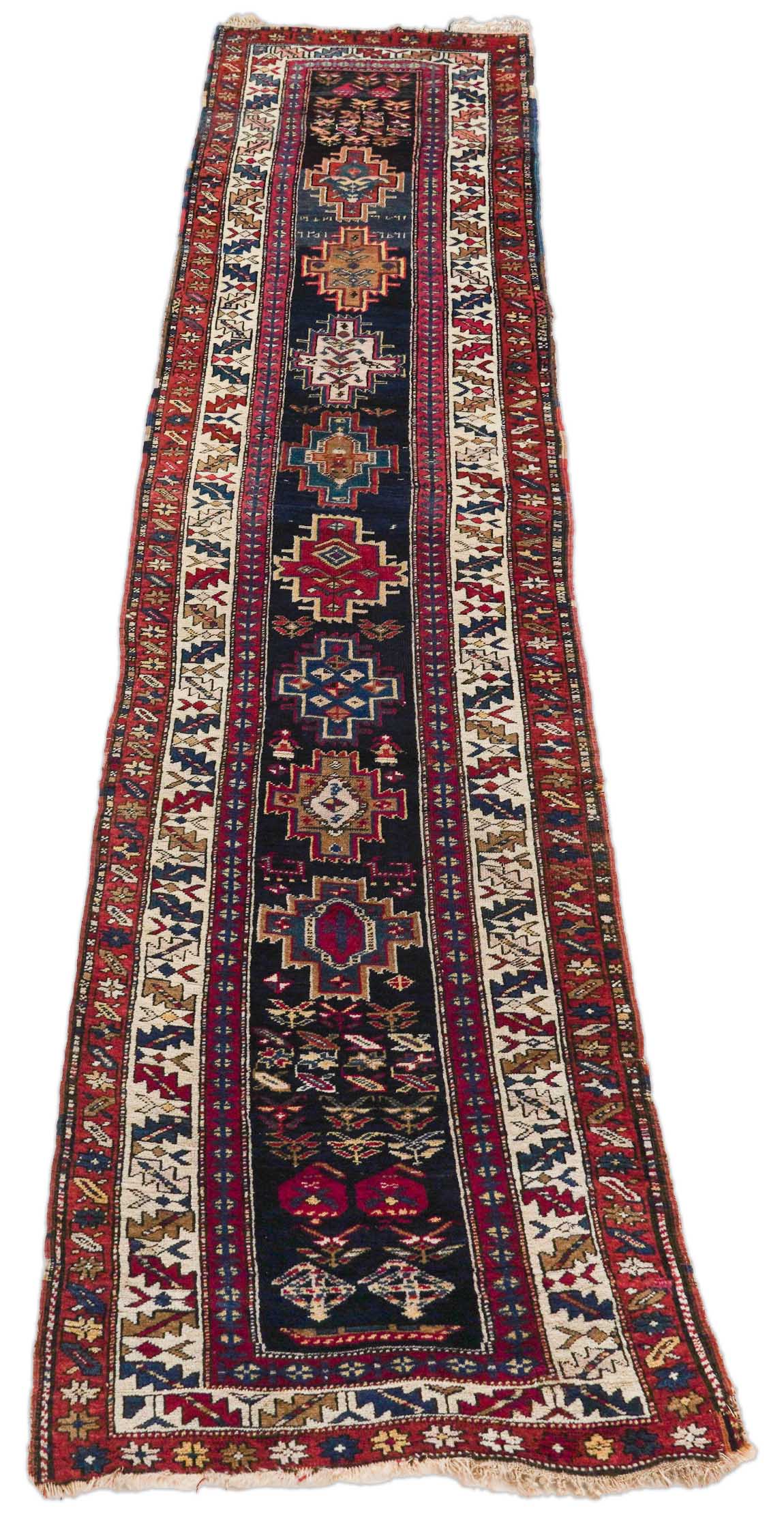 Alter Meschkin Läufer, dunkelblau mit Bordüre und Rauten