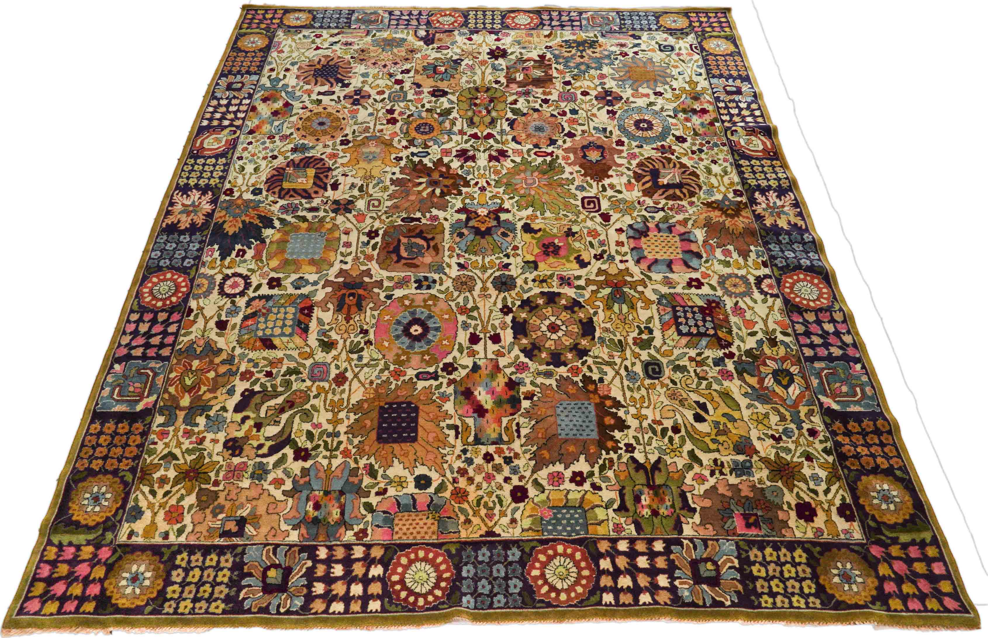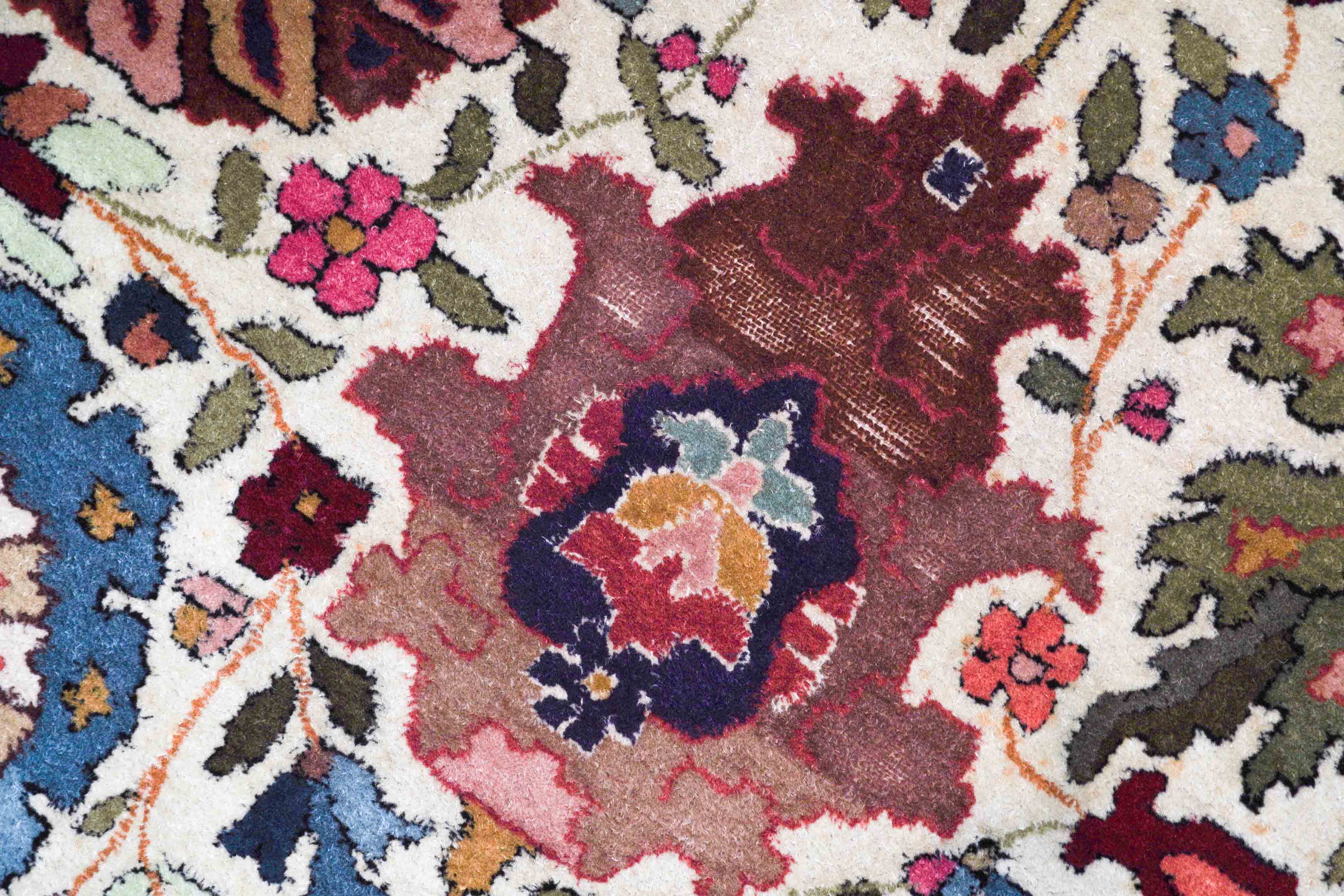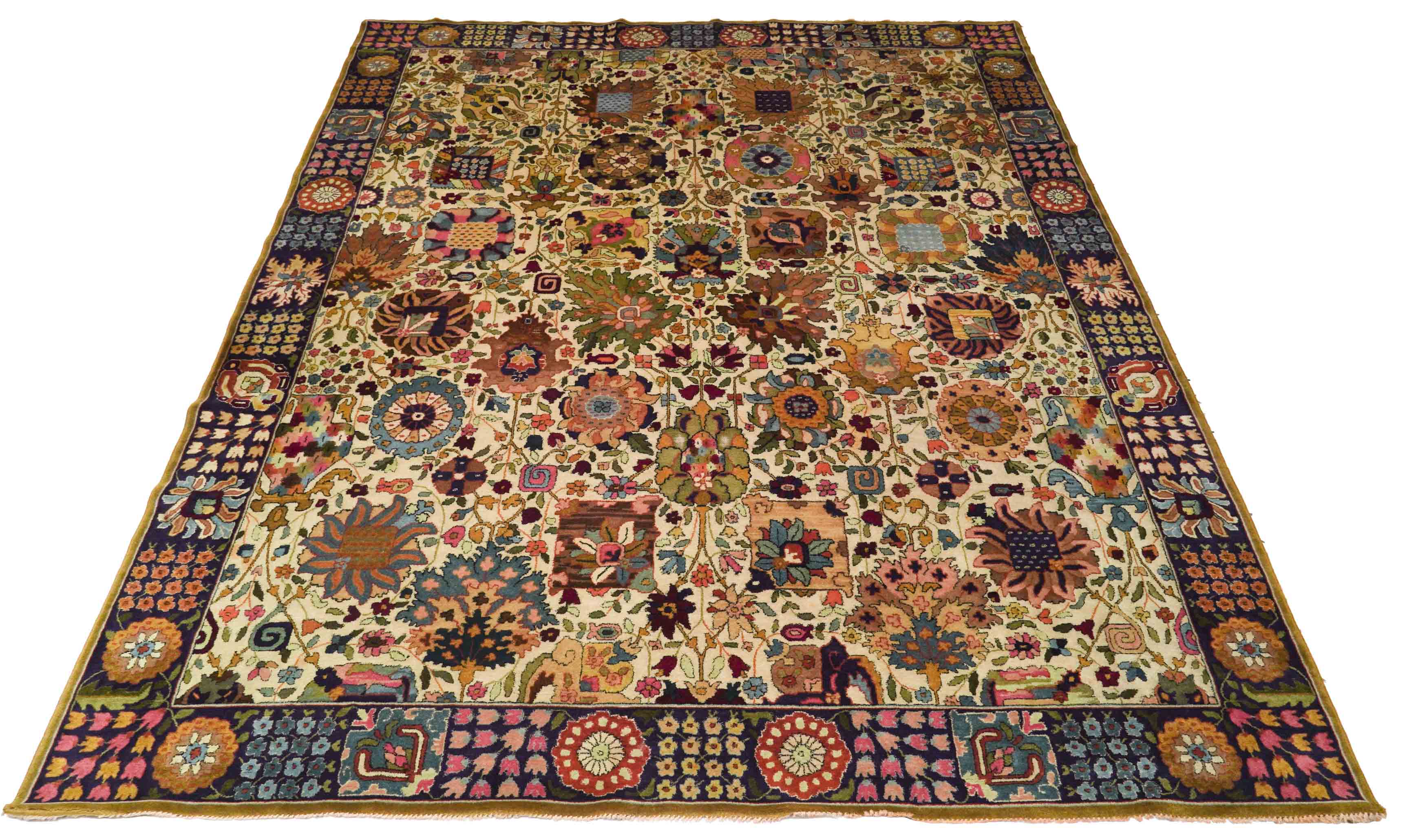 Die üppigen Blumenmotive dieses Tetex Teppichs sind elegant und abwechslungsreich gestaltet. Die anmutigen vegetativen Symbole, die Blüten, Blätter und Äste darstellen, sind kunstvoll ineinander verschlungen.