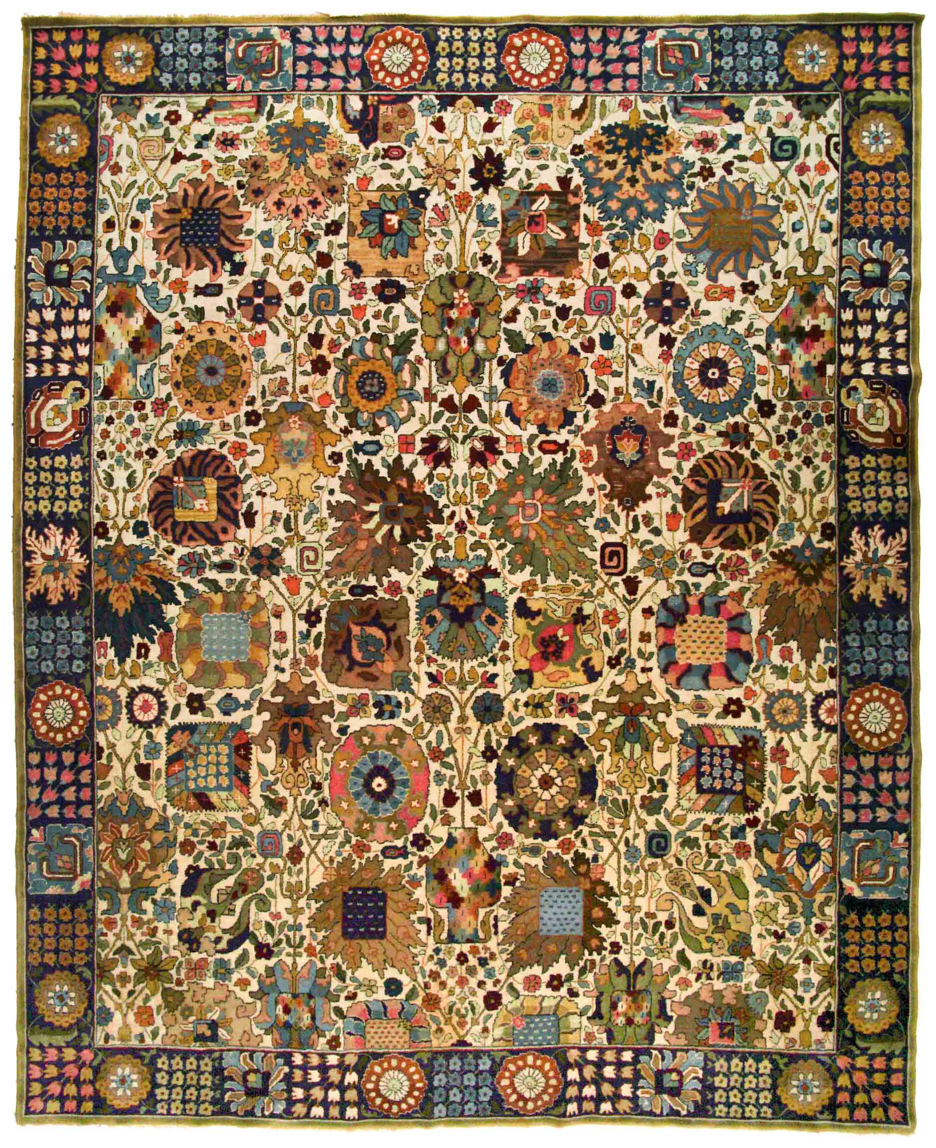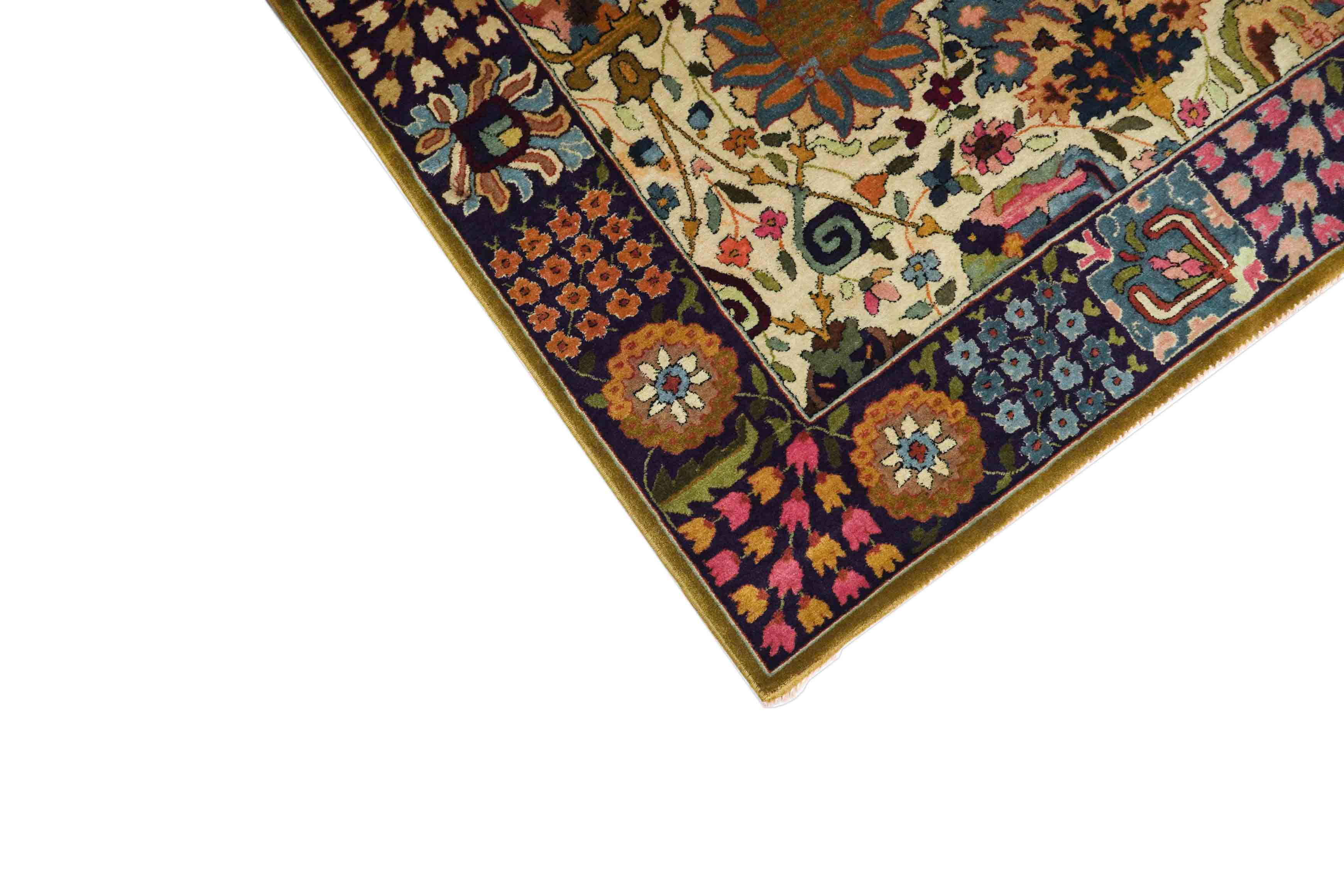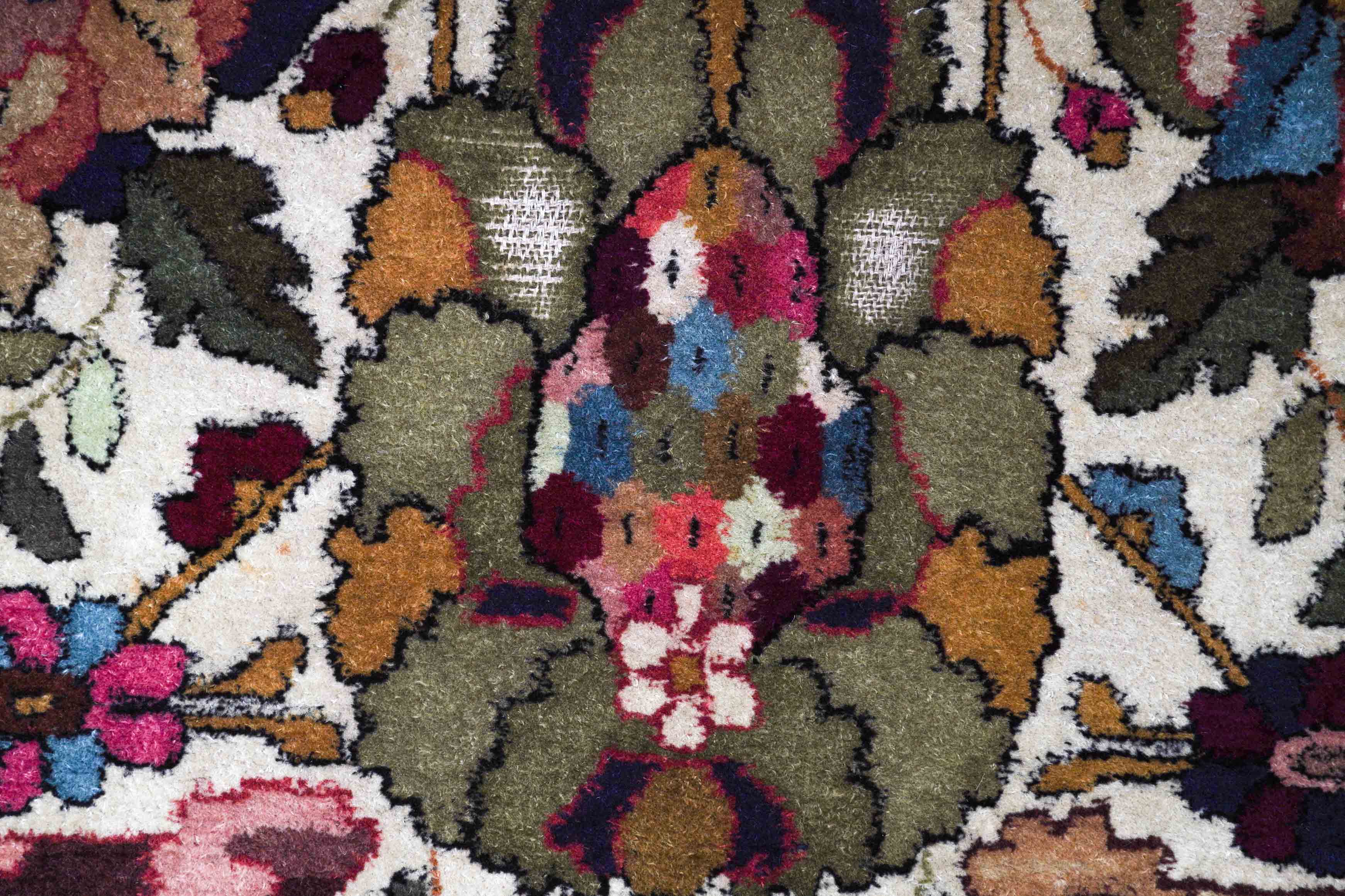 Die üppigen Blumenmotive dieses Tetex Teppichs sind elegant und abwechslungsreich gestaltet. Die anmutigen vegetativen Symbole, die Blüten, Blätter und Äste darstellen, sind kunstvoll ineinander verschlungen.