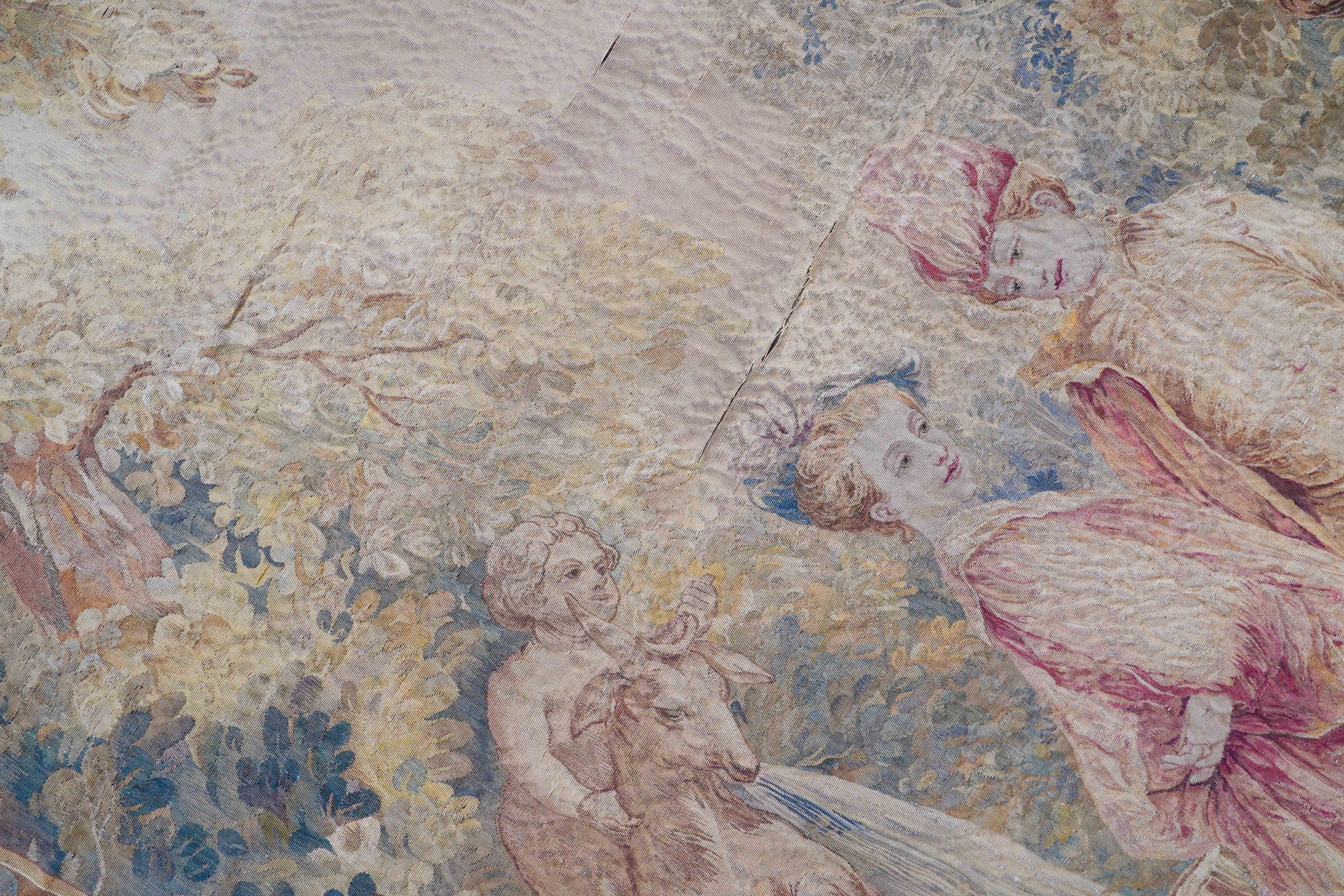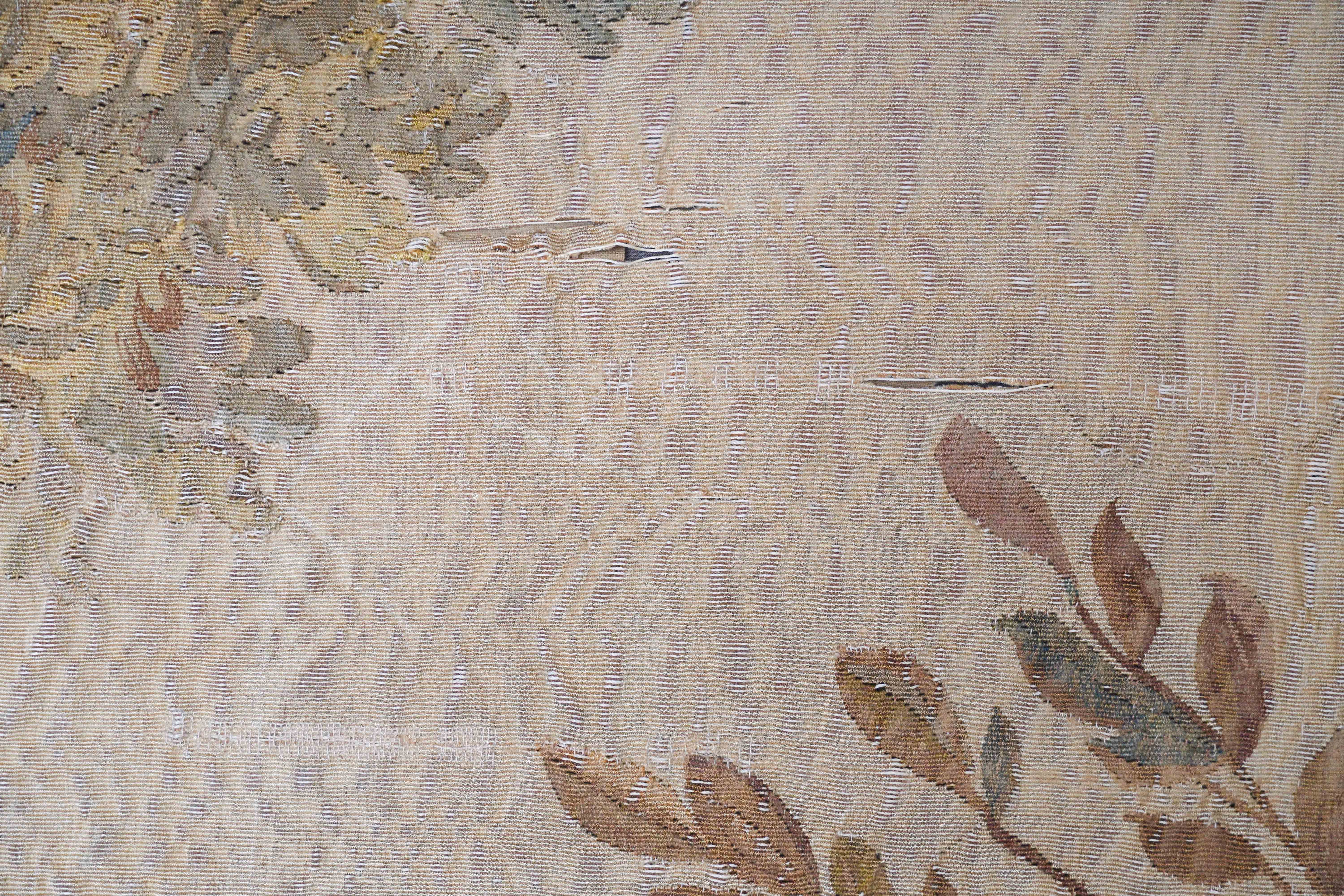 Dieser Aubusson hatte bereits Liebhaber vor Euch. Er wurde ca. 1820 handgewebt und hat seitdem treue Dienste geleistet. Der Teppiche hat an einigen Stellen Risse. Insgesamt ist er dennoch in einem guten Zustand und kann noch für Jahrzehnte Freude bereiten. Wir haben diesen Aubusson nicht restauriert, weil wir finden, dass er so wie er ist eine besondere Wirkung hat. Wenn ihr das wollt, restaurieren wir den Teppich natürlich gerne für Euch.