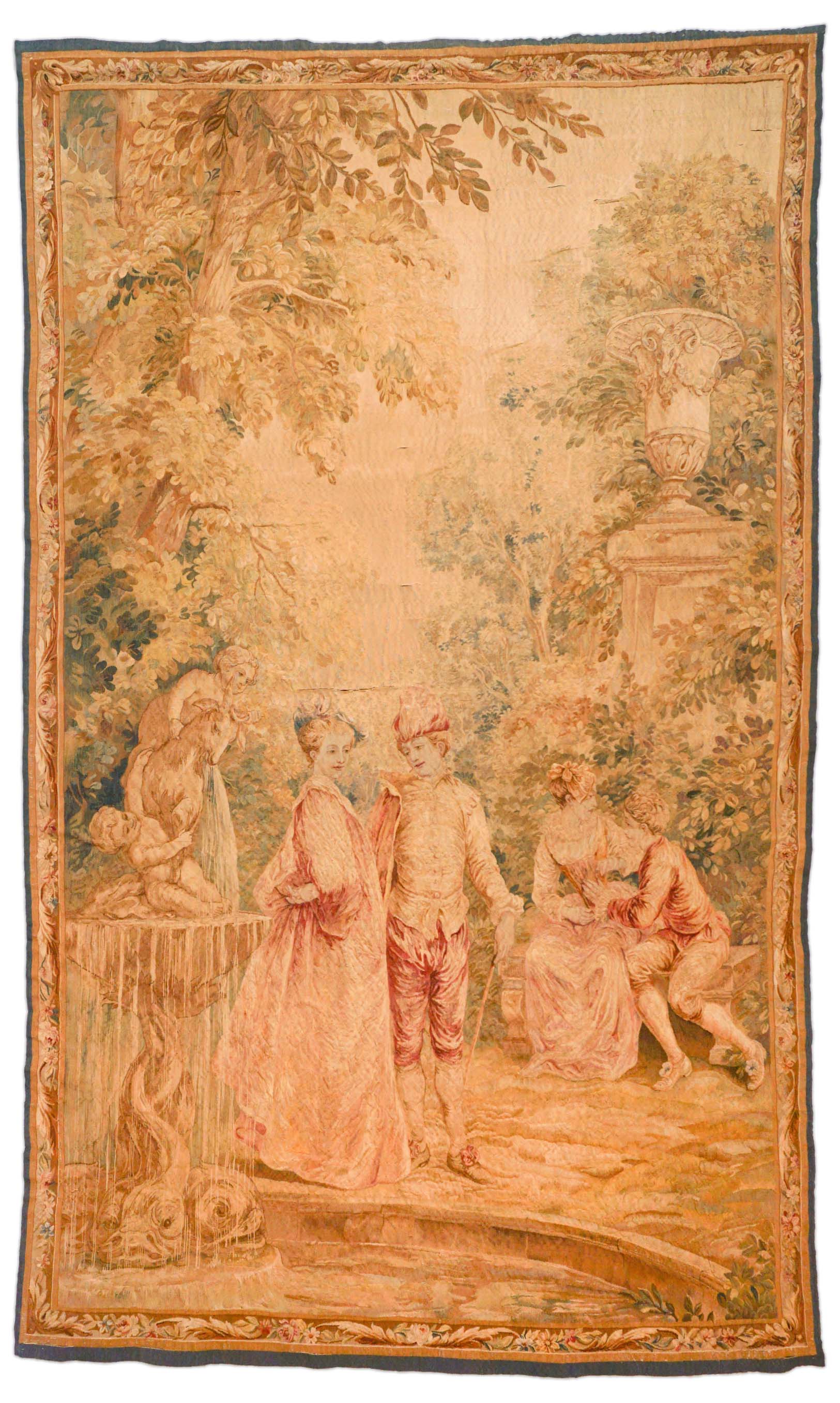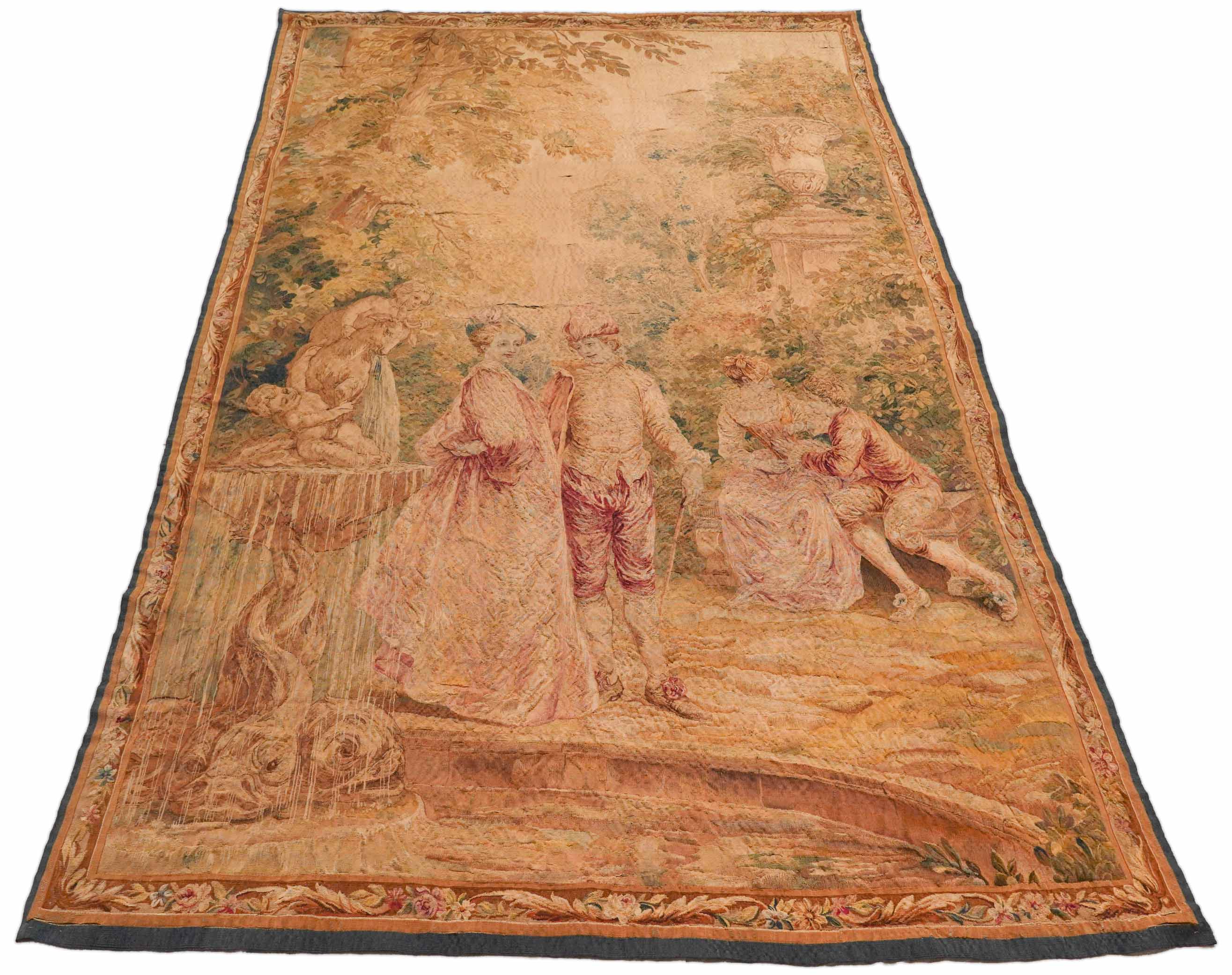 Abzugrenzen sind die Aubusson Teppiche von den Tapisserie und Gobelin Teppichen. Das ist verwirrend und wird häufig falsch gemacht; denn Tapisserie ist das französische Wort für Teppich. Streng genommen verstehen wir in Deutschland unter Tapisserie Teppichen jedoch nur handgewebte bzw. handgewirkte Gewebe, die ein Motiv haben (sogenannte Bildteppiche). Dieser antike Aubusson ist ein Sammlerstück. Er ist rund 200 Jahre alt und schon deswegen ein wirklich besonderes Stück. Antike Teppiche, wie dieser Aubusson, erfreuen sich nach wie vor großer Beliebtheit und werden zu Höchstpreisen von renommierten Auktionshäusern versteigert.