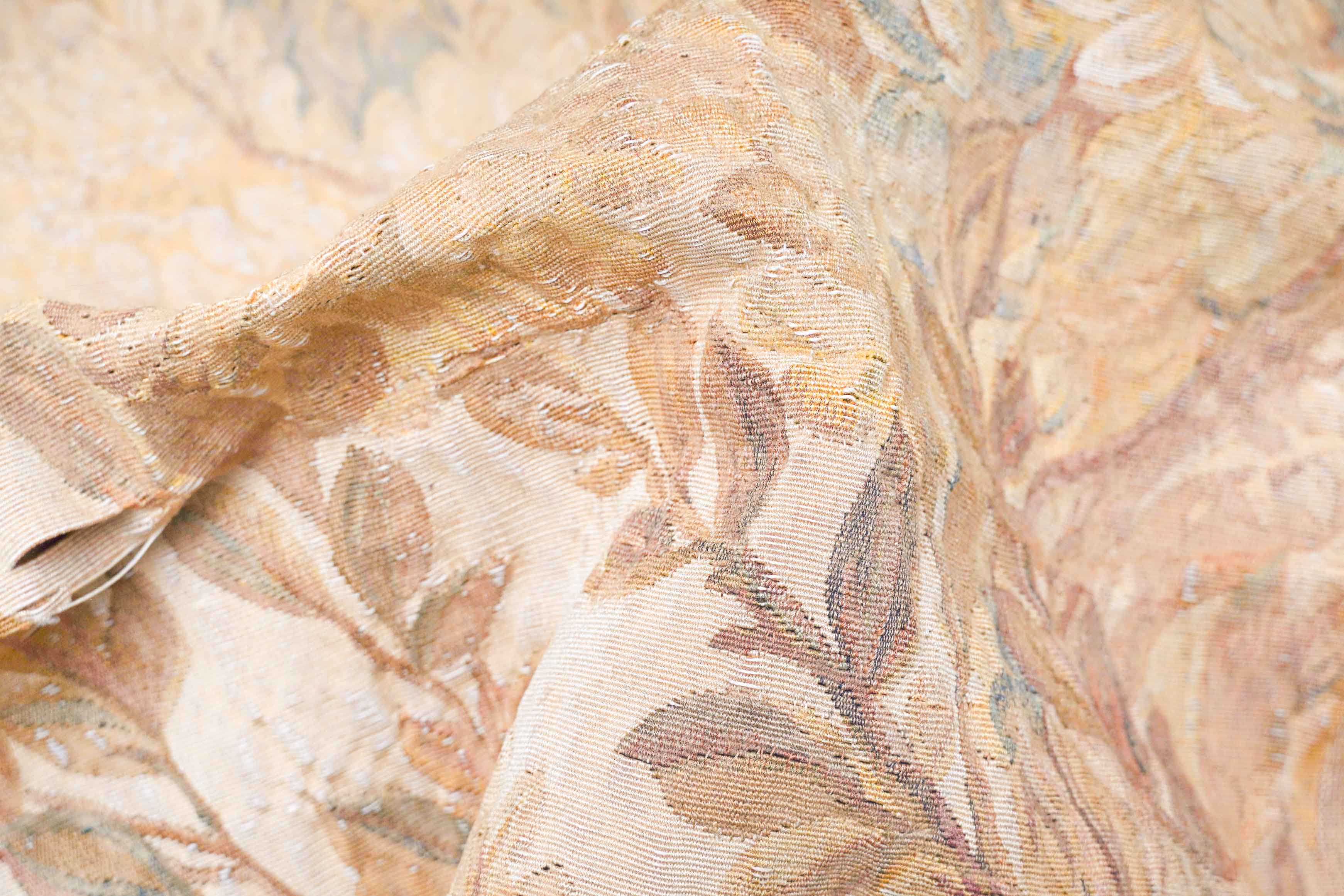 Die Schuss-Fäden dieses Aubusson Teppichs bestehen aus Schurwolle und bilden zugleich den Flor. Die Kett-Fäden bestehen aus Baumwolle.