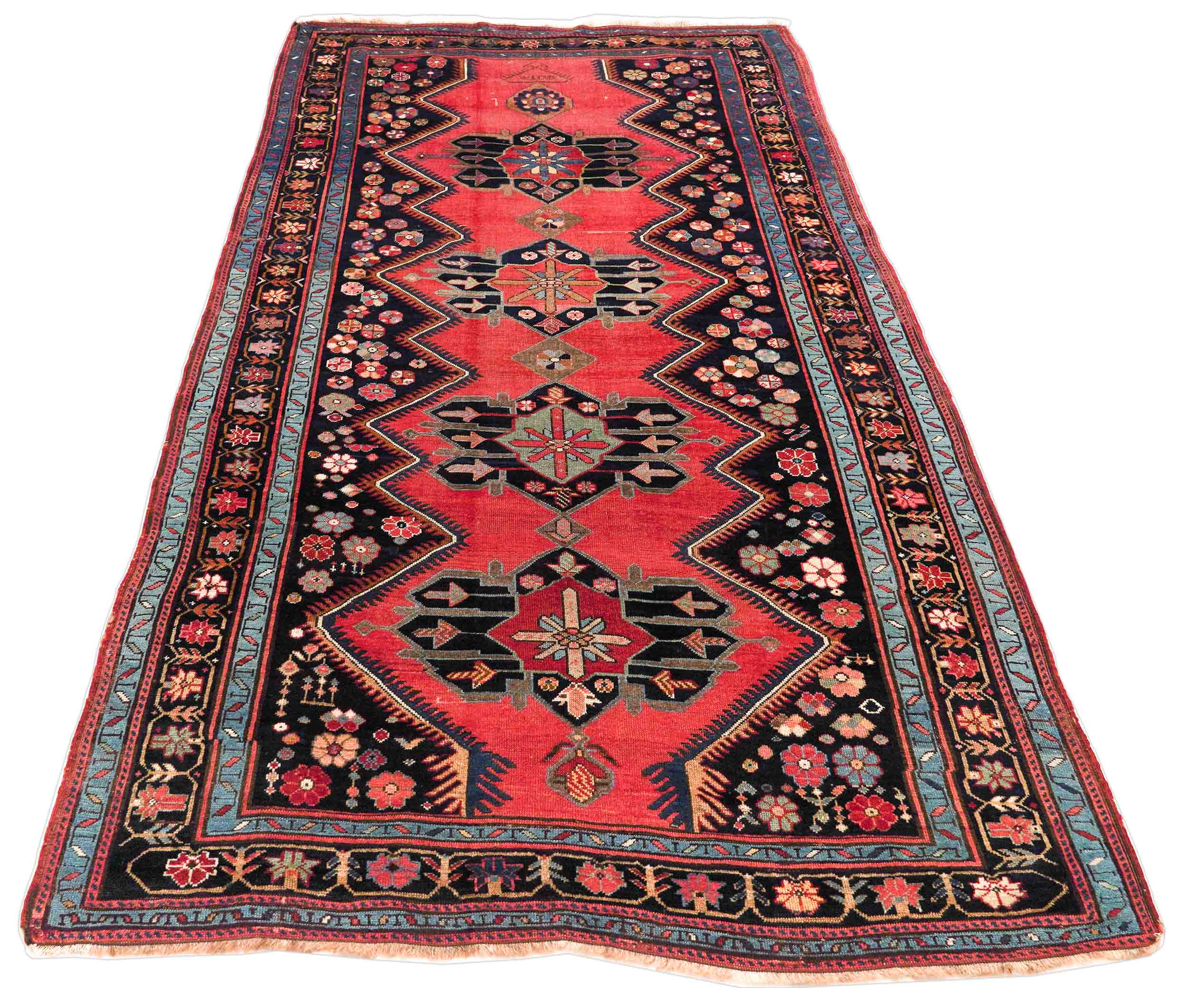 Dieser Teppich wurde in der Region Karabagh (oder eben Gharabagh) in Aserbaidschan handgeknüpft. Typisch für Gharabagh Teppiche ist das – im Kaukasus weit verbreitete – Blumenmotiv auf dunklem Grund. Es werden aber auch andere geometrische Muster geknüpft. Dieser antike Gharabagh ist ein Sammlerstück. Er ist rund 125 Jahre alt und schon deswegen ein wirklich besonderes Stück. Antike Teppiche, wie dieser Gharabagh, erfreuen sich nach wie vor großer Beliebtheit und werden zu Höchstpreisen von renommierten Auktionshäusern versteigert.