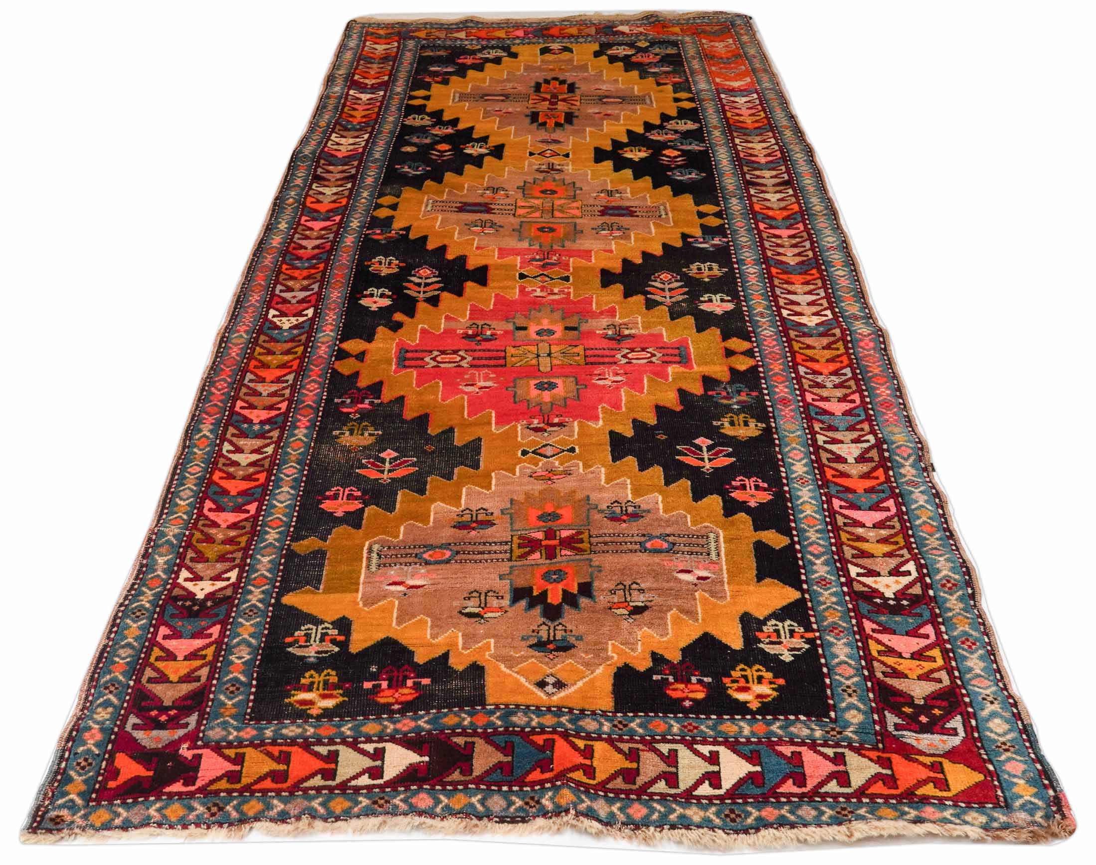 Meschkin Shahr ist eine der ältesten Städte des Irans. Sie liegt etwa 900 km von der Hauptstadt Teheran entfernt, im Nordwesten des Landes in der Provinz Azerbaidjan. Die Muster der Meschkin Teppiche orientieren sich an traditionellen kaukasischen Mustern. Dieser antike Meschkin ist ein Sammlerstück. Er ist rund 100 Jahre alt und schon deswegen ein wirklich besonderes Stück. Antike Teppiche, wie dieser Meschkin, erfreuen sich nach wie vor großer Beliebtheit und werden zu Höchstpreisen von renommierten Auktionshäusern versteigert.