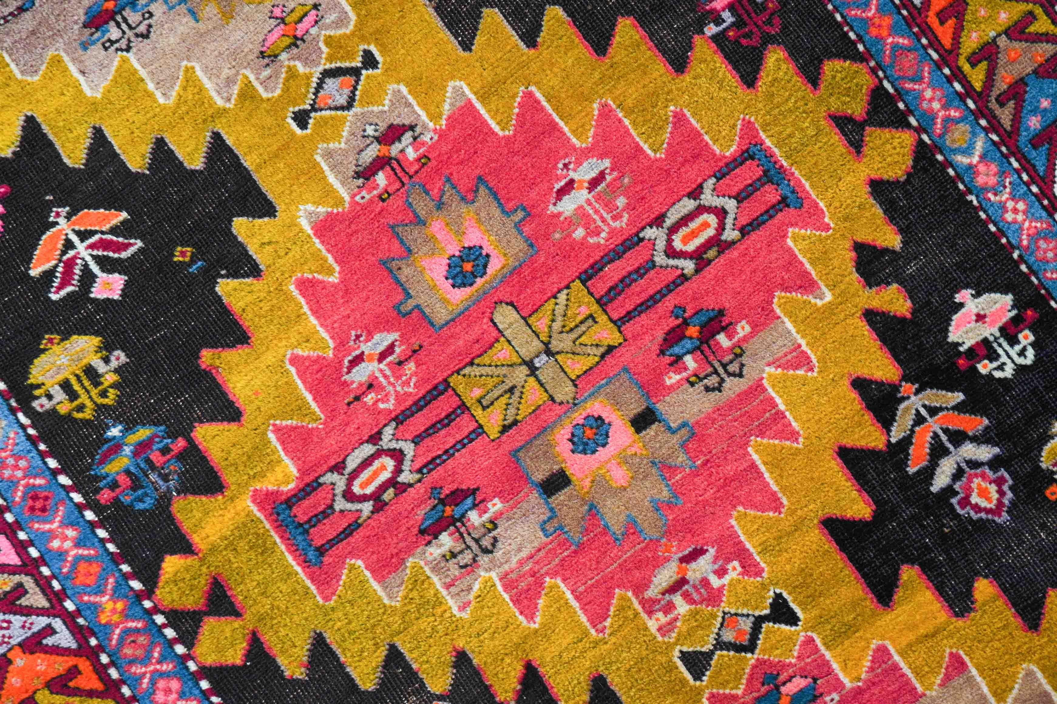 Die verzierte Umrandung (Bordüre) bildet einen schönen Kontrast zum Zentrum und gestaltet den Übergang am Rand des Teppichs.