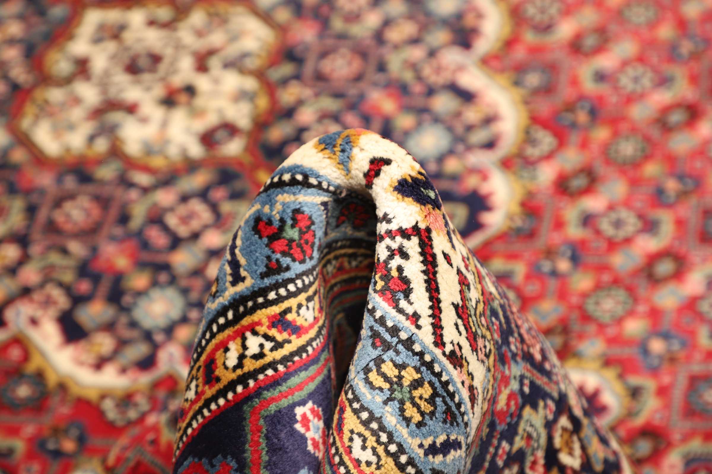 Der Flor dieses Ardebils wurde aus hochwertiger Schurwolle handgeknüpft. Schurwolle wird durch das schonende Scheren von Schafen gewonnen. Schurwolle ist ein nachwachsender, natürlicher Rohstoff mit einer Reihe beeindruckender Eigenschaften: Durch den natürlichen Fettgehalt der Wolle stößt die Oberfläche Wassertropfen ab und ist so auf natürliche Weise gegen Schmutz imprägniert. Wolle bietet außerdem eine hervorragende Wärmeisolation, wirkt regulierend auf das Wohnklima und dämpft den Schall.