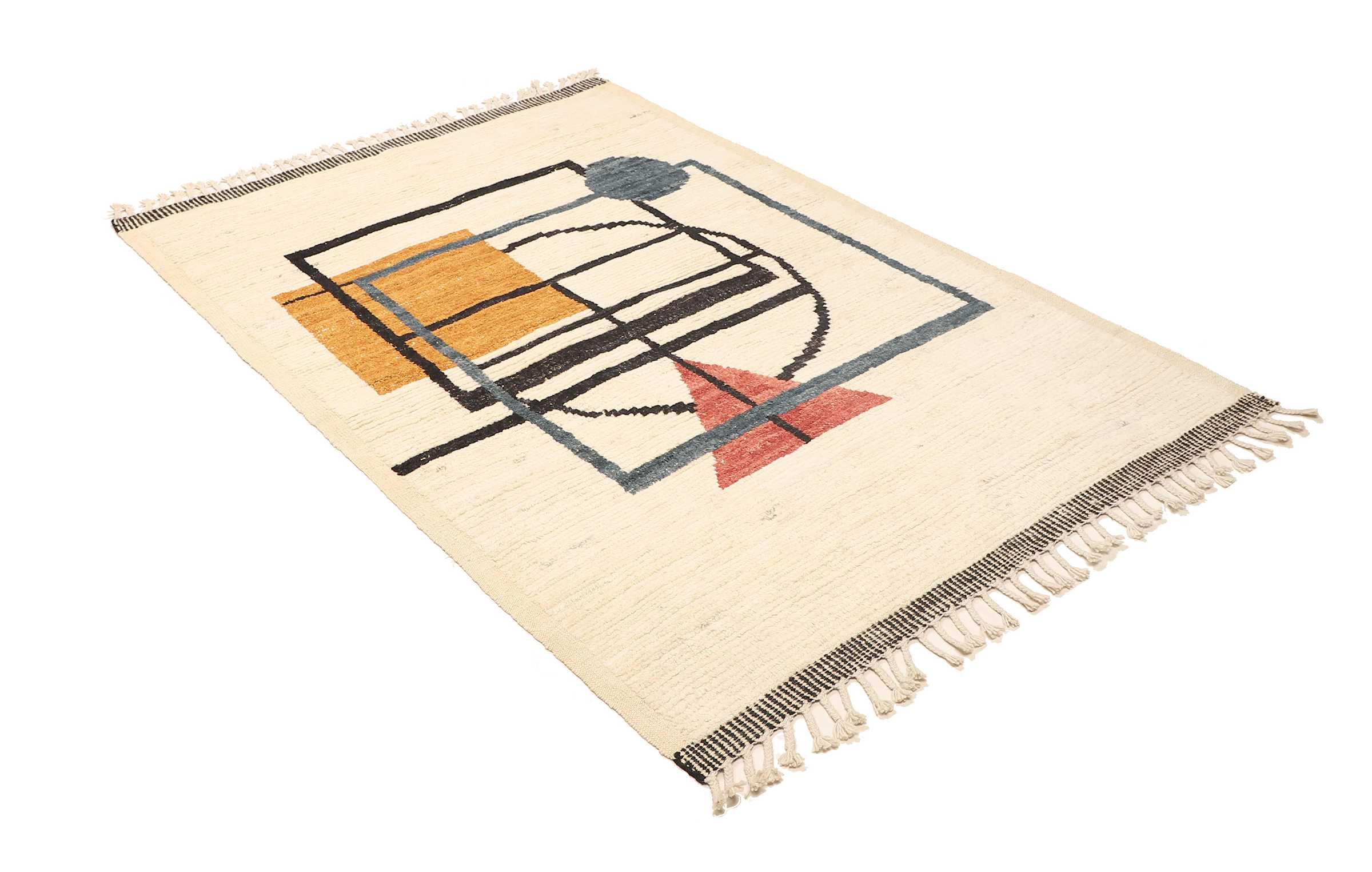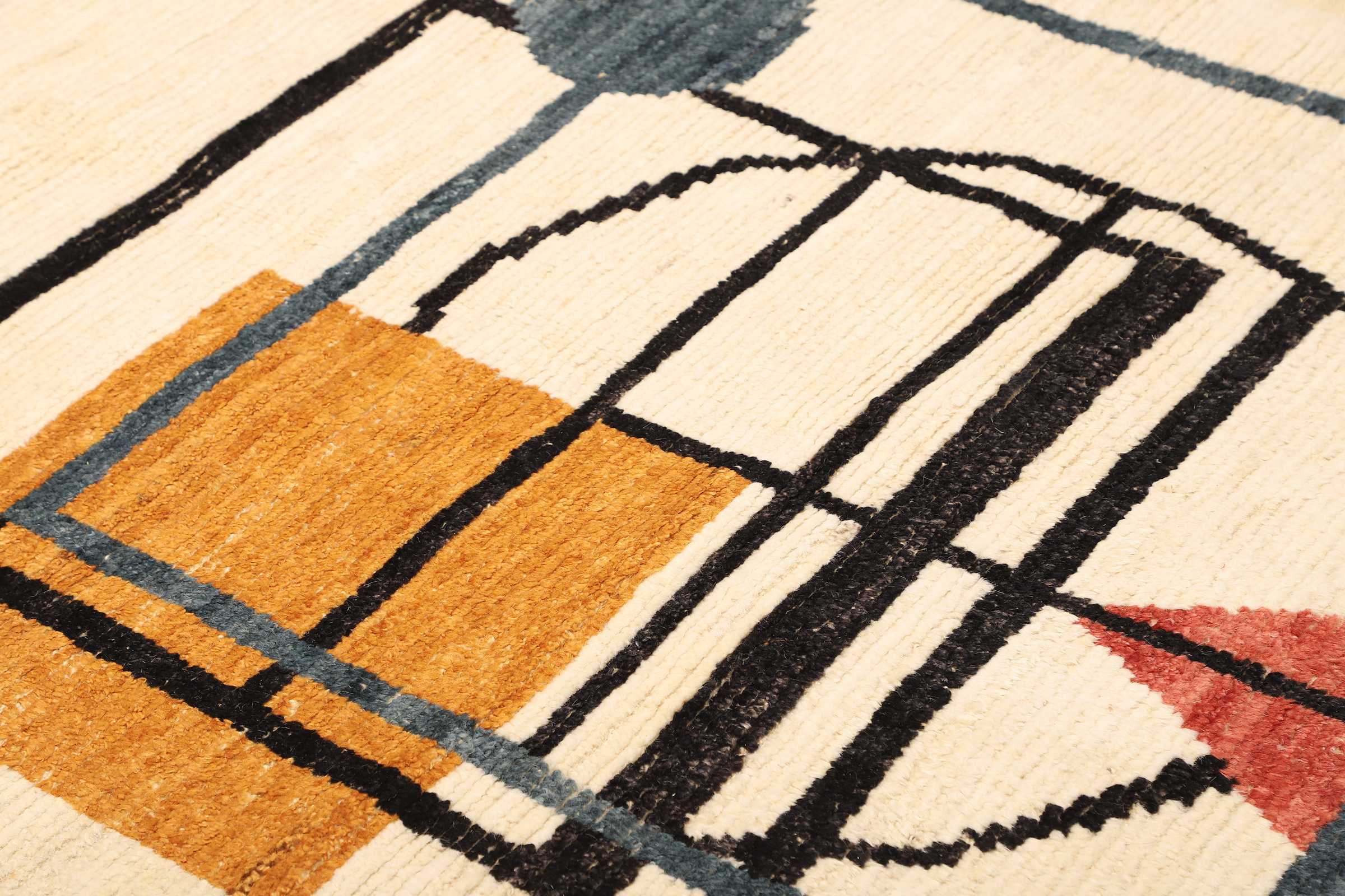 Das klare, abstrakte Design dieses zeitgenössischen Teppichs spricht Menschen, die schlichte, moderne Inneneinrichtung und Architektur lieben besonders an. Die Designidee für diesen Teppich stammt aus Europa. Ohne an die Regeln traditioneller Teppichmuster gebunden zu sein wurde es für den westlichen Kunst- und Inneneinrichtungsstil entwickelt. Das ist dabei keine ganz neue Entwicklung. Die Wurzeln des europäischen Teppichdesigns gehen zurück auf Art-Deco-Teppiche, die zwischen den späten zwanziger und fünfziger Jahren nach westlichen Vorgaben hergestellt wurden.