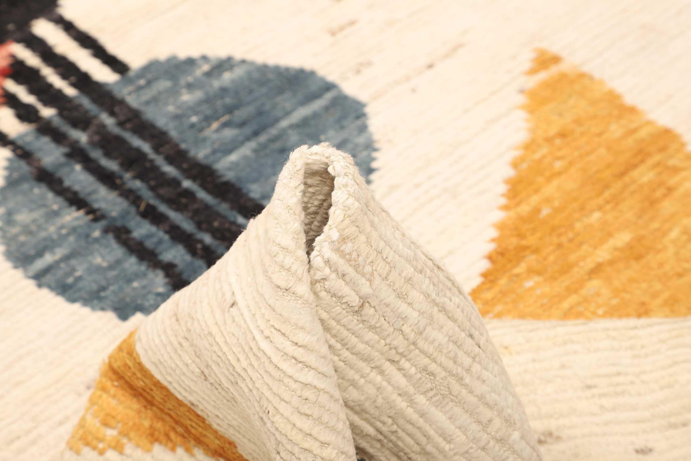 Dieser handgeknüpfte Berber Teppich hat einen dichten, relativ hohen Flor. Das macht ihn sehr gemütlich und strapazierfähig. Traditionell wurden Berber Teppiche – ebenso wie die Lori oder Gabbeh Teppiche – zum Schlafen benutzt. Sie laden zum sitzen und herumfläzen im Wohnzimmer ein, sind aber auch hervorragend für Durchgangsbereiche und im Essbereich geeignet. Die Kett- und Schussgarne dieses Berber Teppichs besteht aus Baumwolle, der Flor besteht die mit Naturfarben gefärbt und handgesponnen wird. Die handgesponnene Wolle verleiht den Loris ihre weiche Oberfläche. Die Schuss- und Kettfäden dieses Beni Berbers bestehen aus Baumwolle. Das vielseitige Material ist reißfest und dehnbar und daher besonders geeignet für ein strapazierfähiges Untergewebe.