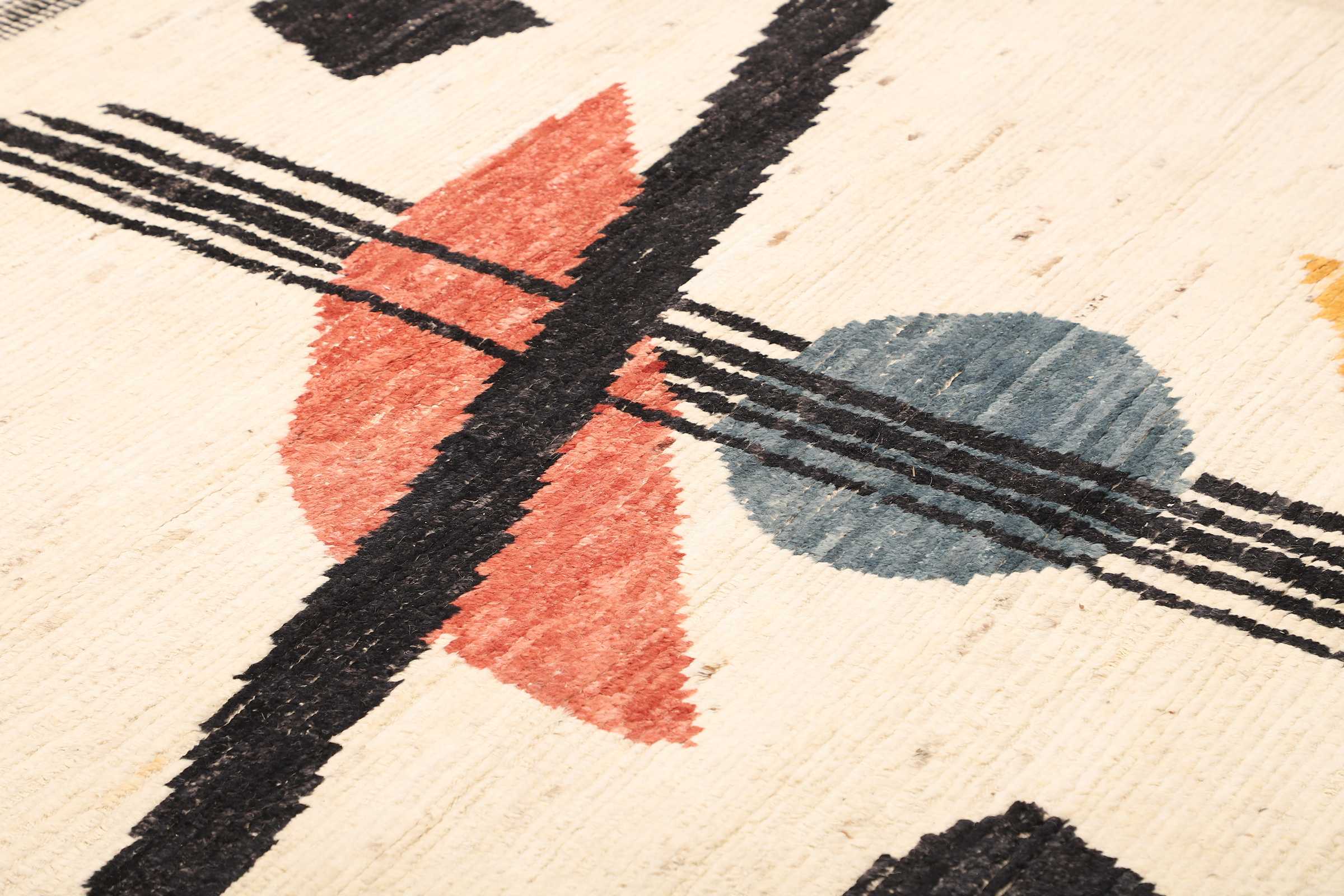 Das klare, abstrakte Design dieses zeitgenössischen Teppichs spricht Menschen, die schlichte, moderne Inneneinrichtung und Architektur lieben besonders an. Die Designidee für diesen Teppich stammt aus Europa. Ohne an die Regeln traditioneller Teppichmuster gebunden zu sein wurde es für den westlichen Kunst- und Inneneinrichtungsstil entwickelt. Das ist dabei keine ganz neue Entwicklung. Die Wurzeln des europäischen Teppichdesigns gehen zurück auf Art-Deco-Teppiche, die zwischen den späten zwanziger und fünfziger Jahren nach westlichen Vorgaben hergestellt wurden.