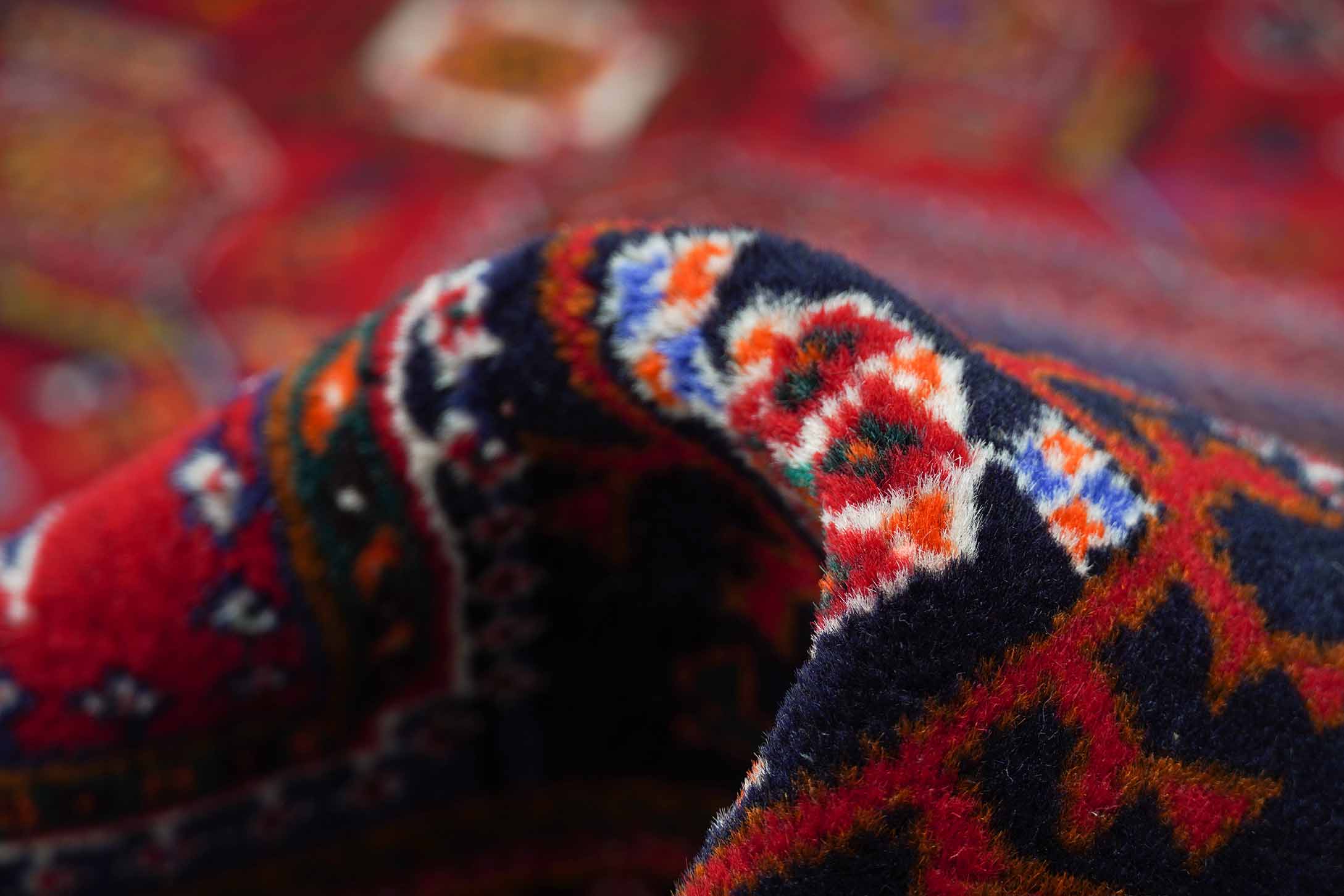 Die verzierte Umrandung (Bordüre) bildet einen schönen Kontrast zum Zentrum und gestaltet den Übergang am Rand des Teppichs.
