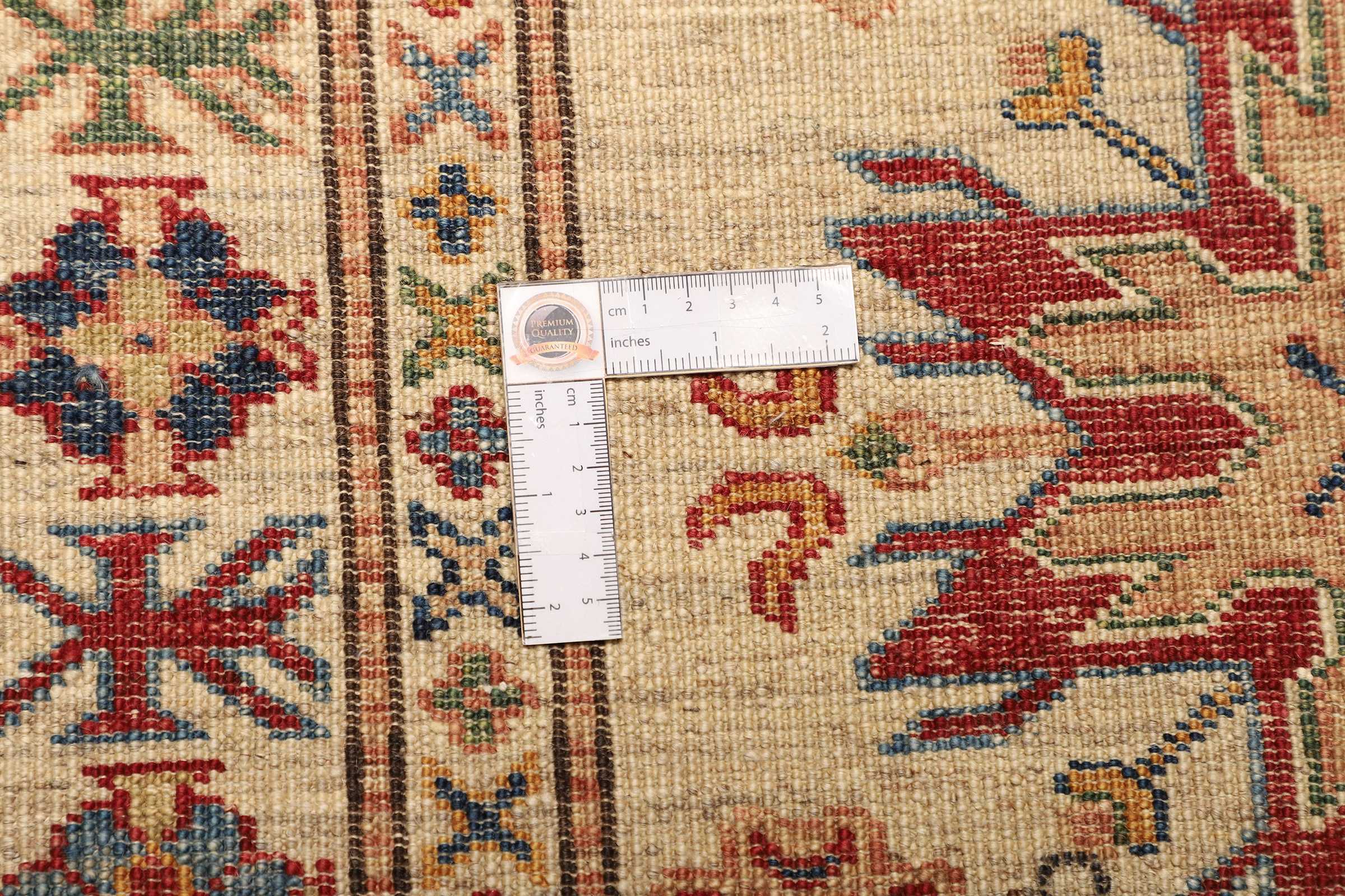 Dieser Kazak Teppich wurde nach einem traditionellen Verfahren aus handgesponnener Wolle und Naturfarben in Pakistan handgeknüpft.