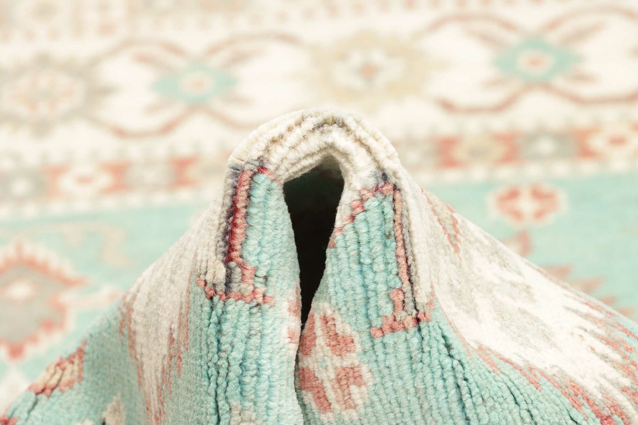 Geometrischer Kazak, türkis mit Rauten und Bordüre