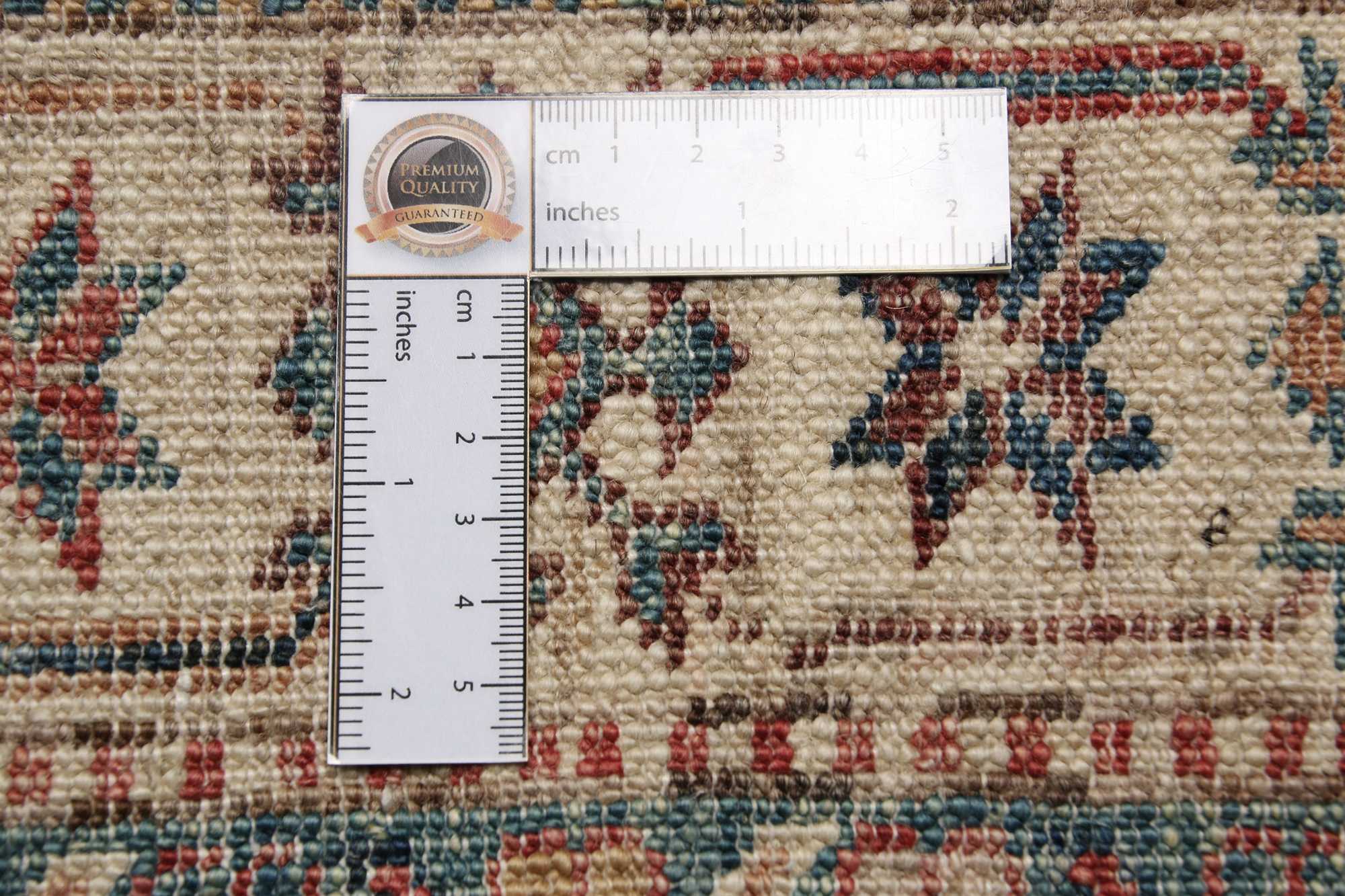 Dieser Kazak Teppich wurde nach einem traditionellen Verfahren aus handgesponnener Wolle und Naturfarben in Pakistan handgeknüpft.