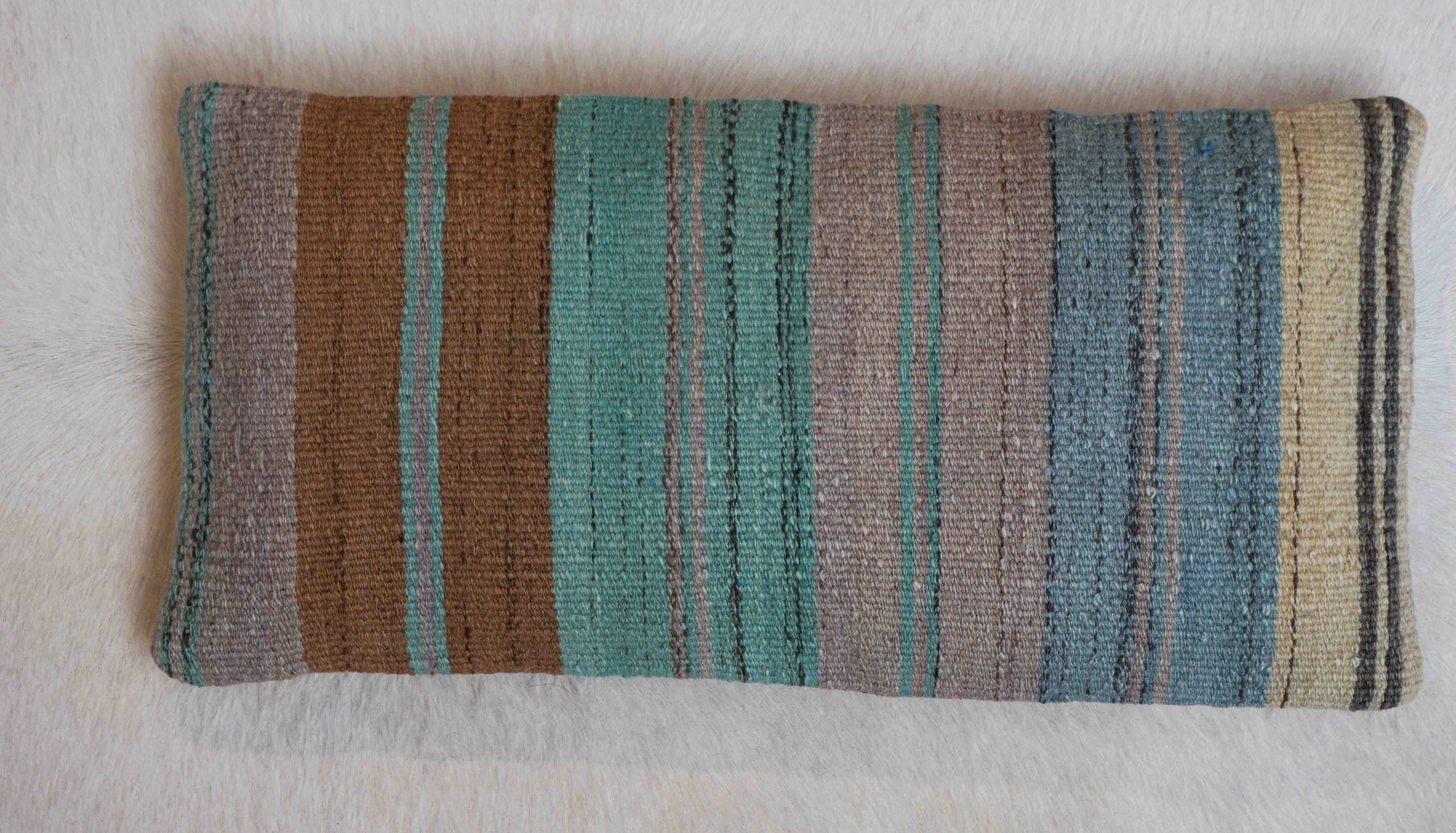 Die Vorderseite der Kissenbezüge besteht aus Fragmenten handgewebter türkischer Vintage Kelims aus den 50er bis 70er Jahren.