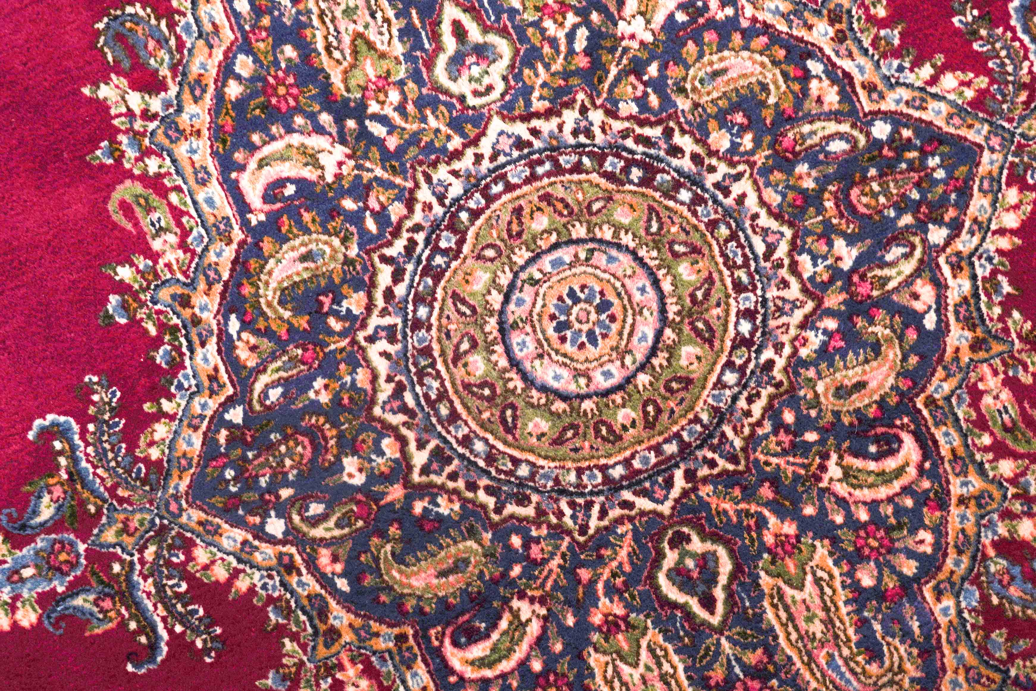Die Stadt Kerman (auch Kirman) liegt im Südosten Persiens auf ca. 2.000 Metern höhe. Kerman ist auf den alten Karawanenrouten gelegen und besitzt eine jahrhundertealte Tradition sowohl im Kunsthandwerk als auch im Handel. Kerman wird in Marco Polos Reisebericht Il Milione erwähnt. Kennzeichnend für Teppiche aus Kerman sind feine Muster, gewundene Linien und sanfte Farbabstufungen. Die klassischen Muster aus dem 19. Jahrhundert sind häufig figürlich gestaltet. Jagdszenen und Tiere wurden ebenso dargestellt wie mythologische Figuren oder historische Personen. Die breite Farbpalette der Kerman Teppiche wird insbesondere durch vielfältige Rotschattierungen bereichert, die traditionell aus der Schildlaus gewonnen wurden.