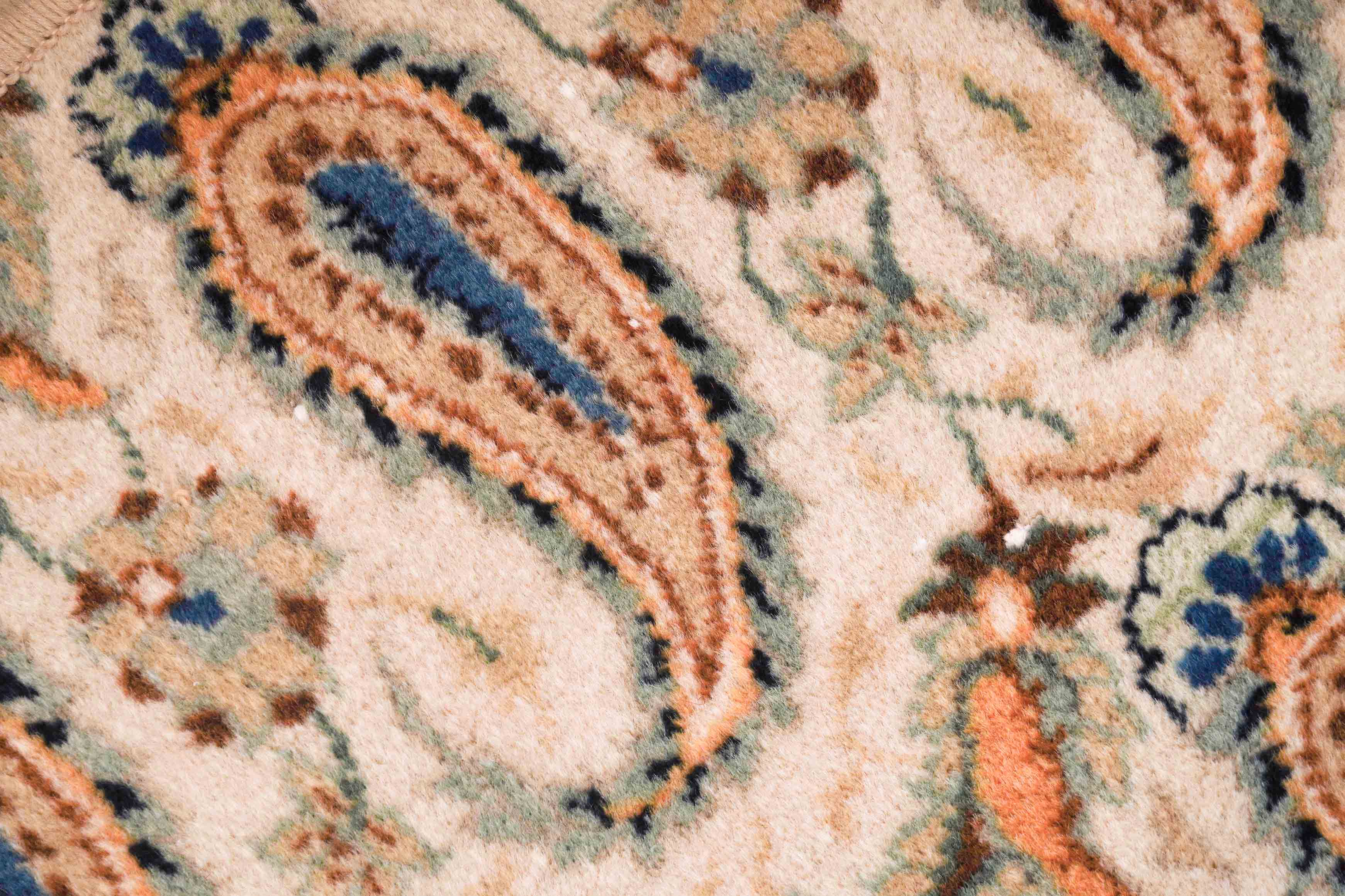 Das Muster dieses Keshan schmücken herrliche Paisley Motive. Das Paisley Motiv stellt ein Blatt mit einem spitz zulaufenden, gebogenen Ende, in der Art eines großen Kommas dar und erinnert an das Fischblasen-Ornament der Gotik. Der Ursprung lag bei den Chaldäern, die mit dem Motiv offenbar den Spross der für sie überlebenswichtigen Dattelpalme abbildeten. Das Motiv war bis zu den Kelten verbreitet, wurde dort aber wieder von griechischen und römischen Ornamenten verdrängt. Teppichmuster, die Paisley-Ornamente enthalten, werden auch als Boteh-Muster persisch Mir-e-butha oder Mir-i-bota bezeichnet.