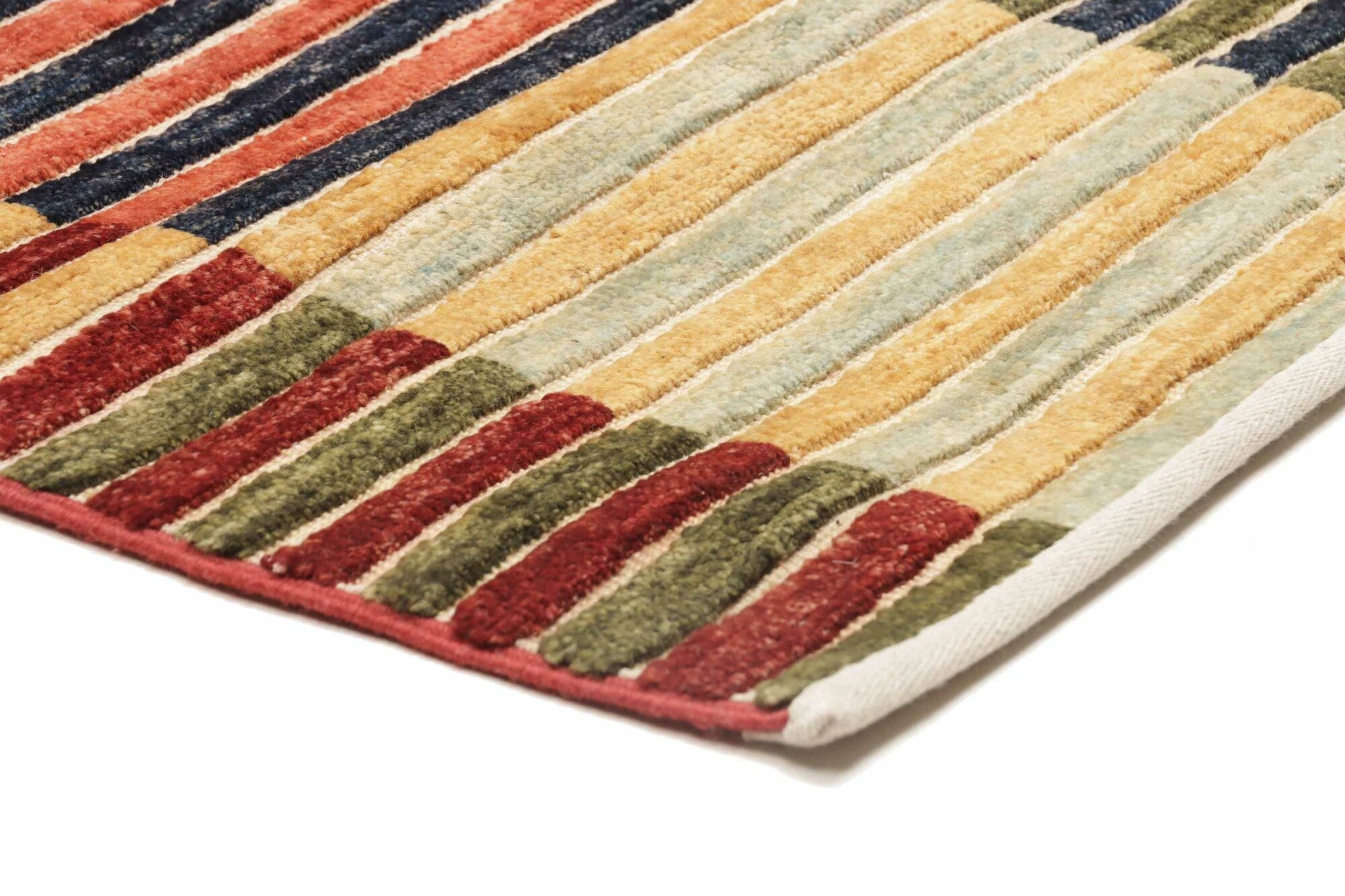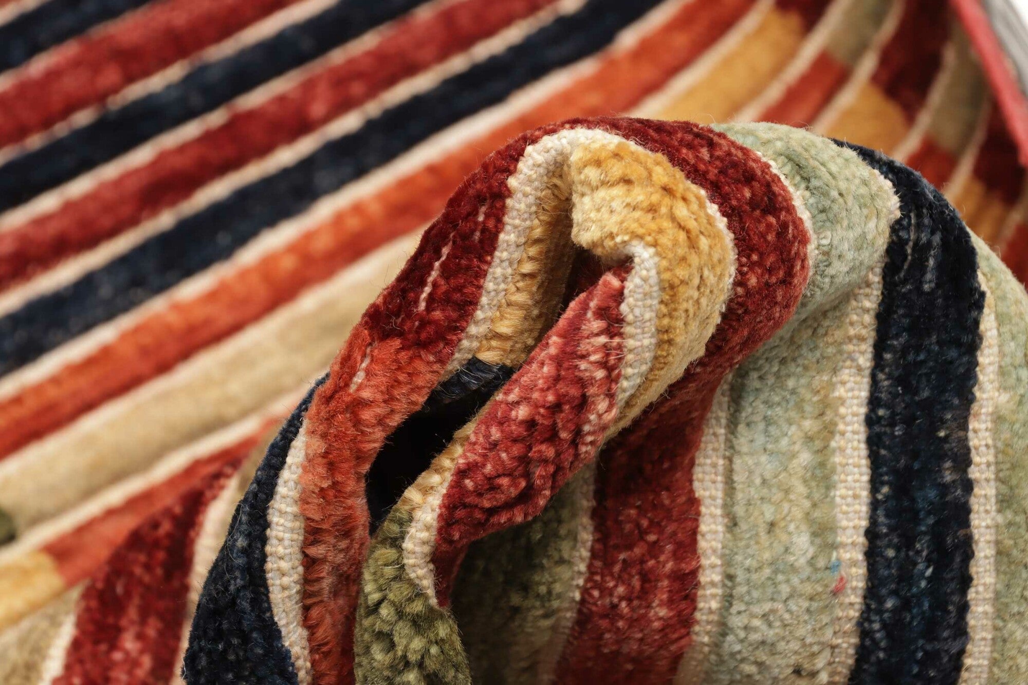 Das Muster dieses Teppich zieren Querstreifen und Farbverläufe. Das Muster erinnert entfernt an das typische Streifendesign der italienischen Modefirma Missoni.