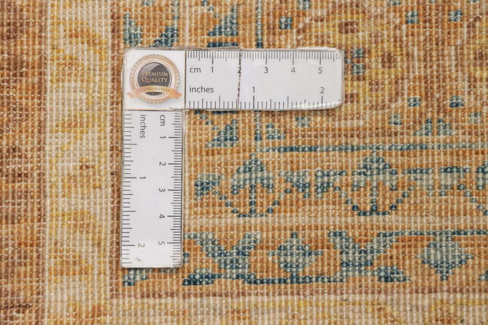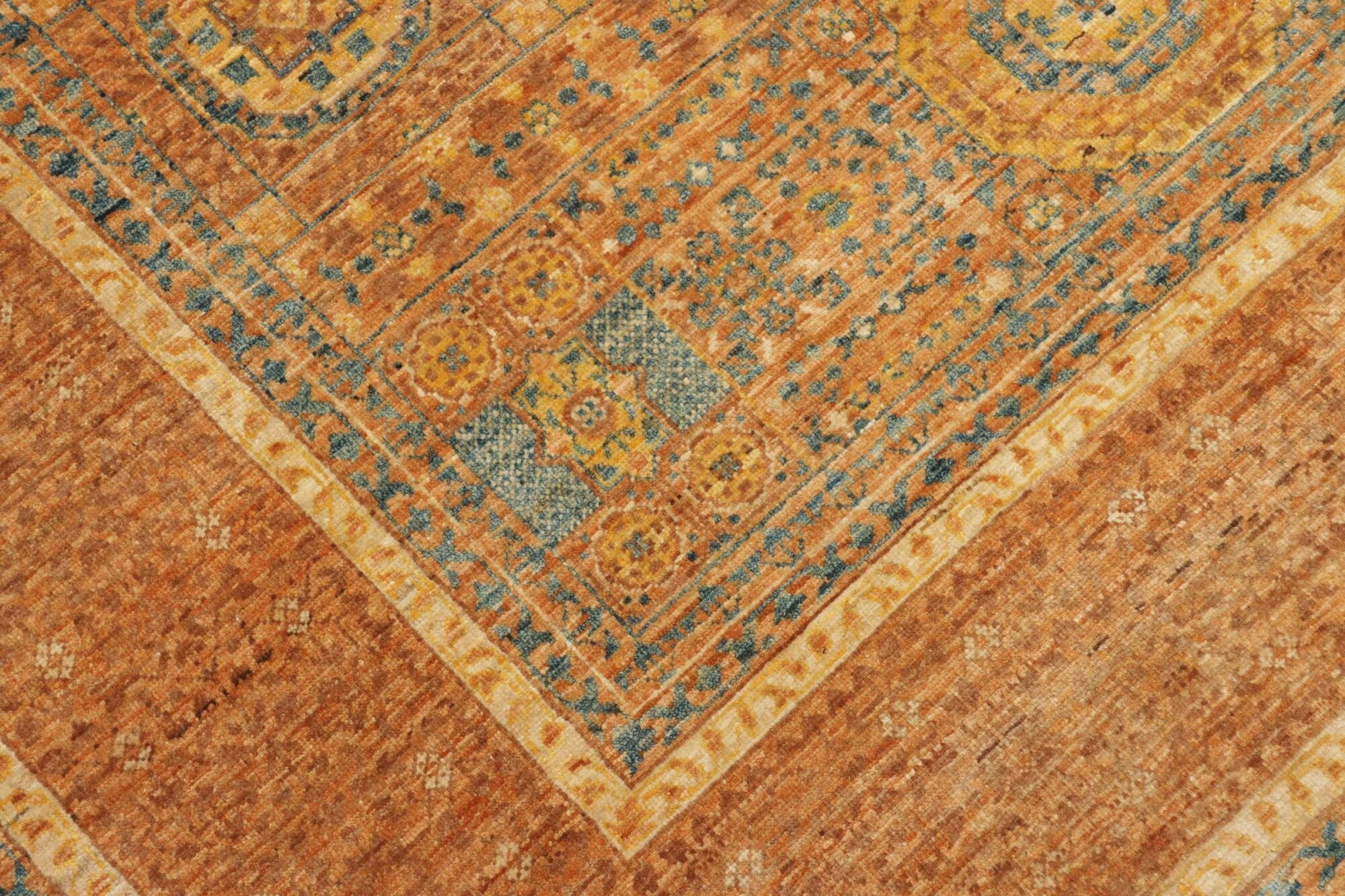 Der Hintergrund dieses Mamlouks ist Curry. Der Rand ist in den Farben Curry, Hellblau und Beigegelb gestaltet. Im Zentrum sind die Farben Curry und Beigegelb kombiniert.