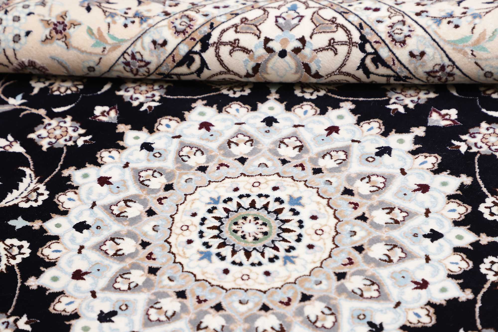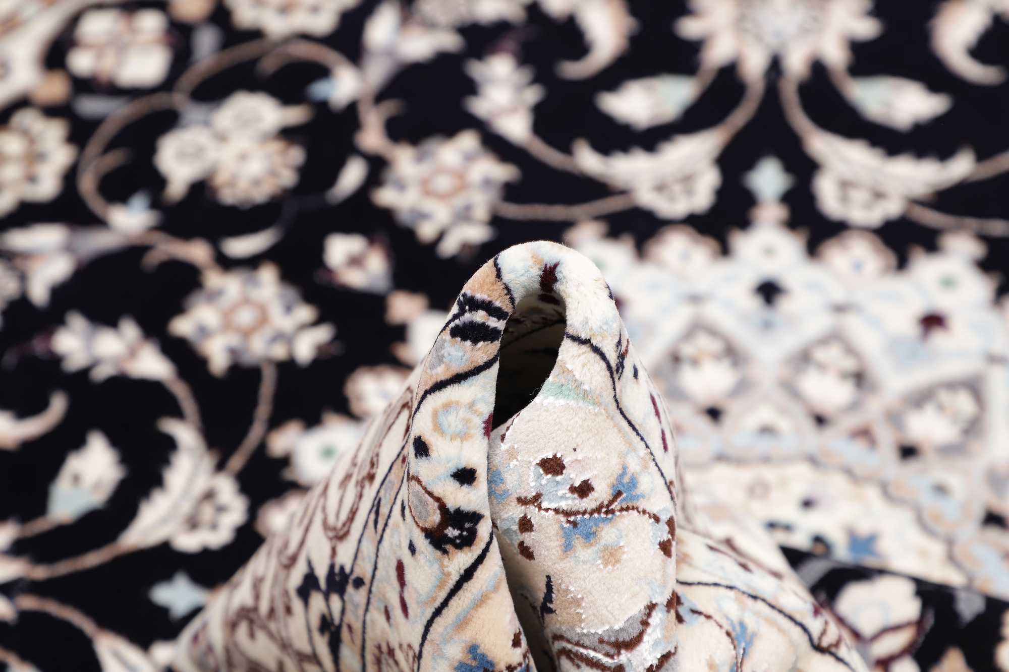 Die Teppiche aus Nain verdanken ihre unverwechselbaren Muster und Farbkombinationen insbesondere dem Meister Hadj Fatollah Habibian Naiini. Er beschränkte sich beim Knüpfen auf weniger als zehn Farben und legte somit den Grundstein für die Farbkomposition der heute noch sehr beliebten Teppiche aus Nain. Die Grundfarben sind bis heute meist Weiß bzw. Beige und Blau, wobei auch immer öfter Nain-Teppiche in den Farben Rot, Grün und Gelb gibt. Typisch sind florale Muster, deren Konturen mit Seide betont werden. Durch die schlichte Eleganz und Reduktion auf wenige Farbtöne passen die Nain Teppiche auch hervorragend in moderne Einrichtungen.