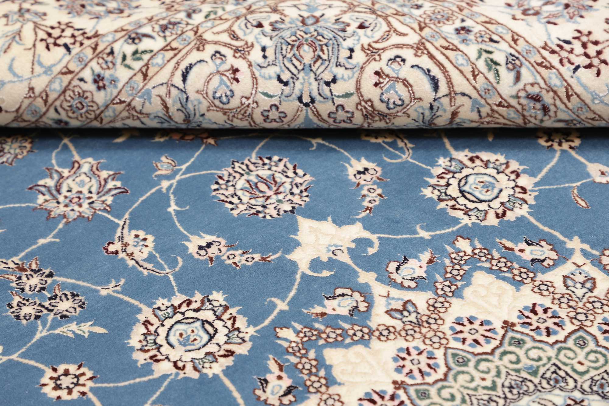 Die Teppiche aus Nain verdanken ihre unverwechselbaren Muster und Farbkombinationen insbesondere dem Meister Hadj Fatollah Habibian Naiini. Er beschränkte sich beim Knüpfen auf weniger als zehn Farben und legte somit den Grundstein für die Farbkomposition der heute noch sehr beliebten Teppiche aus Nain. Die Grundfarben sind bis heute meist Weiß bzw. Beige und Blau, wobei auch immer öfter Nain-Teppiche in den Farben Rot, Grün und Gelb gibt. Typisch sind florale Muster, deren Konturen mit Seide betont werden. Durch die schlichte Eleganz und Reduktion auf wenige Farbtöne passen die Nain Teppiche auch hervorragend in moderne Einrichtungen.