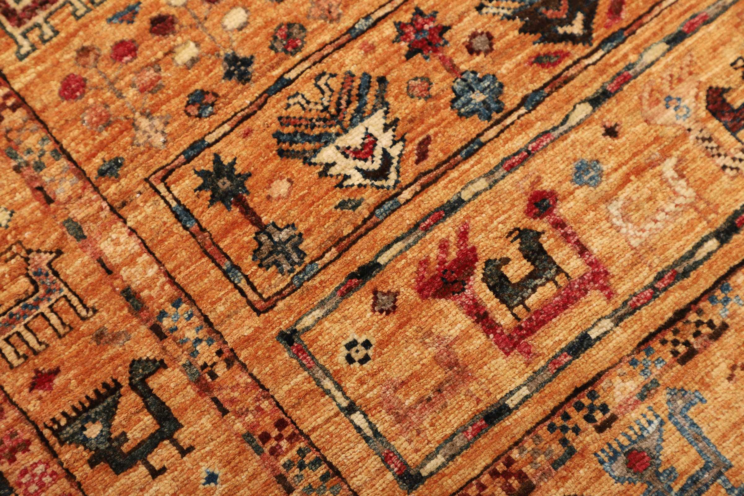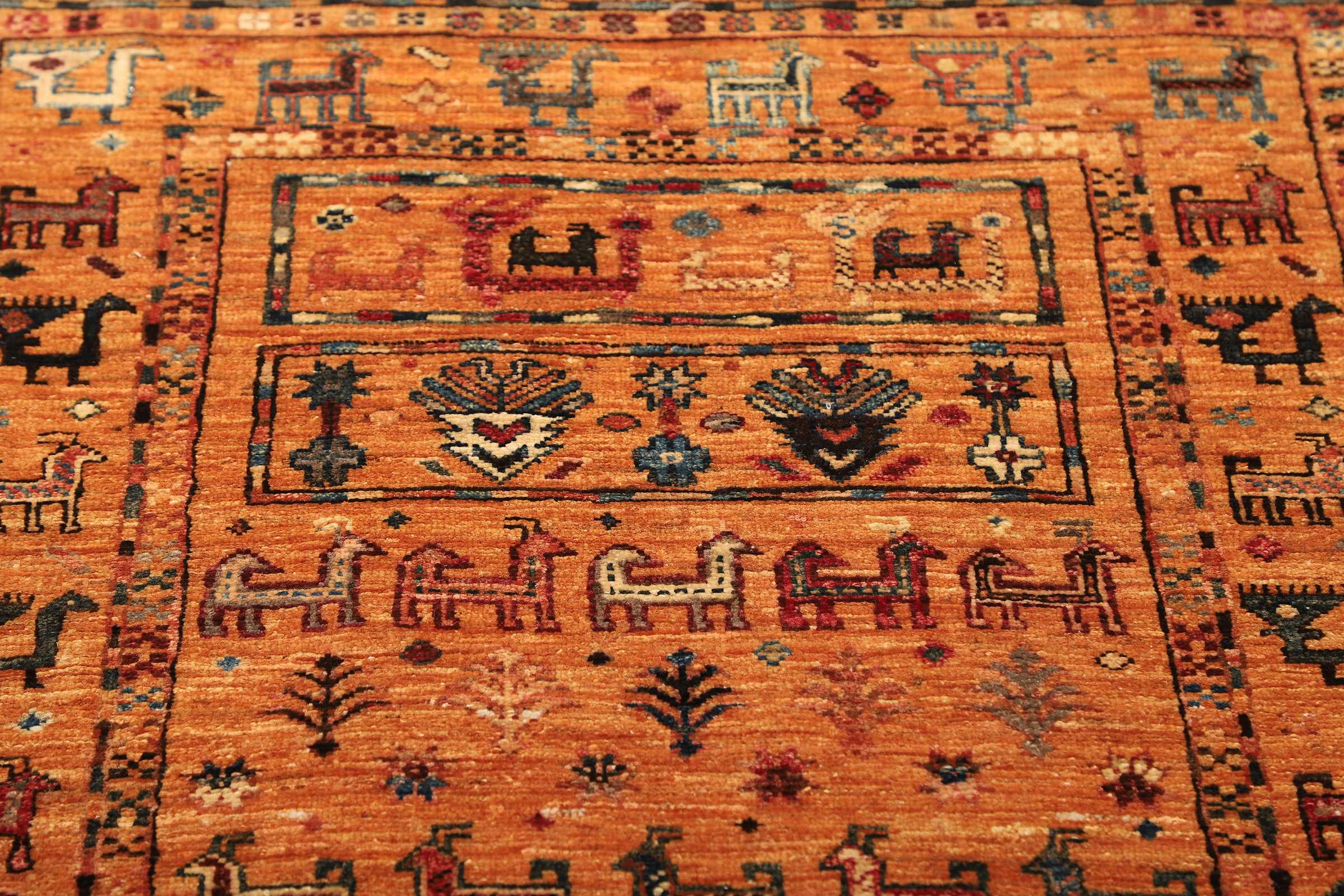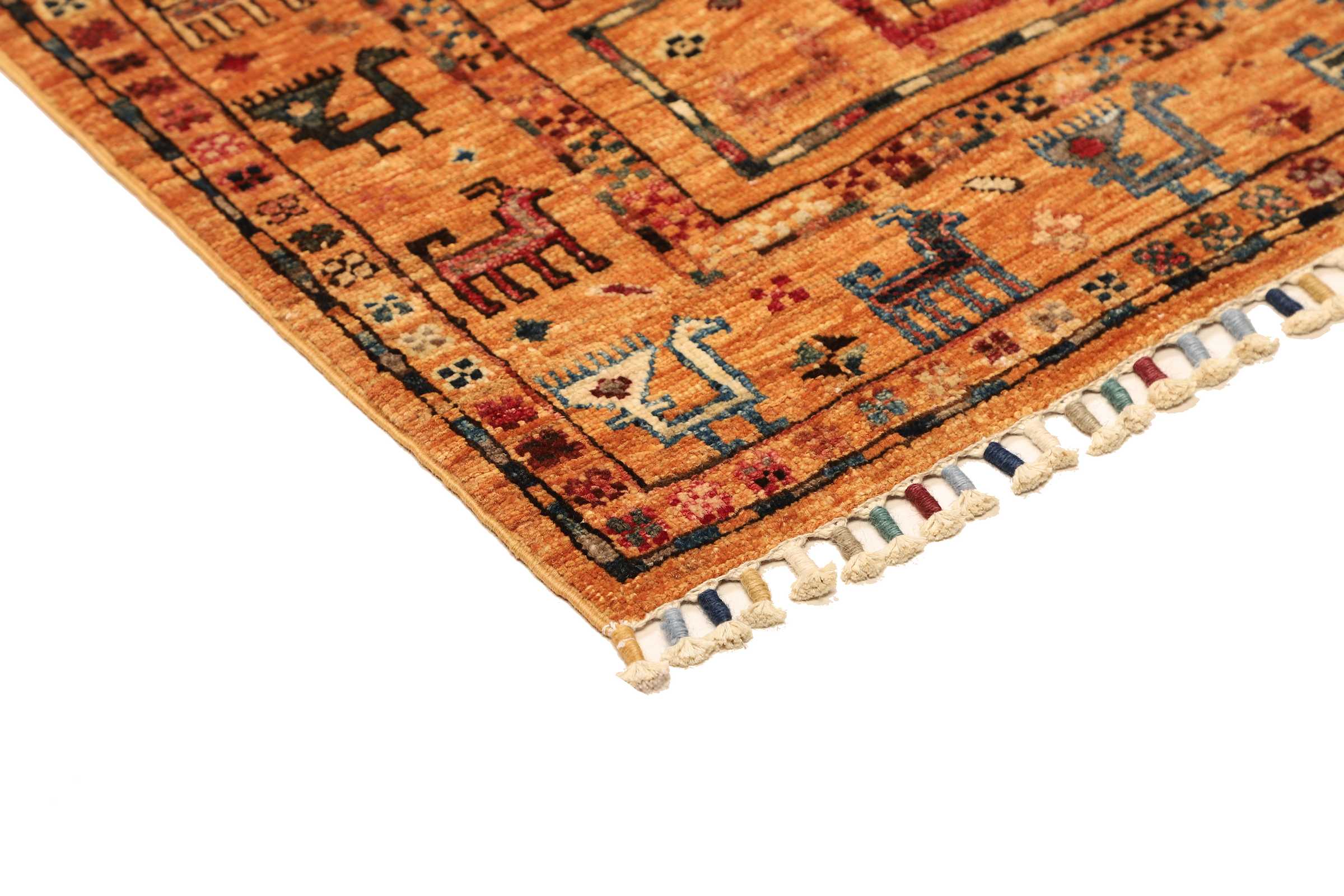 Das Muster dieses handgeknüpften Oxiana Teppichs ist angelehnt an die traditionellen, usbekischen Muster. Ursprünglich wurde vor allem in der Region um Samarkand und Oxiana Teppiche mit einem ähnlichen Muster geknüpft. Unsere Oxiana Teppiche sind auf den zeitgenössischen Geschmack abgestimmt: Harmonische Farbkompositionen aus Naturfarben schmeicheln dem traditionellen Muster. Die Oxiana Teppiche zieren farbenfrohe Querstreifen, die sich mit phantasievoll gemusterten Bereichen abwechseln. Die gemusterten Teile zeigen geometrische Kompositionen, die an ein Kazak Muster erinnern. Charakteristisch ist außerdem, dass die Fransen in kleinen Bündeln zusammengefasst und mit verschiedenfarbigen Fäden umwickelt wurden.