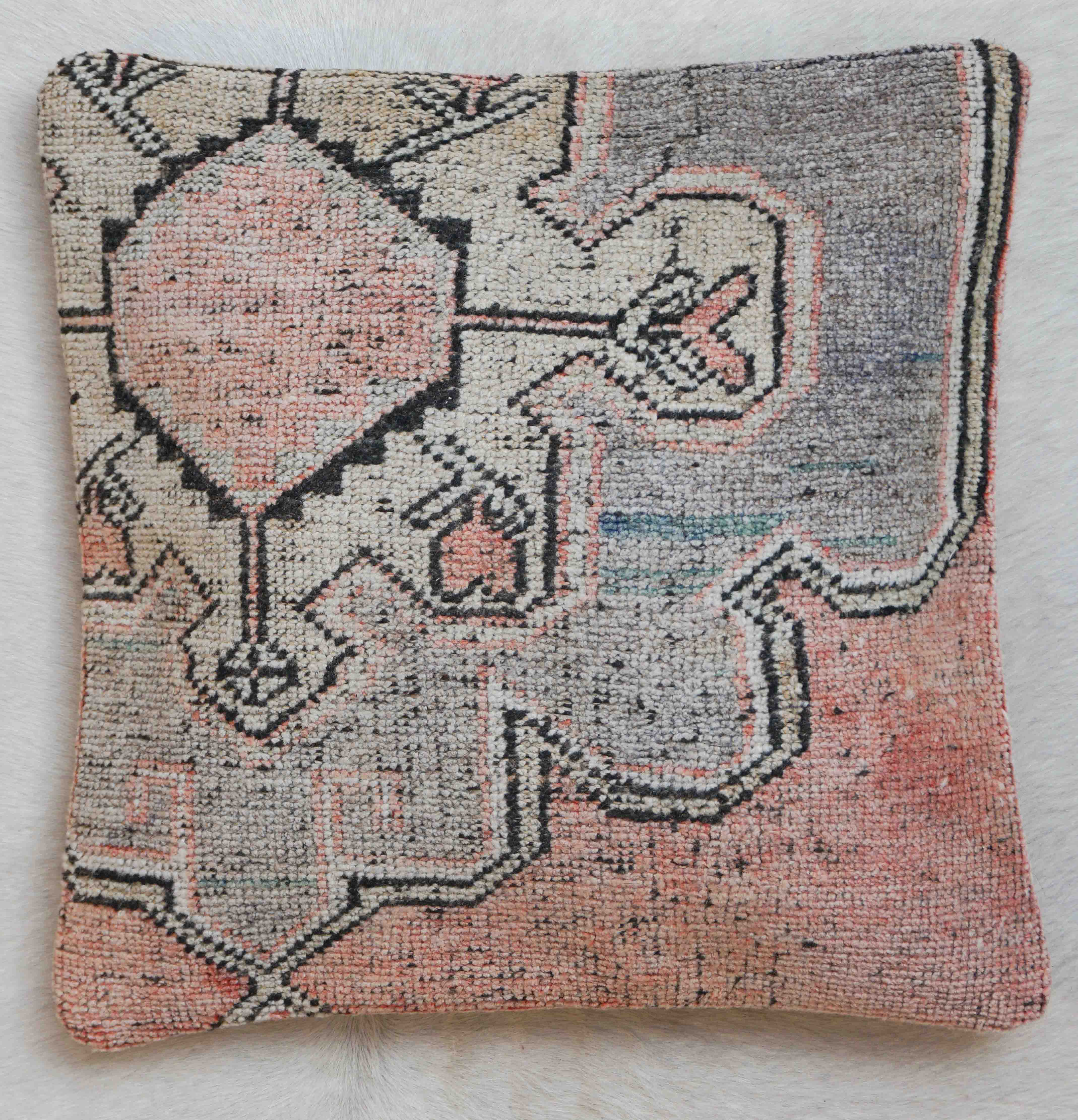 Die Vorderseite der Kissenbezüge besteht aus Fragmenten handgeknüpfter türkischer Vintage Teppiche aus den 50er bis 70er Jahren.