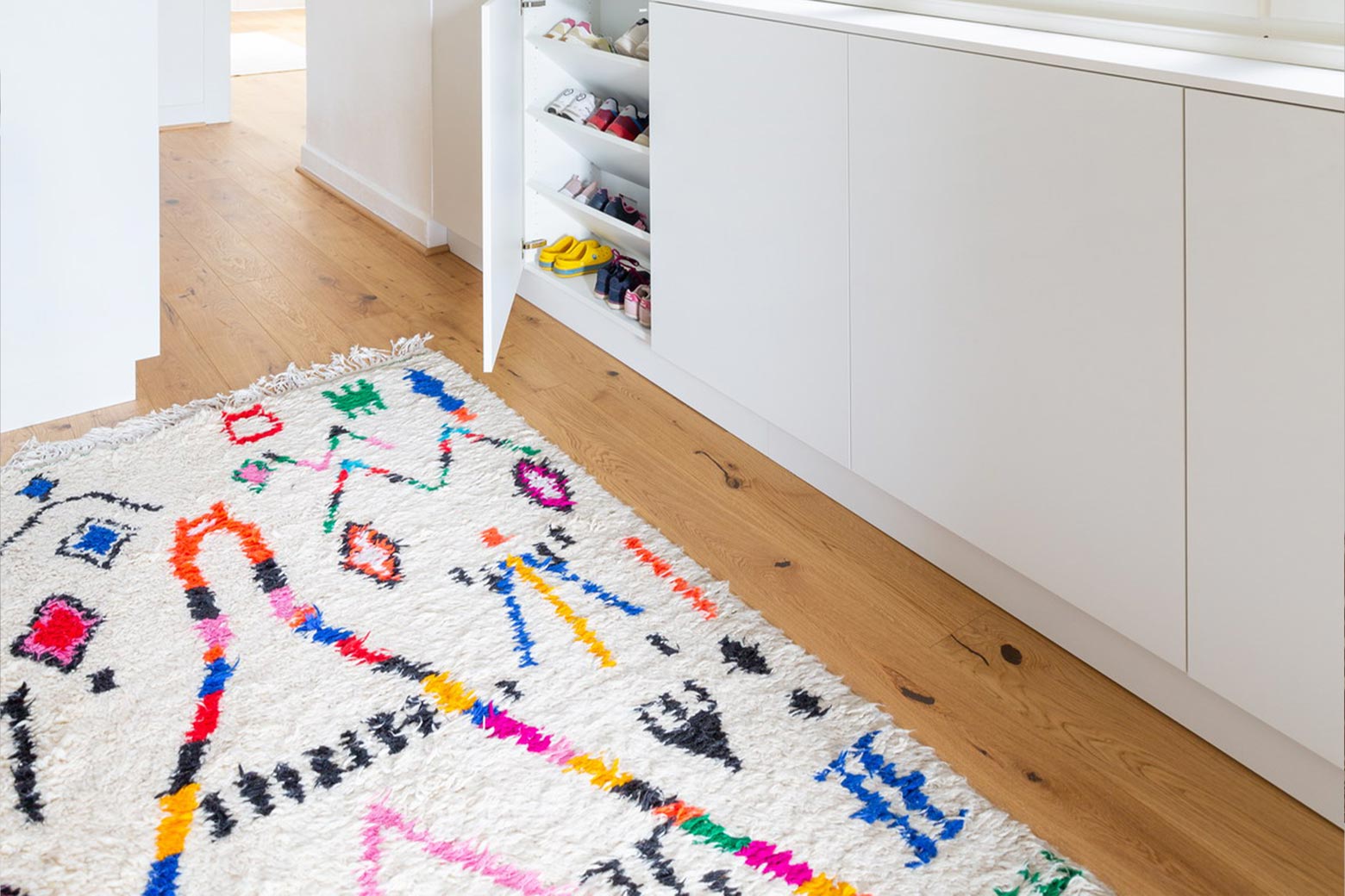 Ein Berberteppich lässt sich vielseitig kombinieren und passt in verschiedene Wohnstile. Auf modernen Betonböden setzt ein farbenfroher Teppich tolle Akzente, während er auf Holzfußböden Wärme und Gemütlichkeit ausstrahlt. Selbst in Badezimmern kann ein marokkanischer Berber Teppich für einen ausgefallenen Look sorgen. Seine weiche und flauschige Struktur, gefertigt aus Schurwolle, macht ihn auch ideal als Kinderteppich.