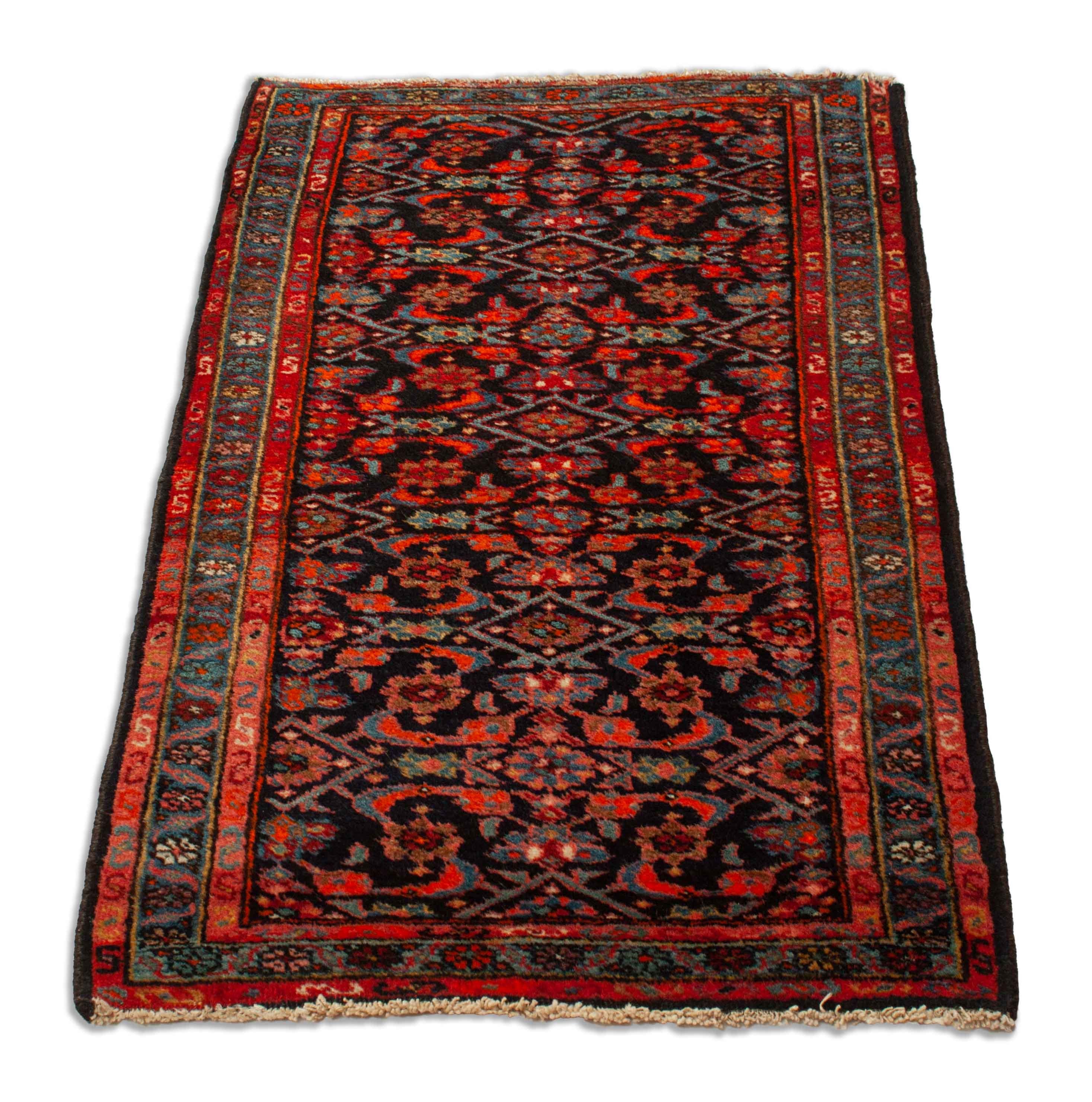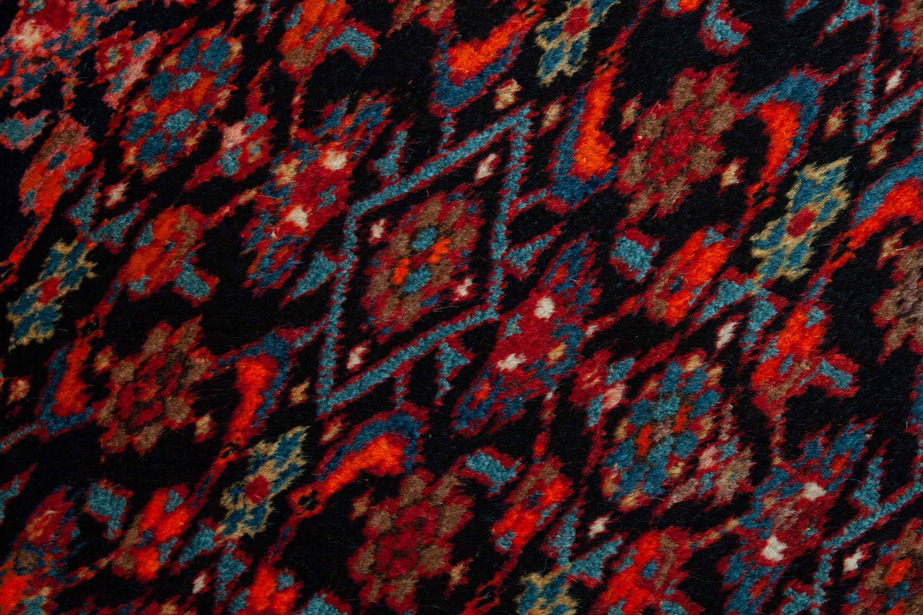 Le fond de ce Bidjar est bleu foncé. Le bord est conçu dans les couleurs rouge clair, gris bleu et bleu foncé.