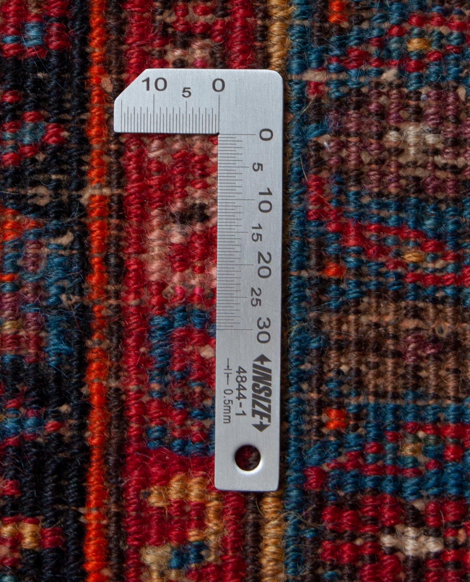 The composition abstraite, géométrique fait l'élégance simple de ce bidjar. Le motif flatte le design de la pièce et ne fait pas attention aux meubles, décoration et élément architectural. Il s'intègre fantastiquement dans n'importe quel environnement et complète l'établissement d'un espace de manière subtile.