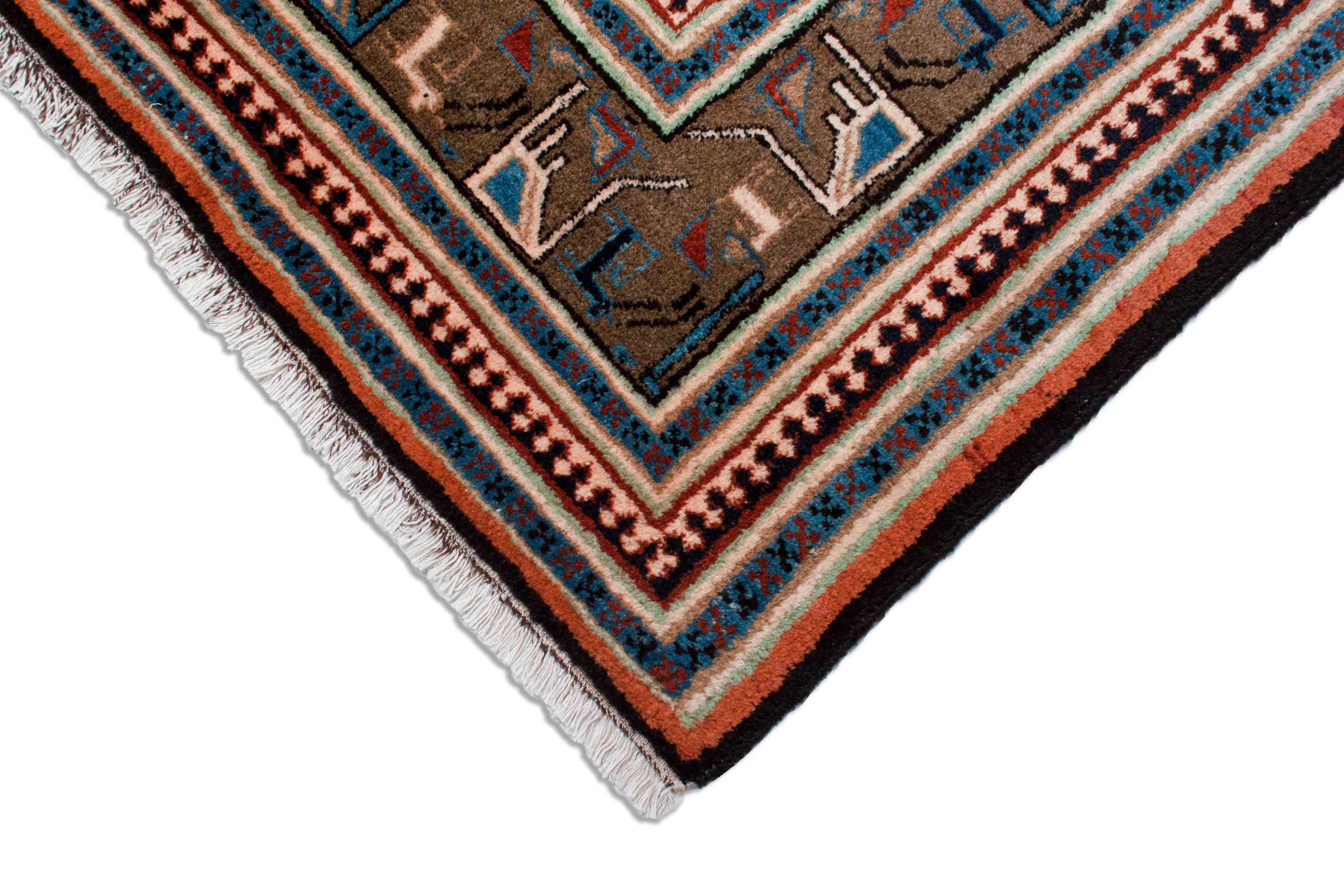 La laine de fer à main est toujours un peu irrégulière. Pendant la coloration, les colorants naturels sont absorbés différemment. Le tapis agit de façon plus vive, soi-disant couleur saute abrasch, c'est-à-dire des nuances de couleur claire-ombre. Les modifications de l'ombre du fil de pile s'étendent toujours transversalement à la direction longitudinale de la Gabbeh et rendent le tapis insensible à la contamination. Les fils de tissage et de distorsion de ce don consistent en Coton. Le matériau polyvalent est résistant à la déchirure et extensible et donc particulièrement adapté à un sous-vêtement durable.