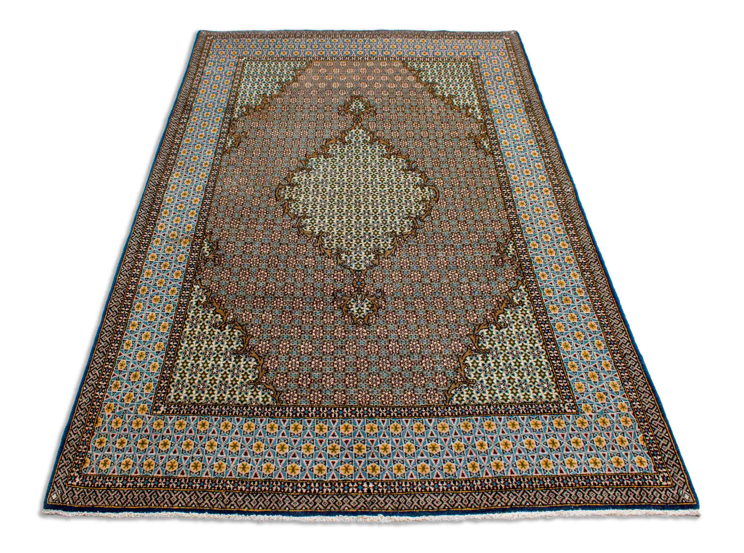 Ghom géométrique, gris bleu avec bordure et médaillon
