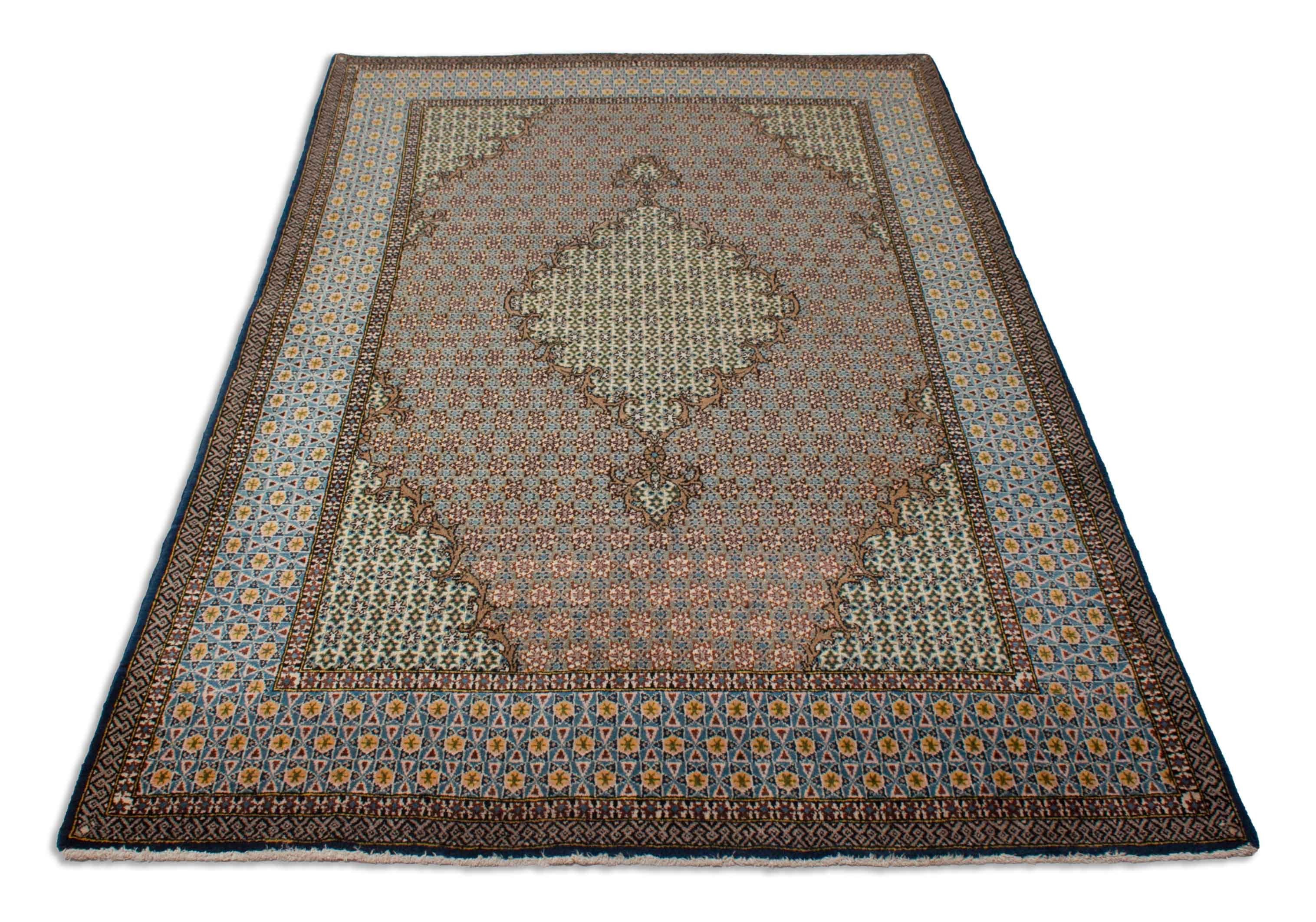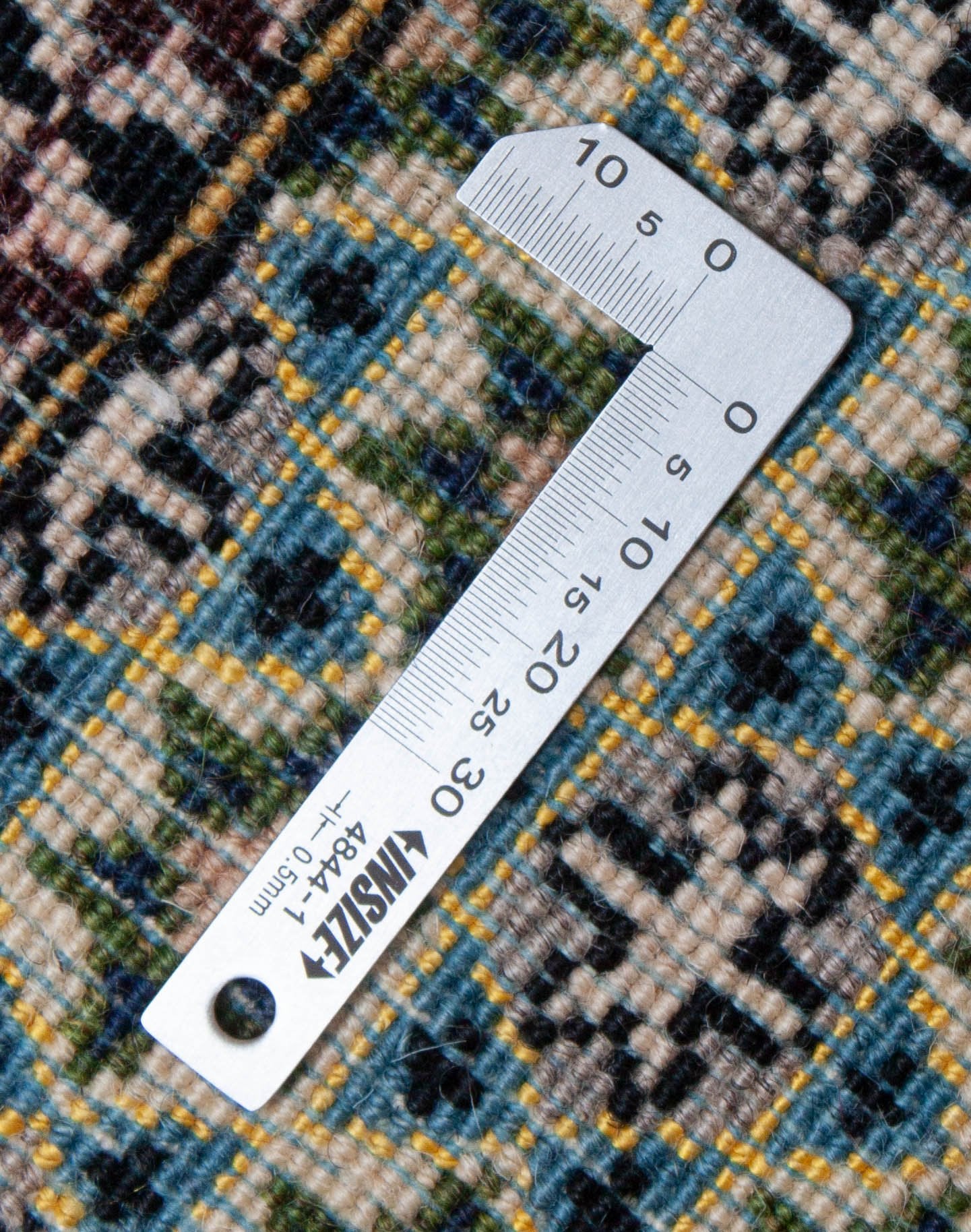 The composition abstraite, géométrique fait l'élégance simple de ce ghom. Le motif flatte le design de la pièce et ne fait pas attention aux meubles, décoration et élément architectural. Il s'intègre fantastiquement dans n'importe quel environnement et complète l'établissement d'un espace de manière subtile.