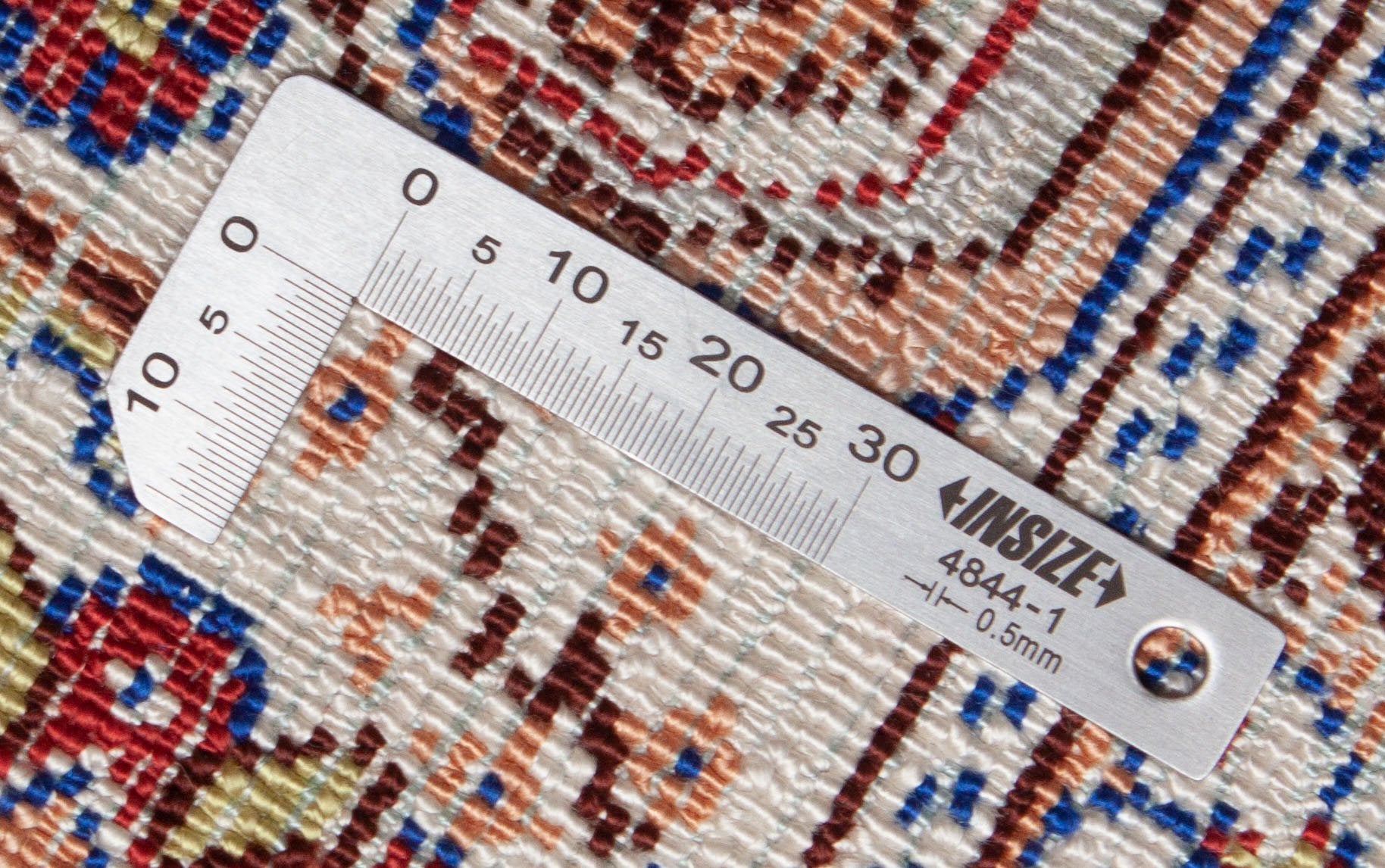 The Silk la Flore de ce Hereke laisse briller les couleurs du motif dans différentes nuances, selon la lumière. Il en fait un véritable bijou et crée une atmosphère confortable et en même temps très élégante et de haute qualité dans la pièce. La soie est obtenue à la main des cocons de l'araignée de soie. Comme les fils de soie individuels sont extrêmement longs, des fils très fins peuvent être produits qui sont néanmoins résistants à la déchirure avec un faible poids. Des nœuds de tapis plus petits peuvent être fabriqués avec le fil mince et ainsi des motifs plus fin peuvent être produits. Par conséquent, les plus beaux tapis du monde sont faits à la main de la pure soie. Dans ce Hereke même le souterrain était pure soie fait. En raison du matériau mince mais durable des fils de trame et de chaîne, un bouton particulièrement fin et donc un motif particulièrement fin est possible.