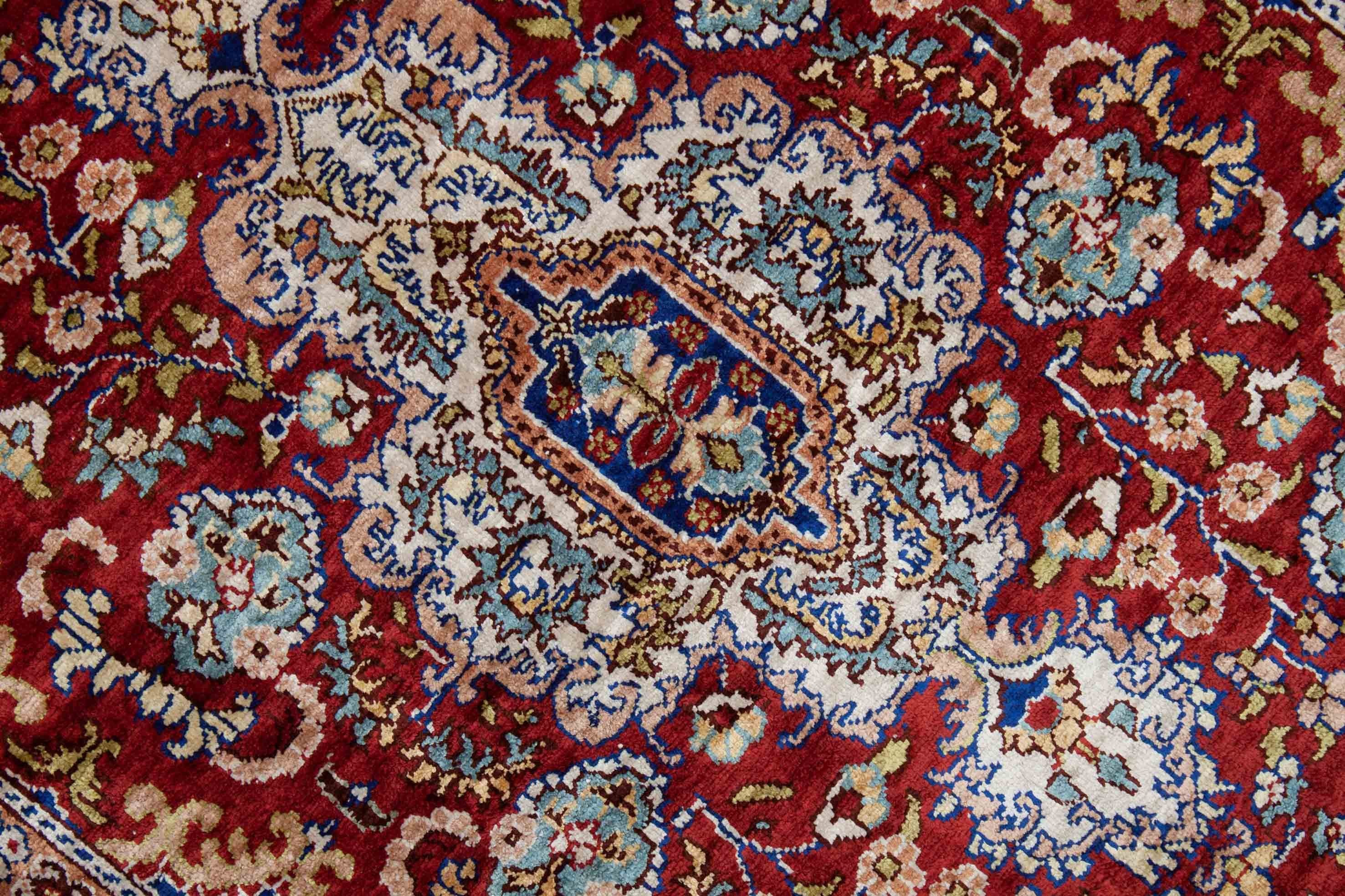 Floraler old Hereke en soie pure, rosée avec bordure et médaillon