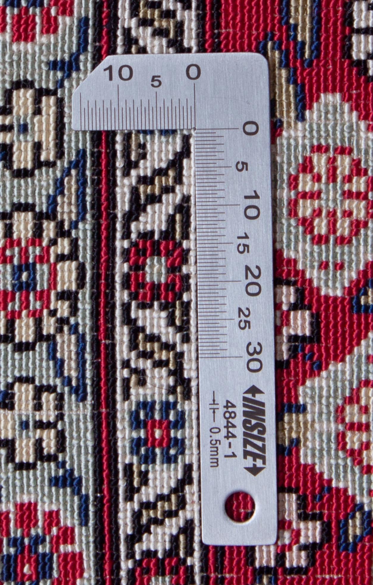 The Silk la Flore de ce Hereke laisse briller les couleurs du motif dans différentes nuances, selon la lumière. Il fait de cet ici un véritable accent et crée une atmosphère confortable et en même temps très élégante et de haute qualité dans la pièce. La soie est obtenue à la main des cocons de l'araignée de soie. Comme les fils de soie individuels sont extrêmement longs, des fils très fins peuvent être produits qui sont néanmoins résistants à la déchirure avec un faible poids. Des nœuds de tapis plus petits peuvent être fabriqués avec le fil mince et ainsi des motifs plus fin peuvent être produits. Par conséquent, les plus beaux tapis du monde sont faits à la main de la pure soie. Dans ce Hereke même le souterrain était pure soie fait. En raison du matériau mince mais durable des fils de trame et de chaîne, un bouton particulièrement fin et donc un motif particulièrement fin est possible.