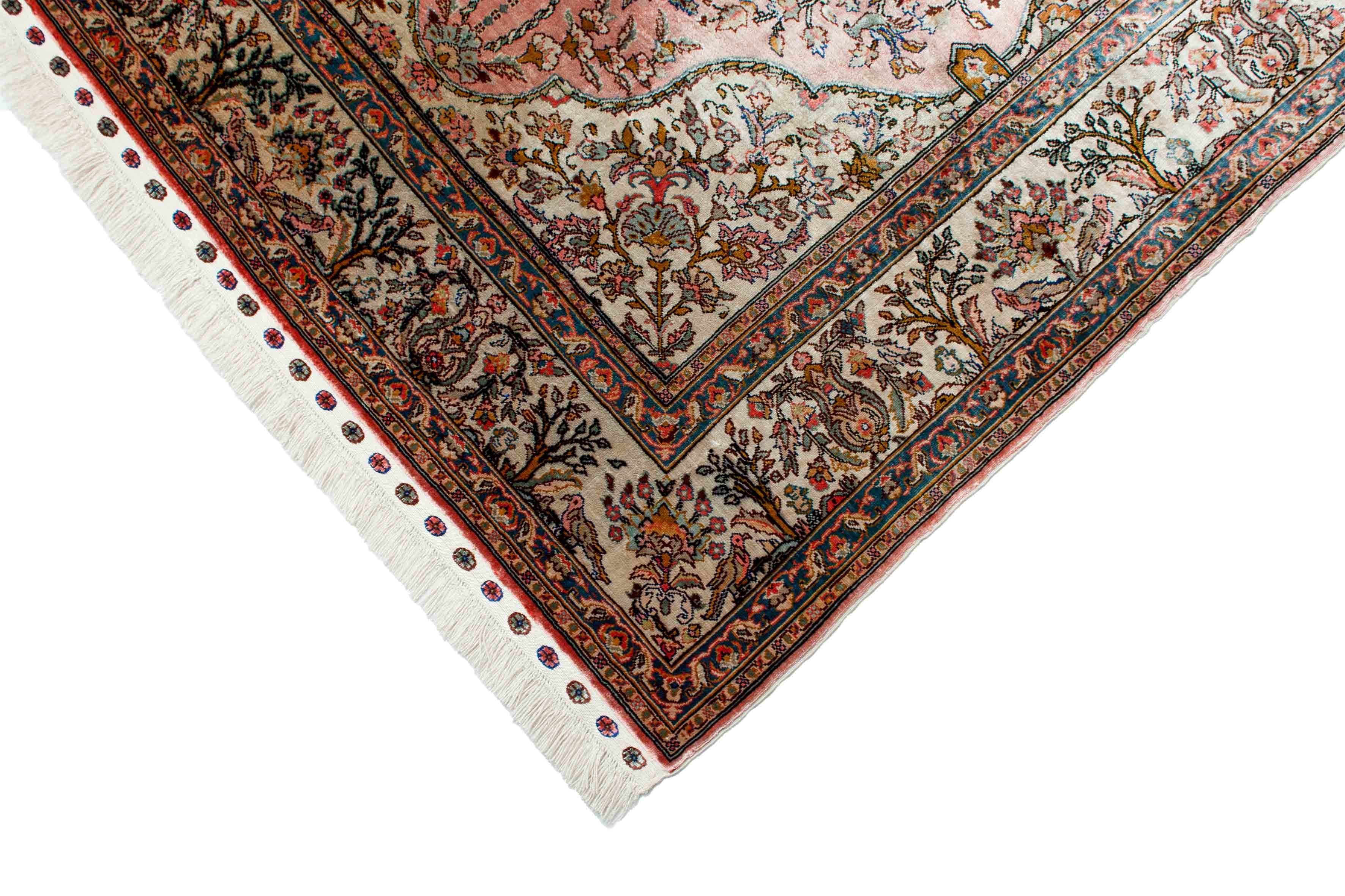 Floraler old Hereke en soie pure, rose ancien avec bordure et signature