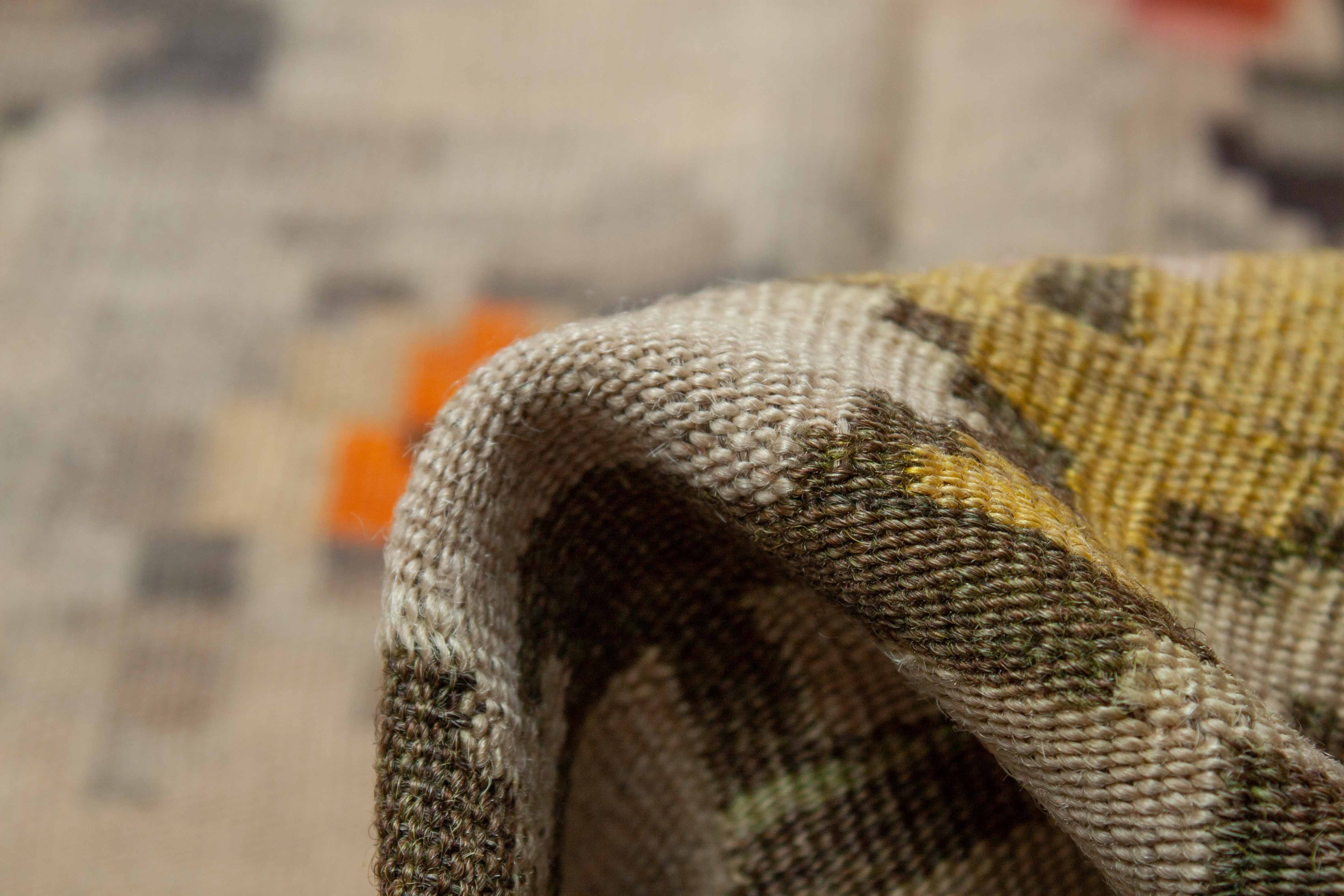 Les éléments répétitifs de ce Kelim Tepppich n'ont pas de centre spécifique. La répétition Rapports Ça a l'air apaisant mais pas ennuyeux. Tapis avec Rapports sont également appelés modèles.