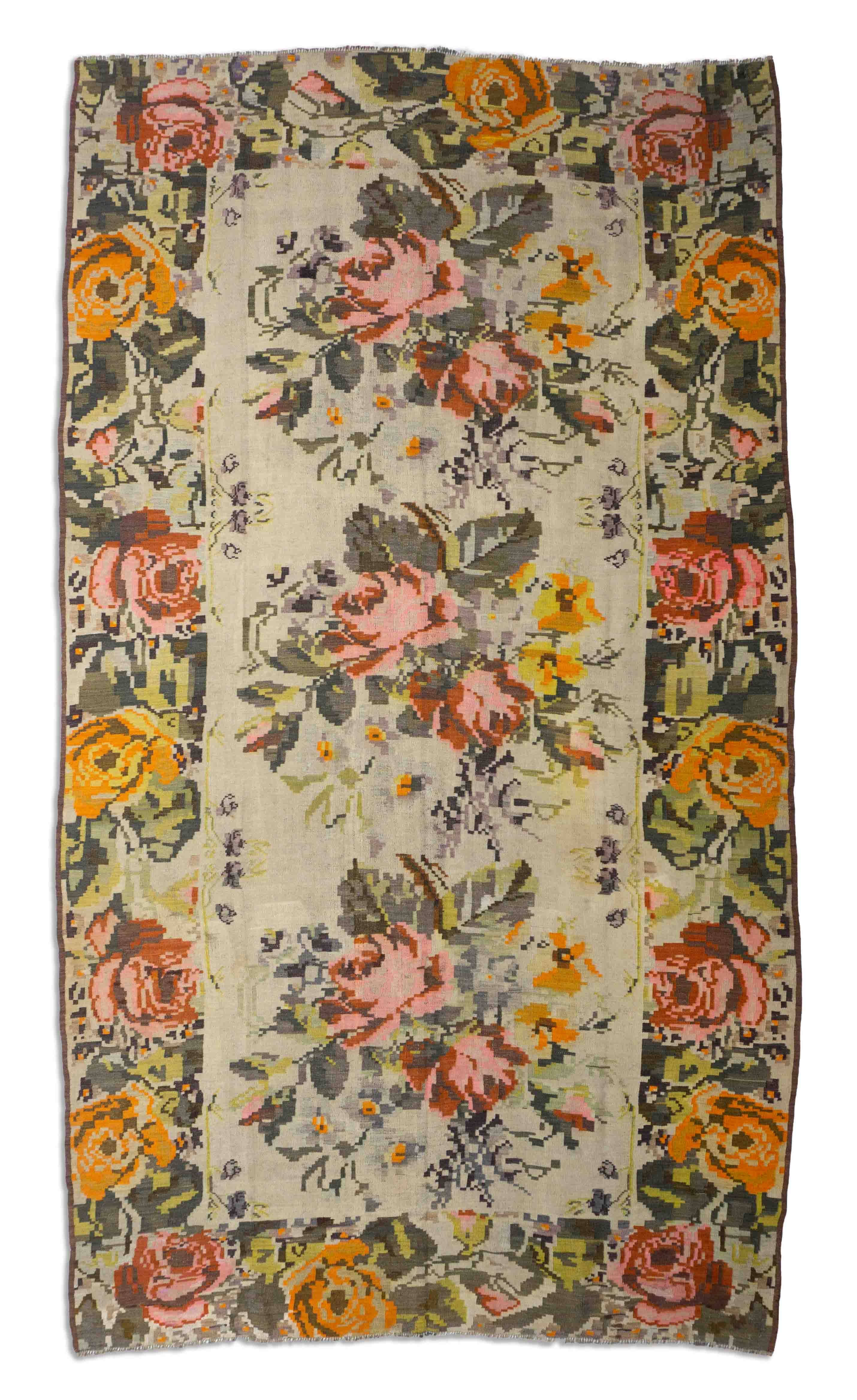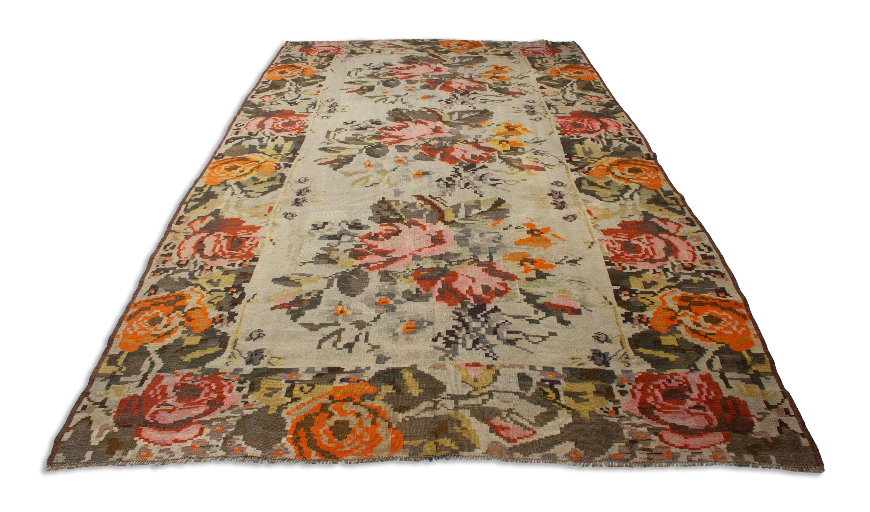 Le luxuriant Fleurs motifs ces Kelims sont élégants et variés. Les symboles végétatifs gracieux qui représentent les fleurs, les feuilles et les branches sont artistiquement enchevêtrés.