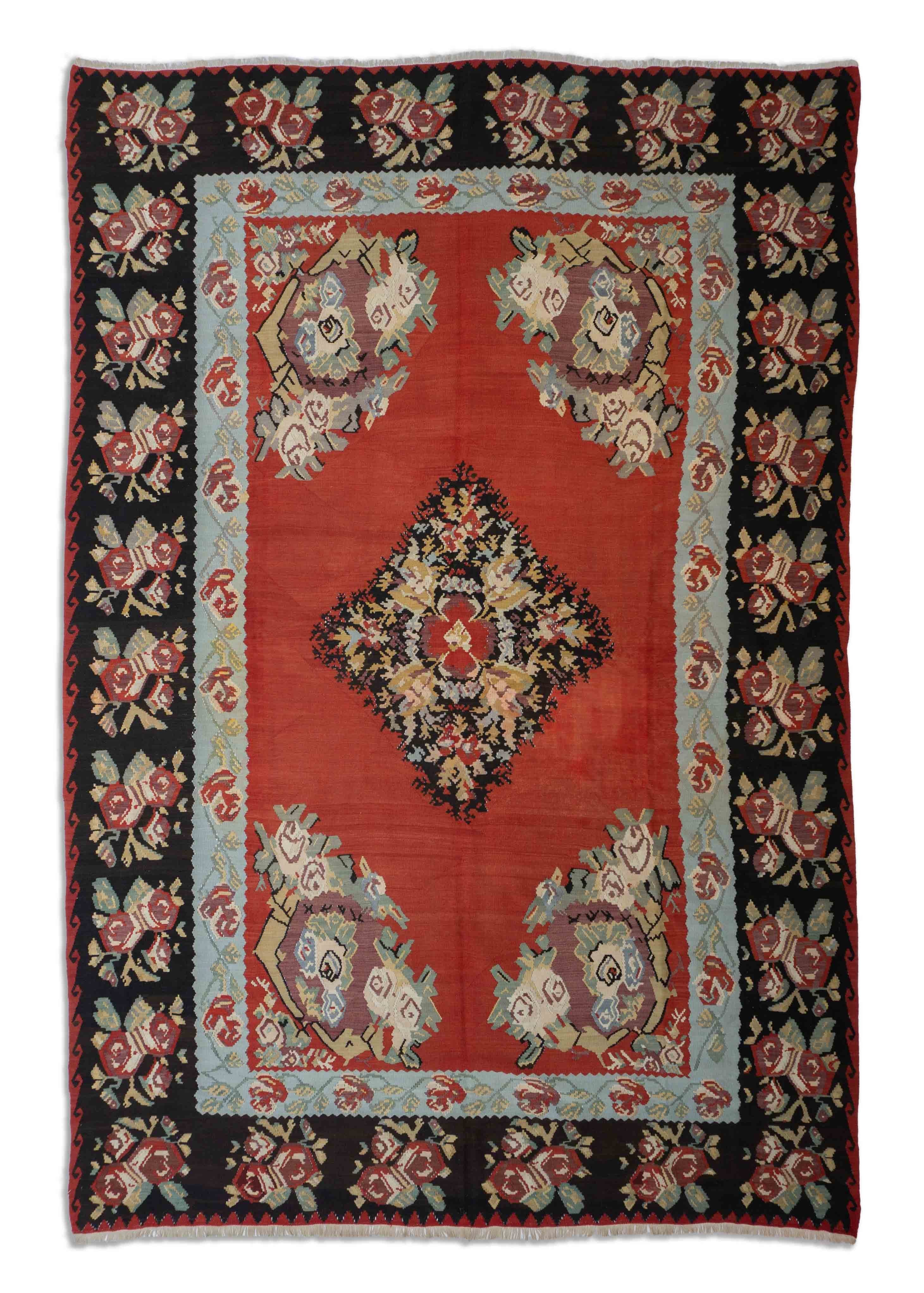 Ce vieux Kelim. 80 ans et un vrai amoureux. Surtout le motif de rose abstrait est dans cette pièce.