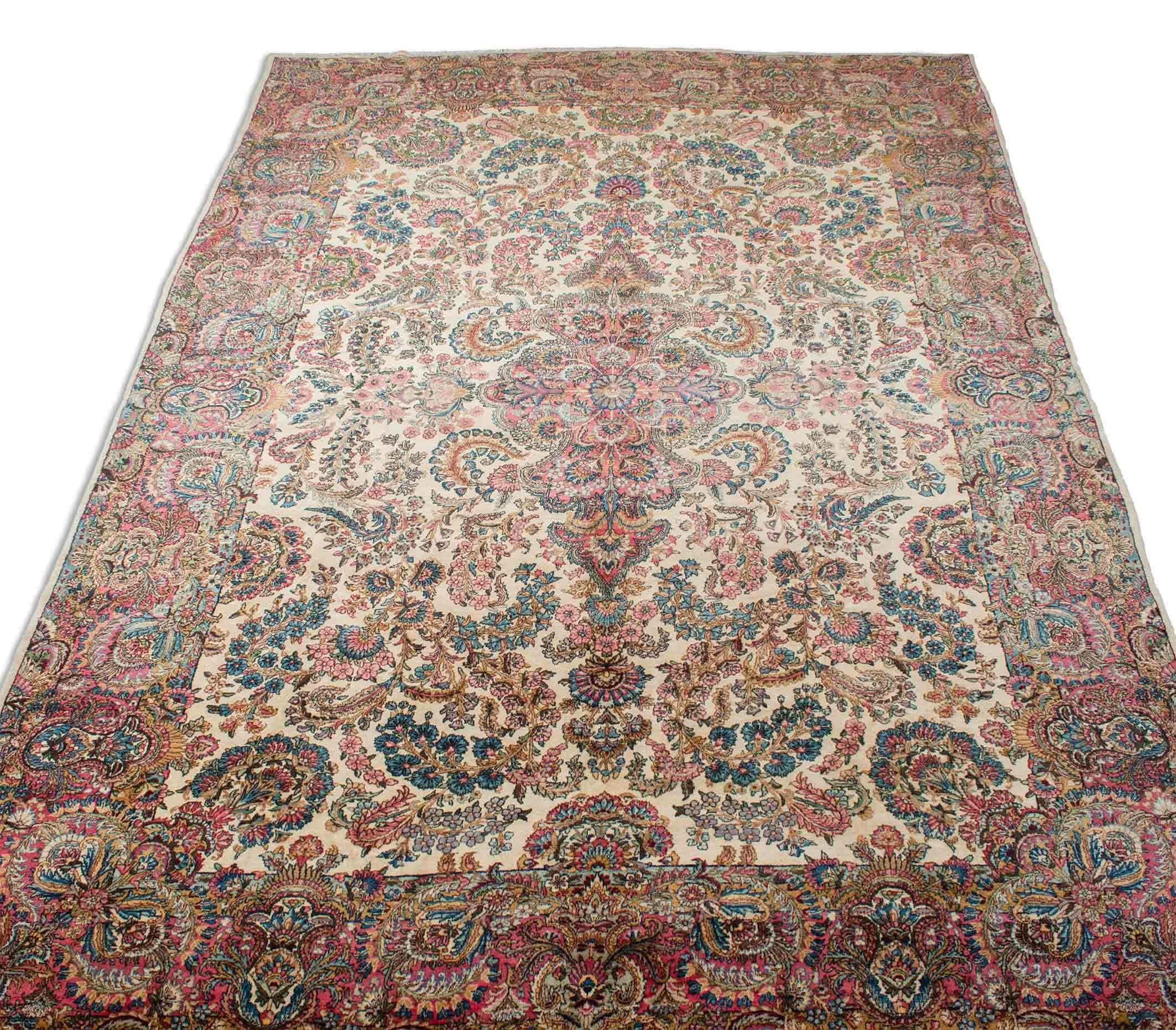 Floraler vieux Kerman Lavar, beige avec bordure et médaillon