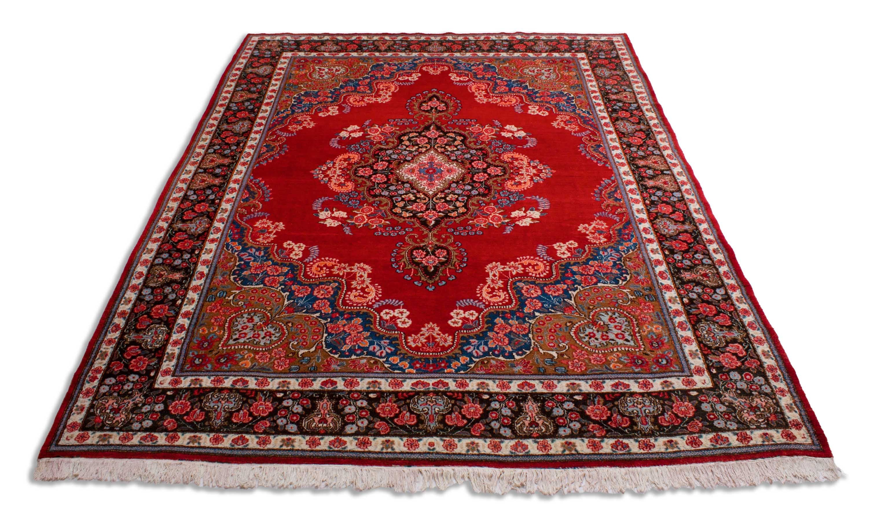 Floraler alt Meschad, weinrot avec médaillon et frontière