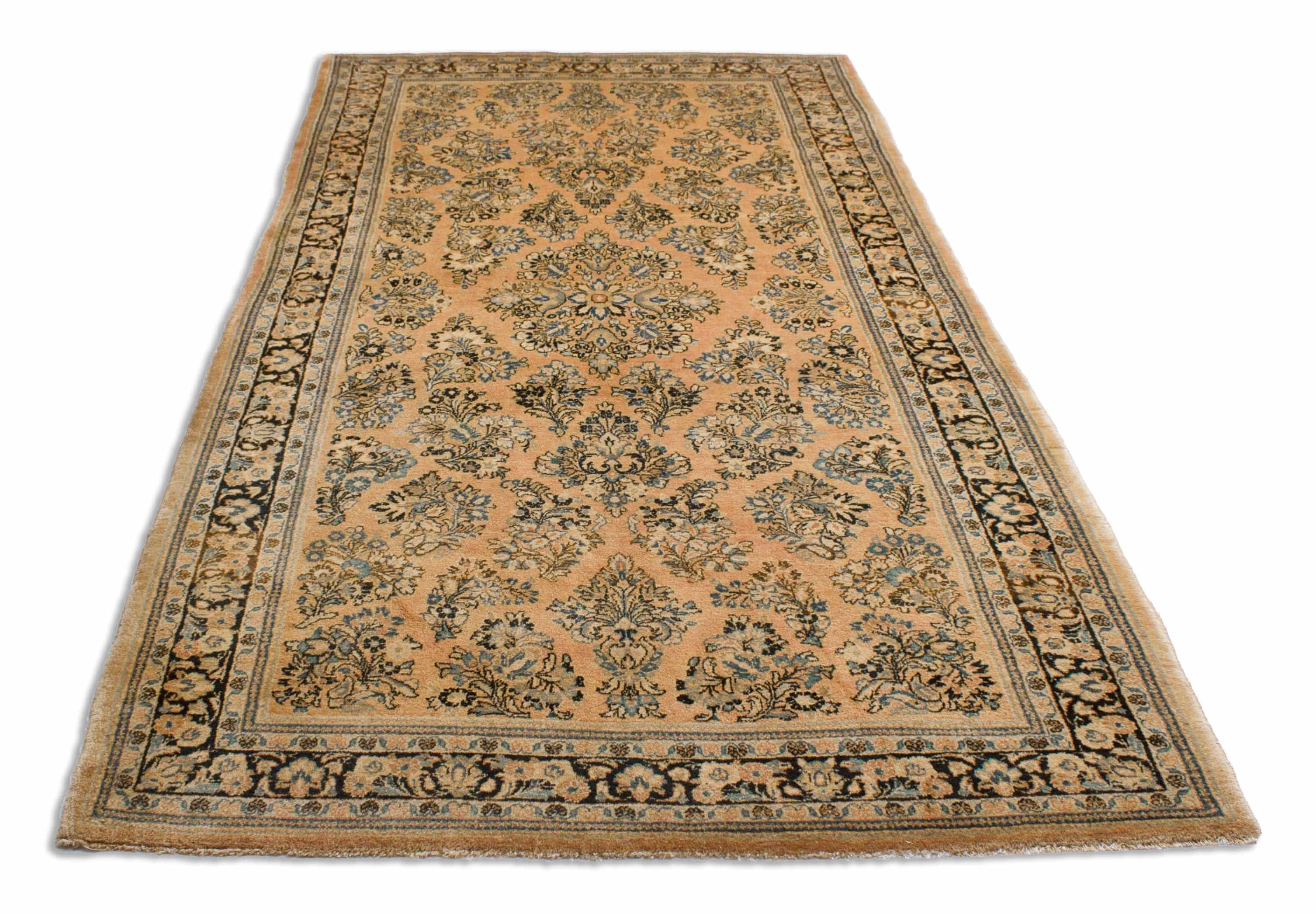 Le luxuriant Fleurs motifs ce Re-Import Saroughs sont élégants et variés. Les symboles végétatifs gracieux qui représentent les fleurs, les feuilles et les branches sont artistiquement enchevêtrés.