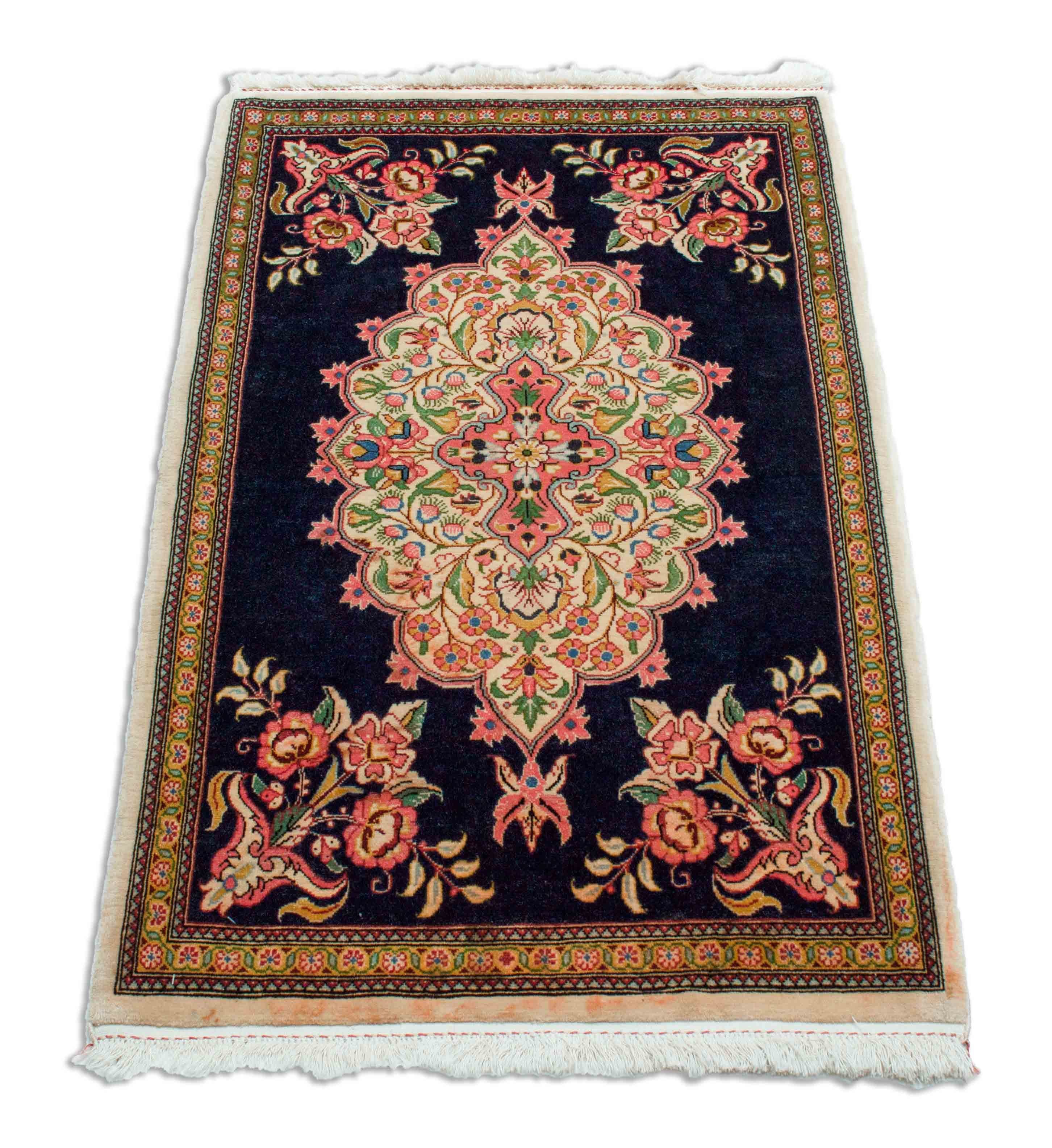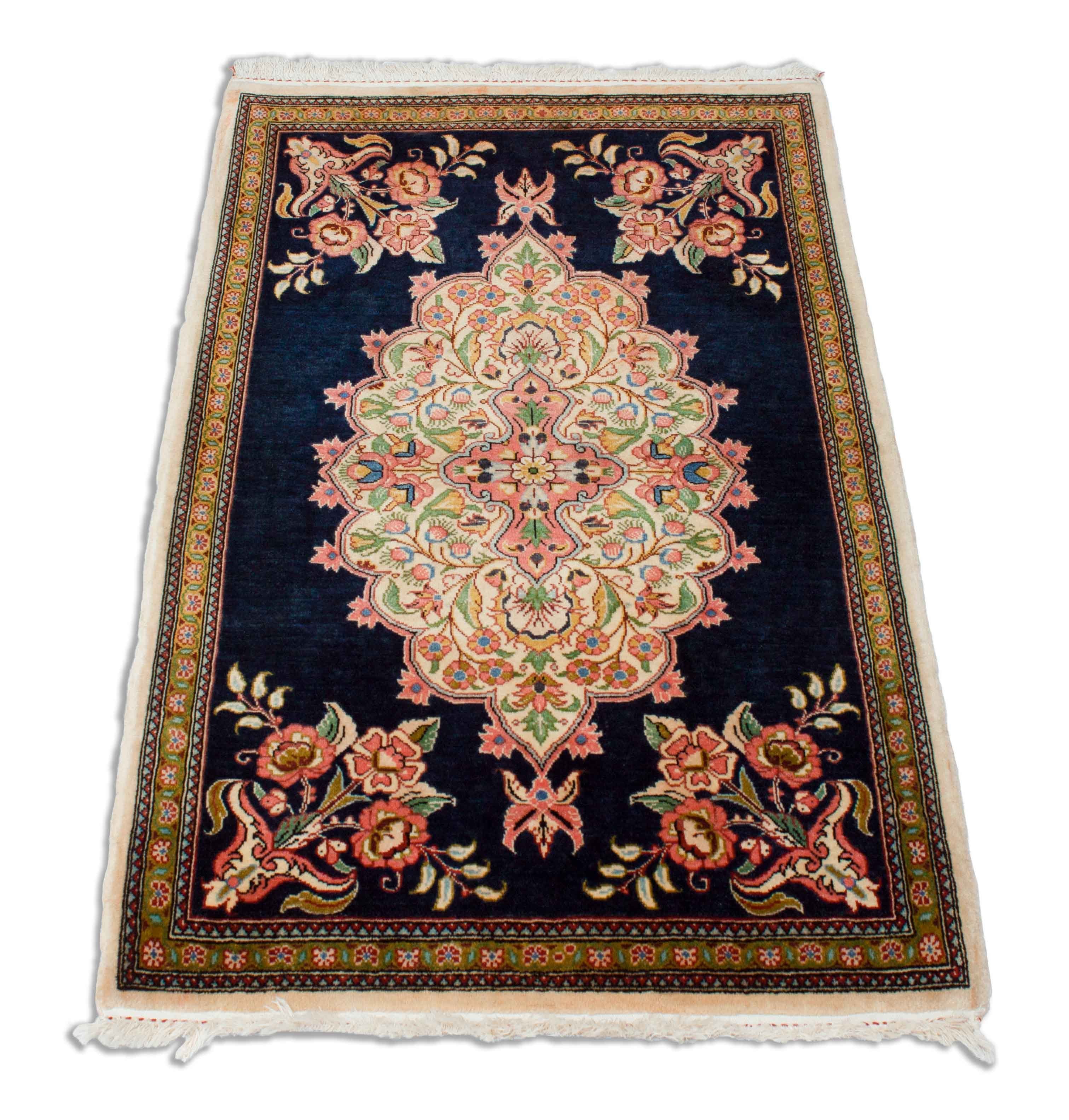 Floraler vieux Sarough, bleu foncé avec bordure et médaillon