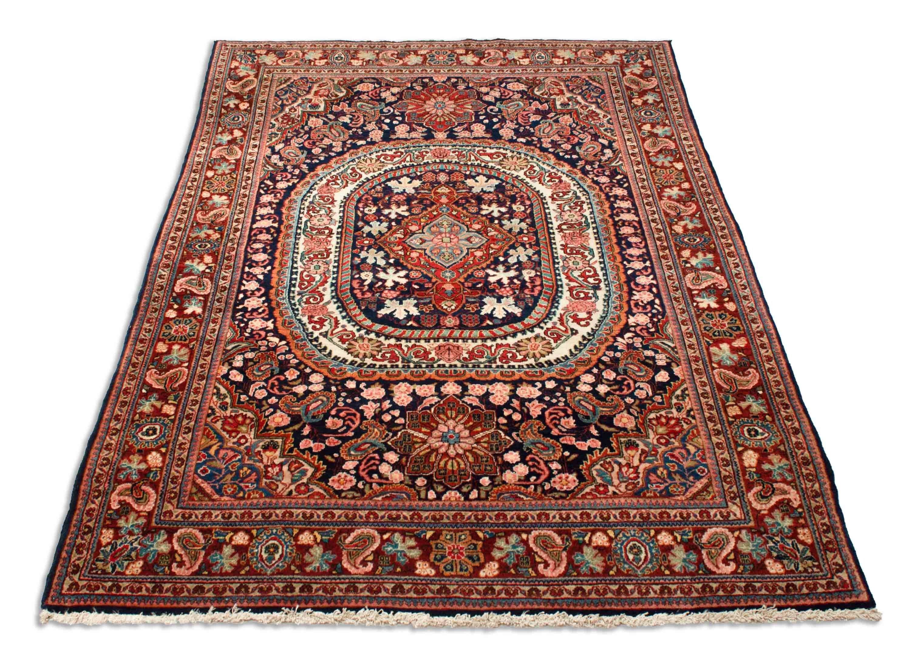 Floraler vieux Sarough, bleu foncé avec bordure et médaillon