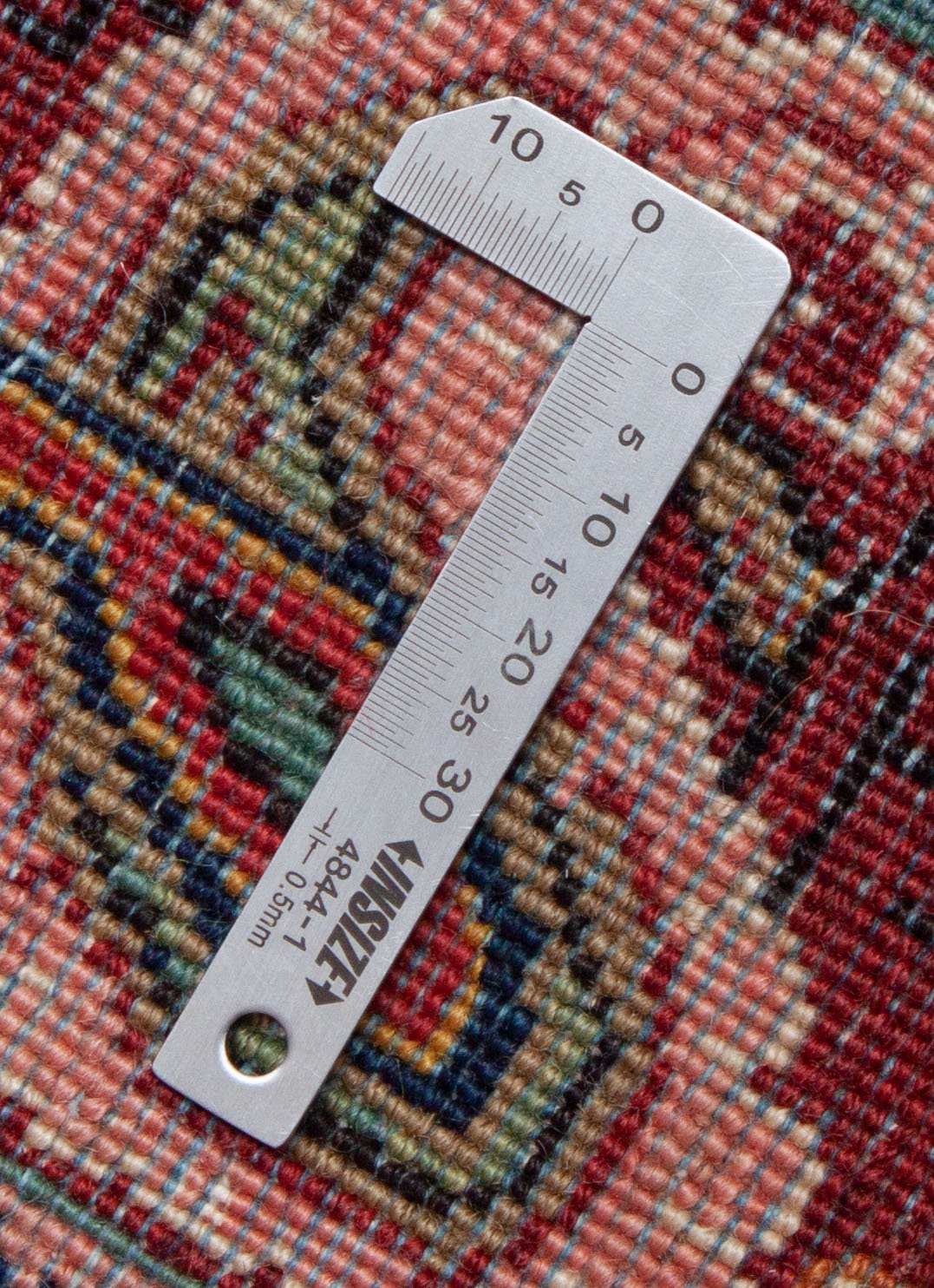 La Flore de cette Sarough a été faite de haute qualité laine vierge fait main. Schurwolle est gagné par les ciseaux doux de moutons. Schurwolle est une matière première naturelle renouvelable avec un certain nombre de propriétés impressionnantes: En raison de la teneur en graisse naturelle de la laine, la surface est exposée à des gouttes d'eau et est donc naturellement imprégnée de saleté. La laine offre également une excellente isolation thermique, a un effet régulateur sur l'environnement de vie et amortit le son. Les fils de mouillage et de distorsion de ce ce cercueil se composent Coton. Le matériau polyvalent est résistant à la déchirure et extensible et donc particulièrement adapté à un sous-vêtement durable.