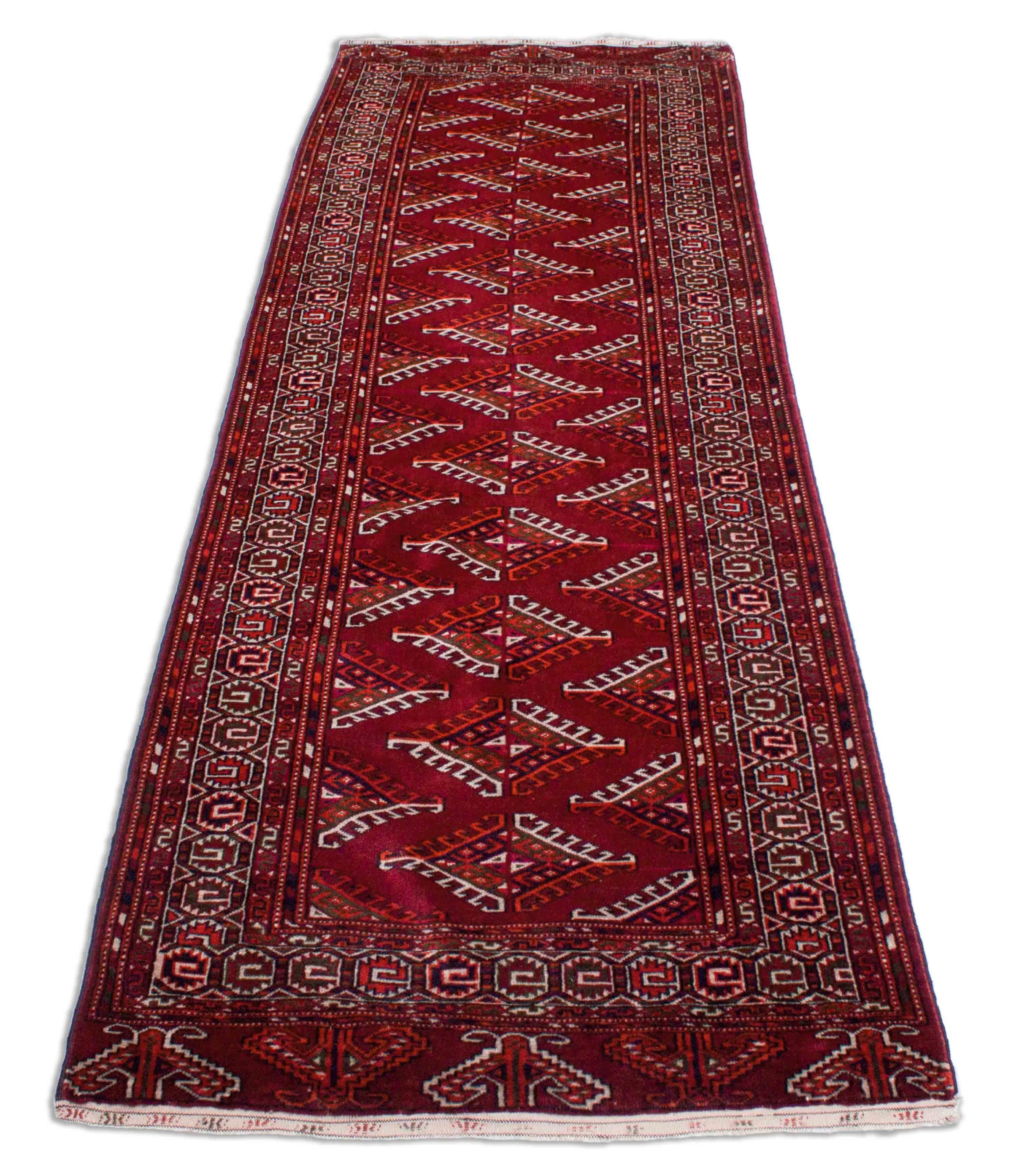 Pendant la révolution communiste, de nombreux Tekke-Sippen ont émigré vers les pays voisins d'Afghanistan et d'Iran. D'autres s'installent en Ouzbékistan et au Tadjikistan. Les tapis de la Tekke sont parmi les célèbres tapis turcs, dont les motifs sont également reconnectés au Pakistan. Les tapis de tekke sont également échangés comme tapis Buchara. b. (parfois Bochara) est une ville Oasis en Ouzbékistan, située sur l'ancienne route de la soie. Bien que b. Même aucun tapis n'a été fait, la ville est le nom de nombreux tapis orientaux parce qu'ils étaient traditionnellement exportés de Buchara à l'ouest. Mais ces tapis ont été faits par des tribus turkmènes, comme le Yomoudh ou Tekke. Ce vieux tekke. 80 ans et un vrai amoureux.