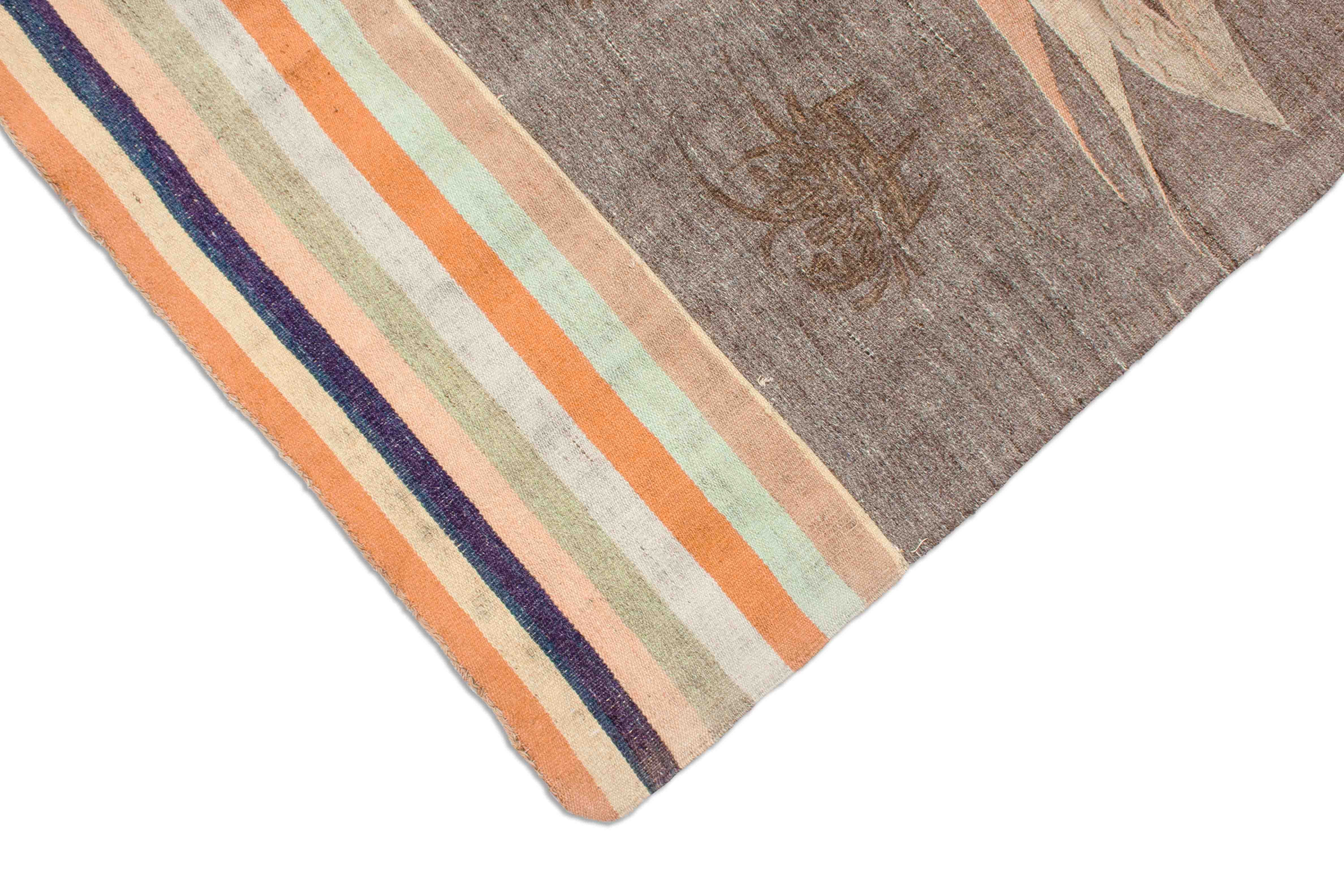 Unier antique japonais Kelim runner, gris avec motif et rayures