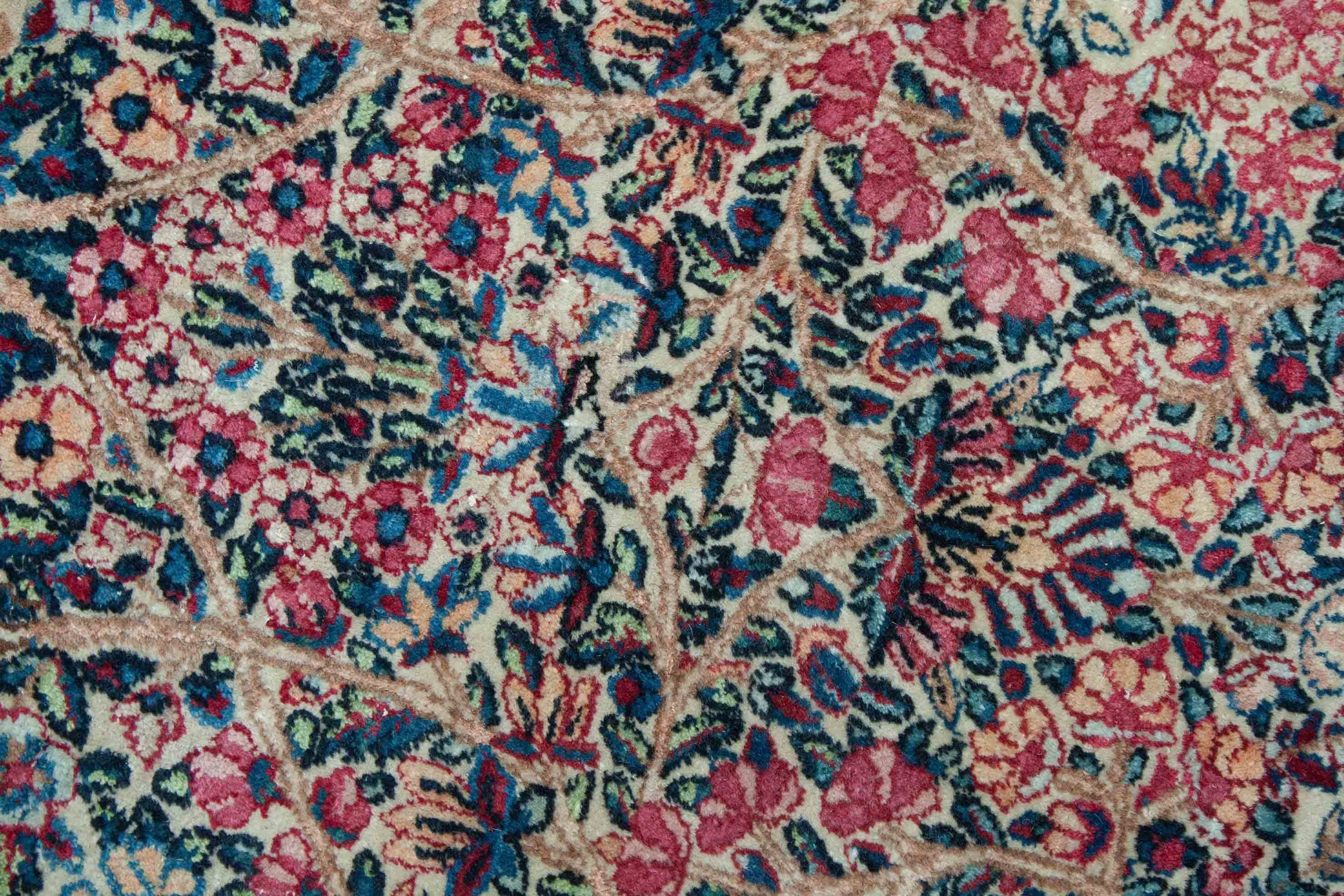 Le luxuriant Fleurs motifs ces Kermans sont élégants et variés. Les symboles végétatifs gracieux qui représentent les fleurs, les feuilles et les branches sont artistiquement enchevêtrés.